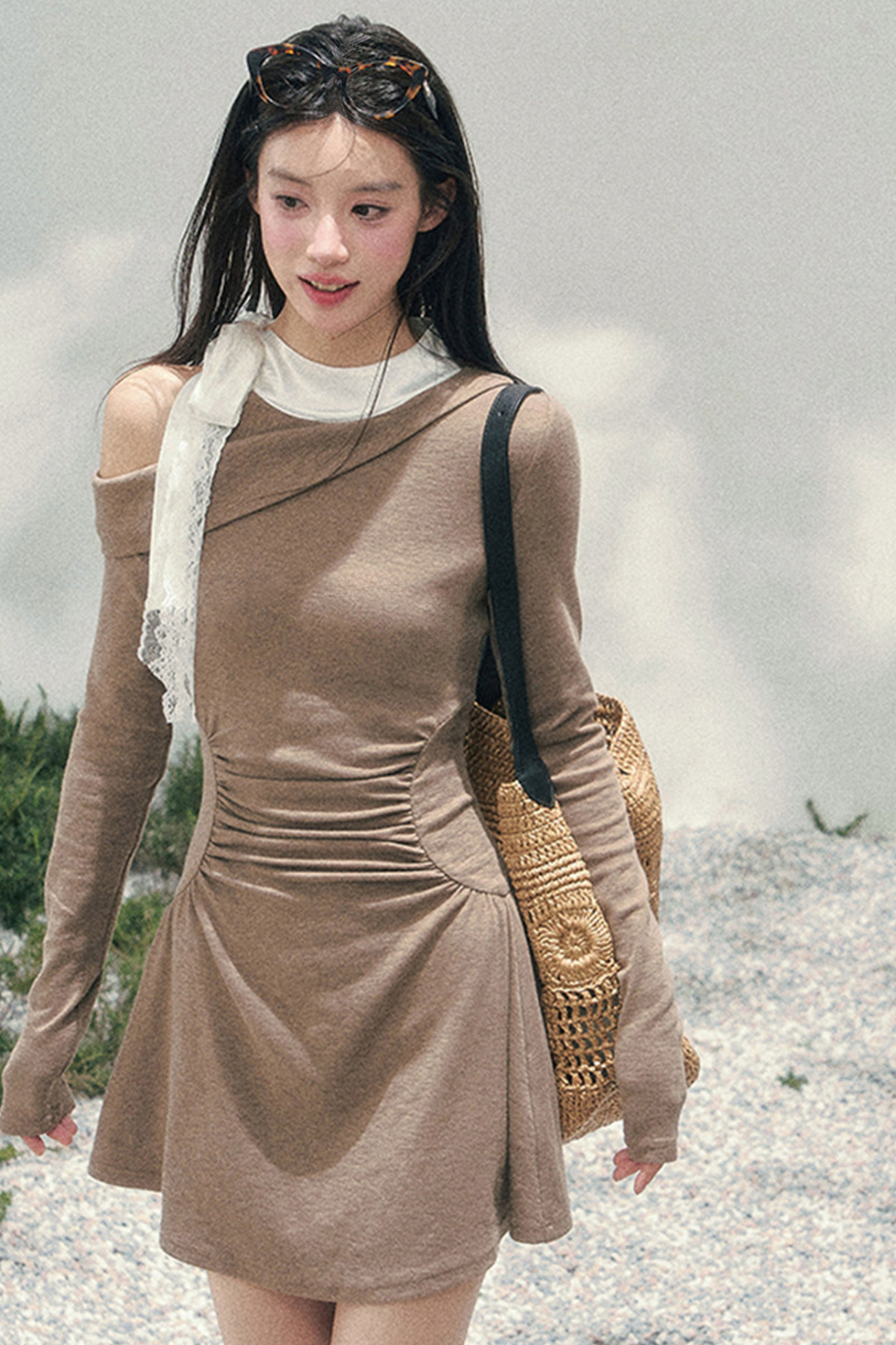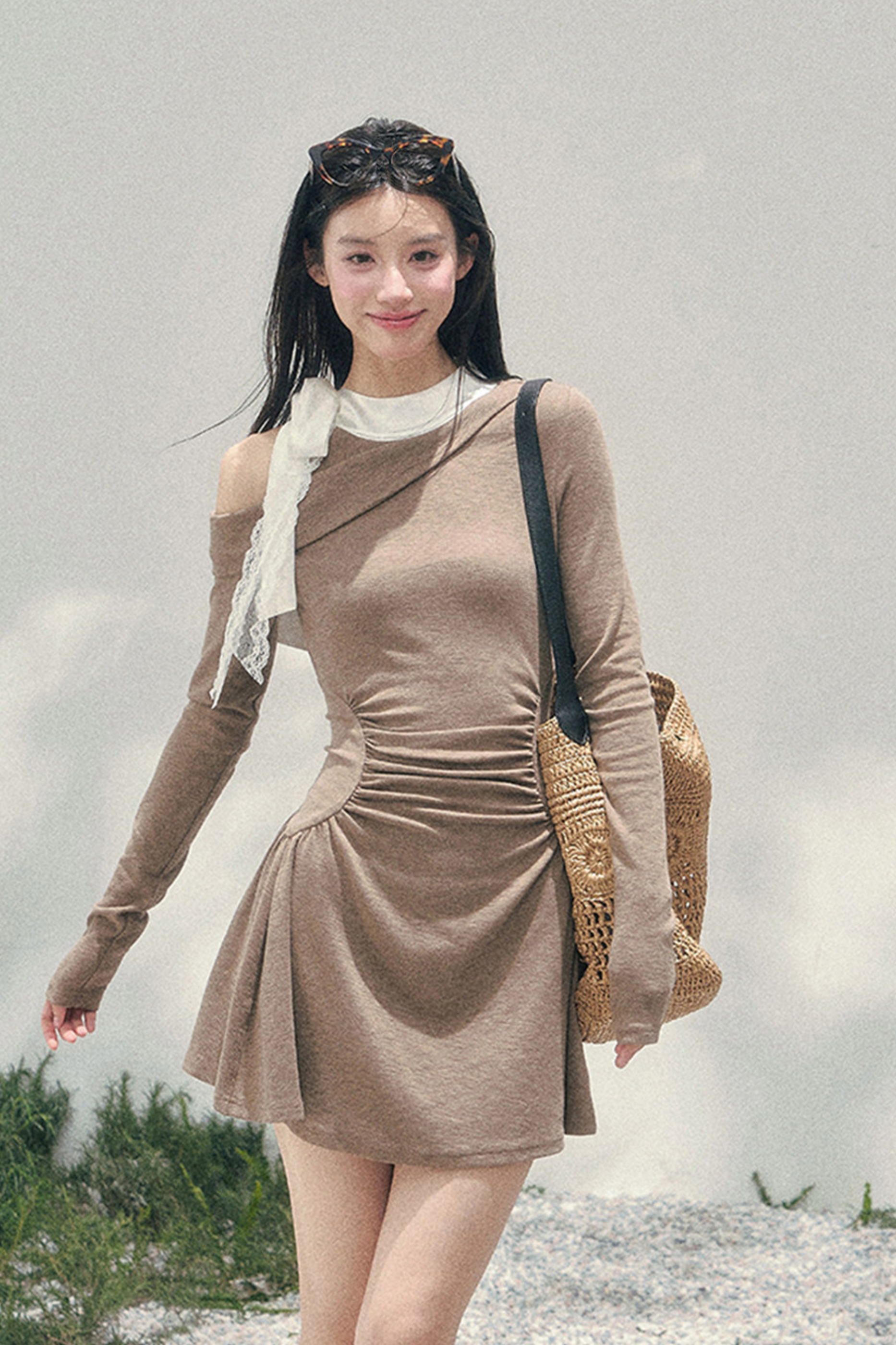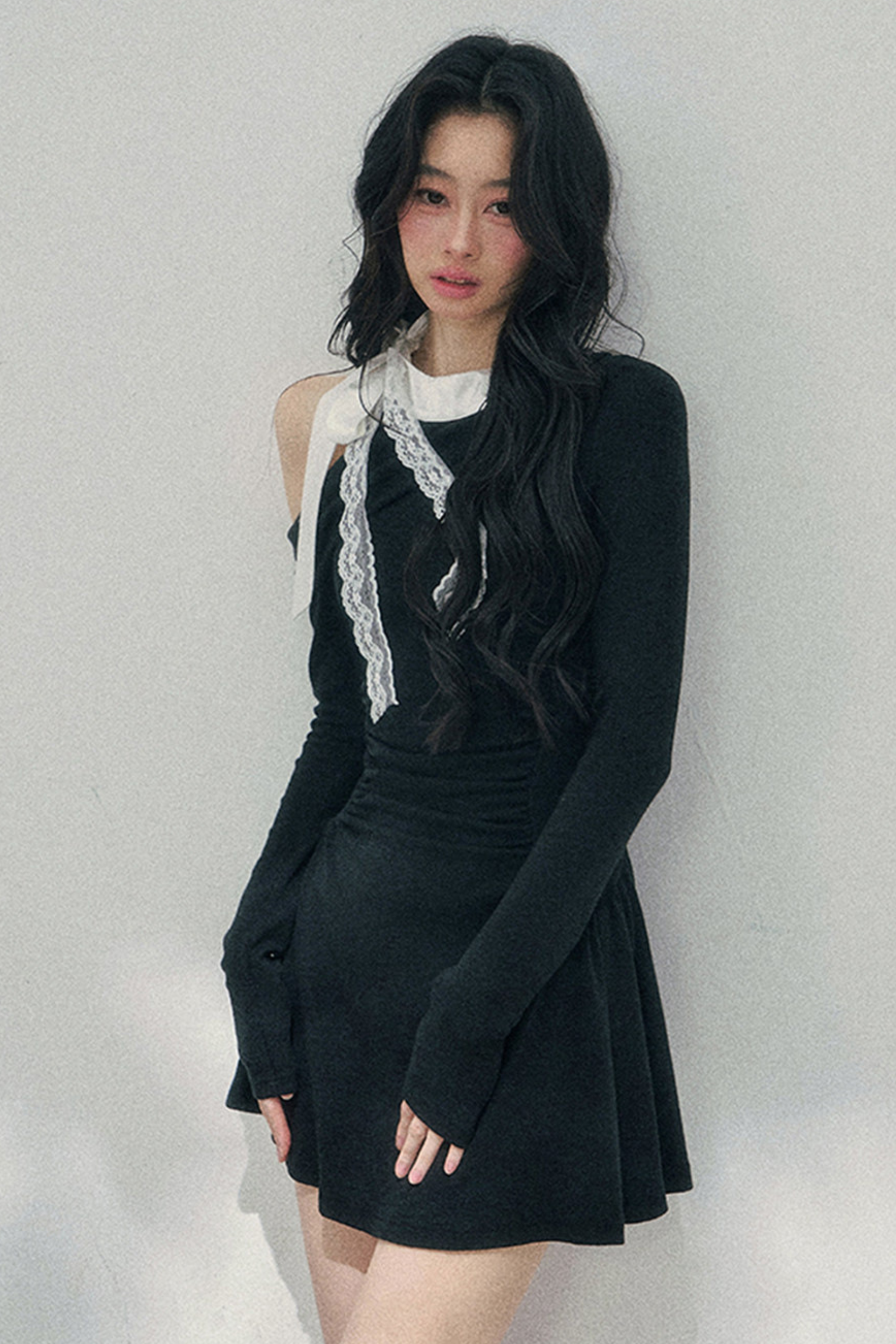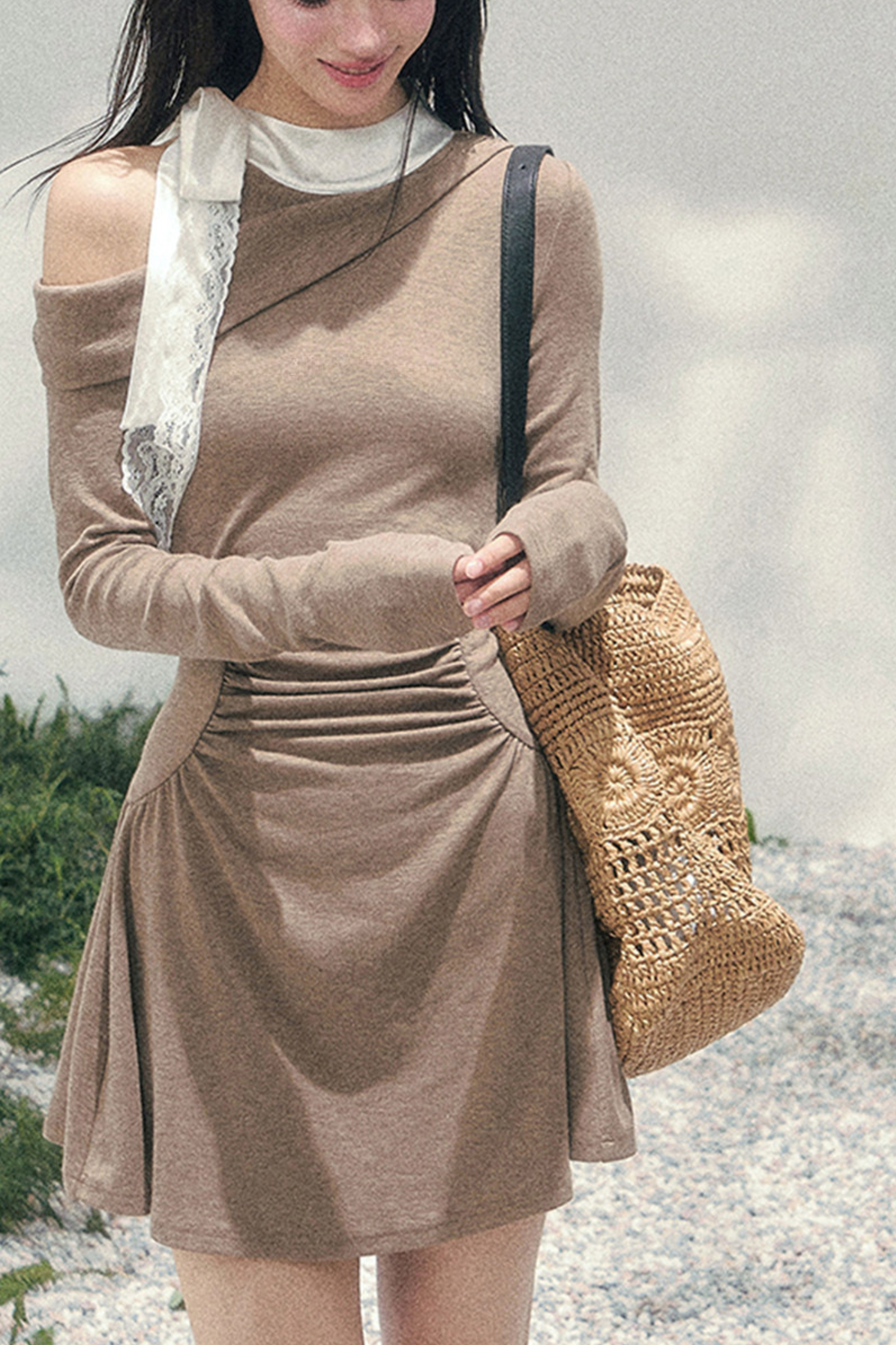 フレンチレースオフショルダードレス