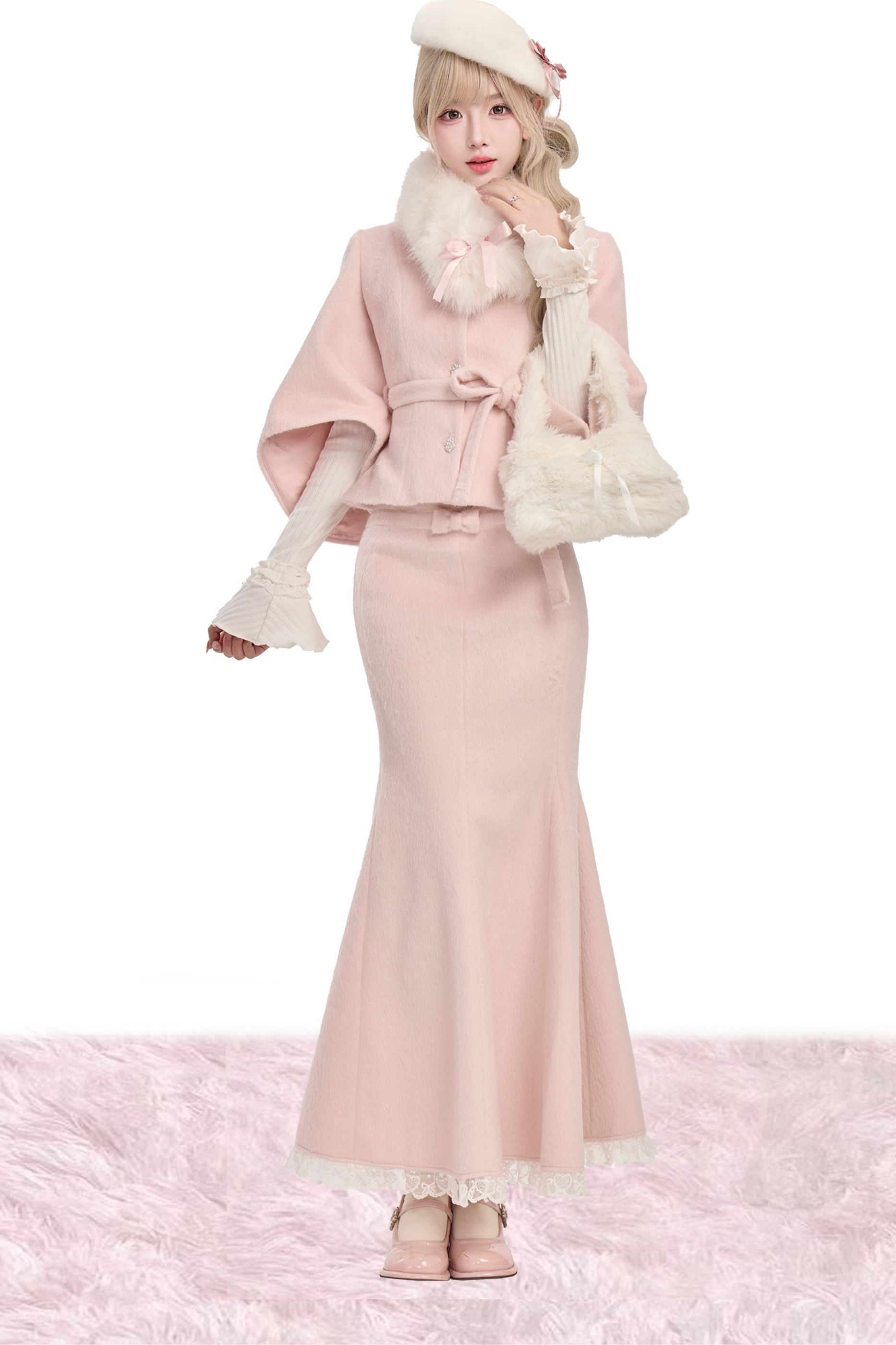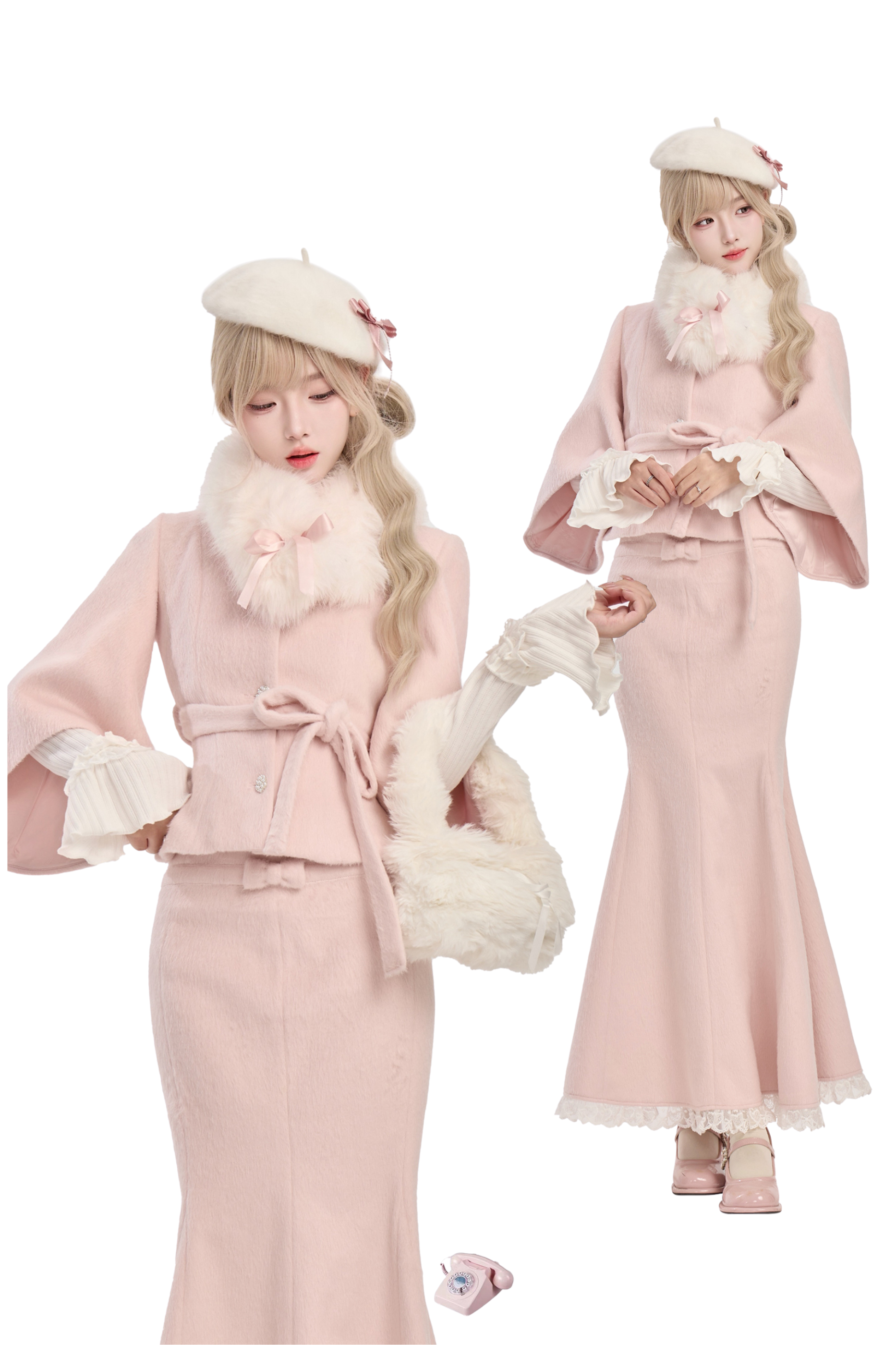 ベルベットラブソングニット+ウールショートジャケット+マーメイドスカート