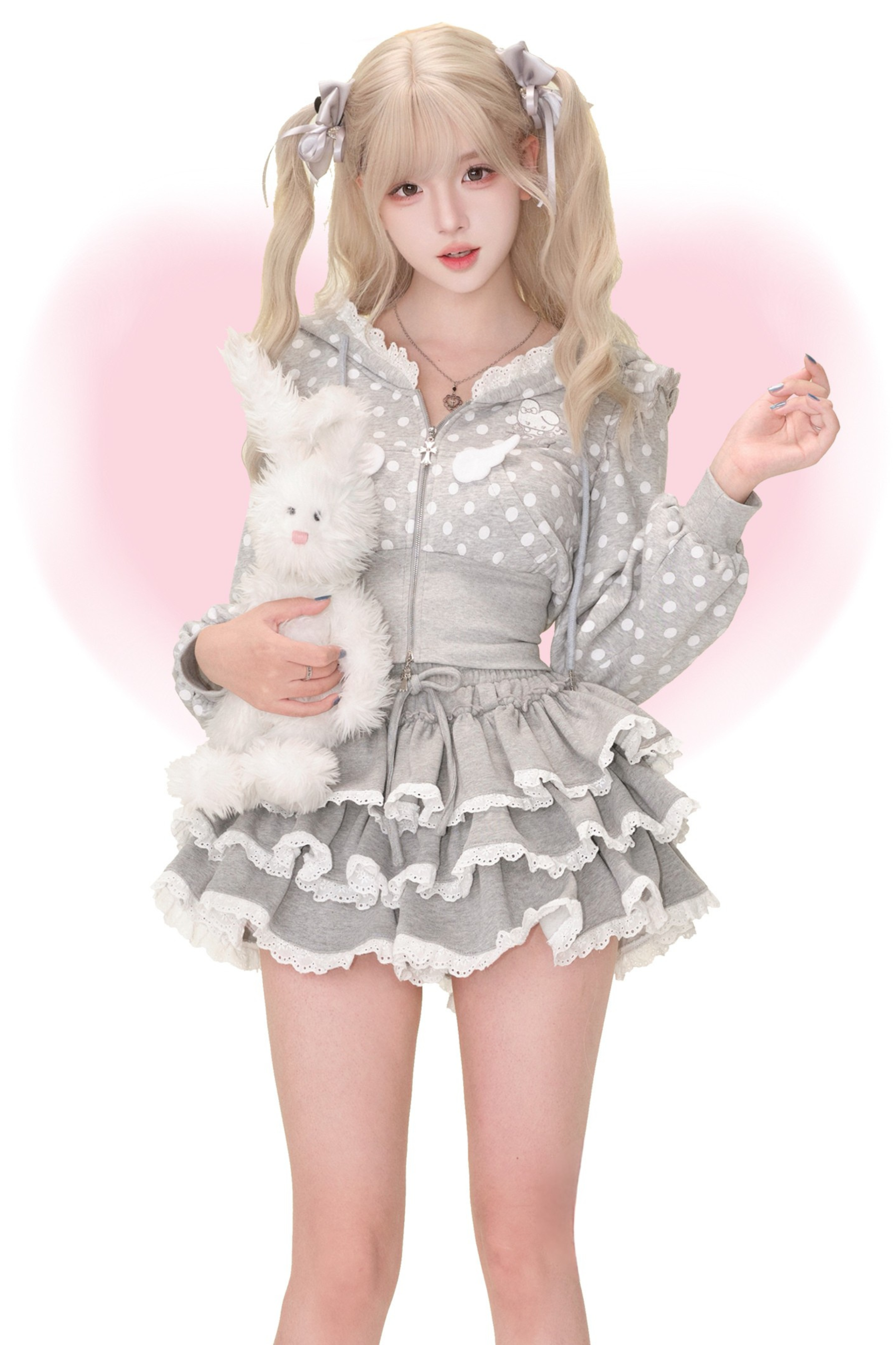 ❤ドットバニーフードパーカー+ケーキスカート❤