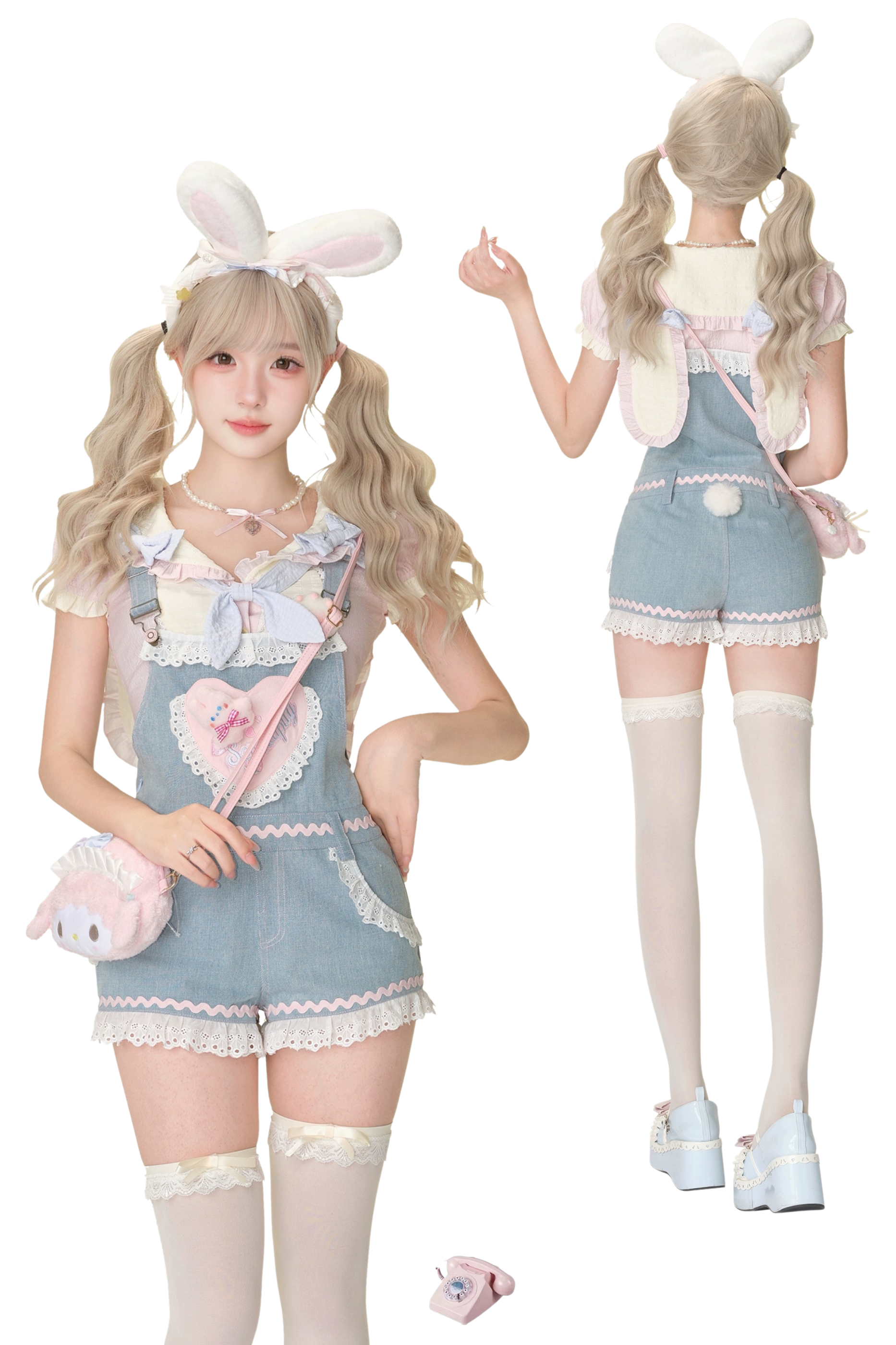 ストロベリーバニートップス+デニムサロペット