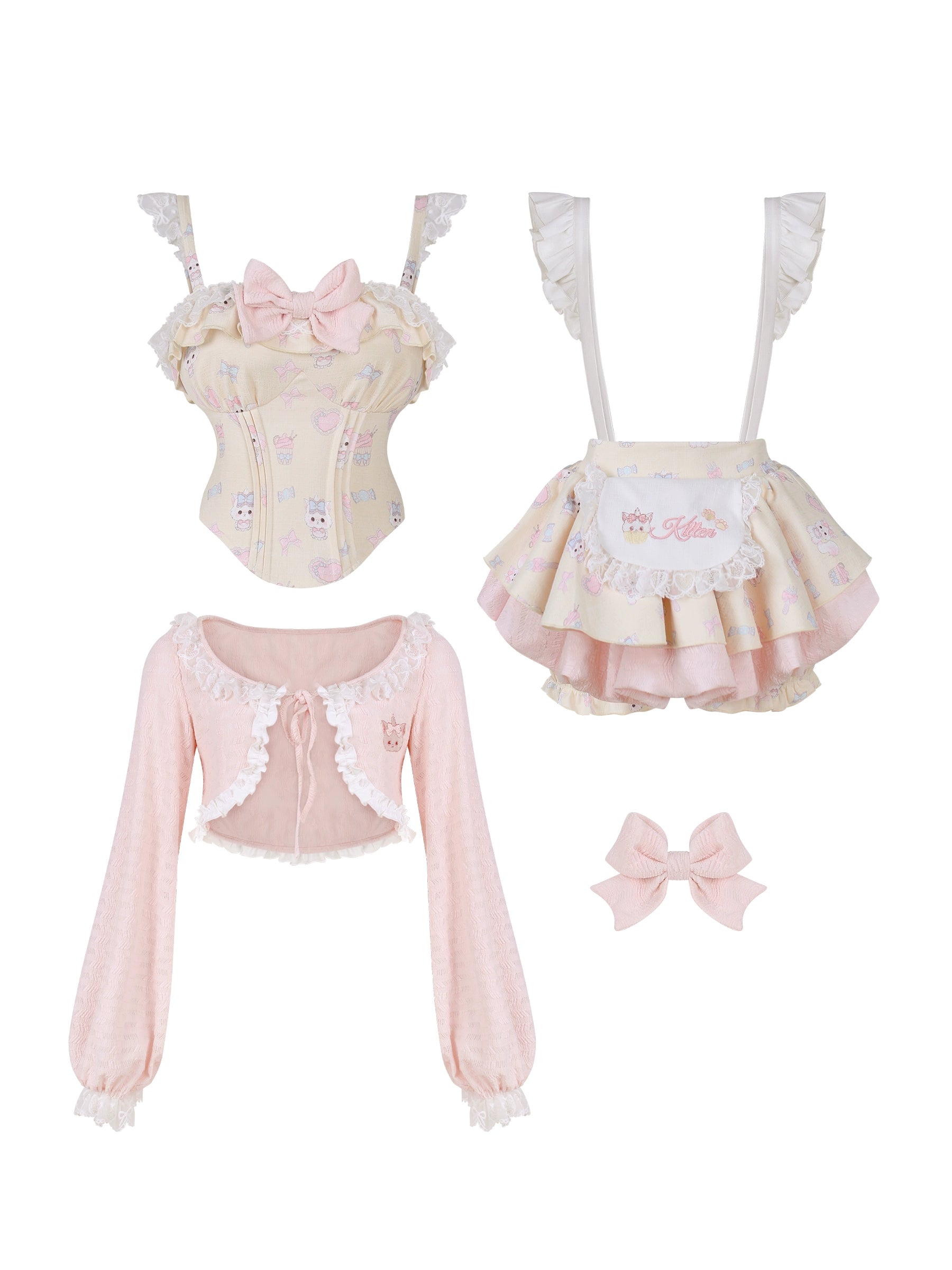 ガーリーリボンキャミソール+カーディガン+サスペンダースカート