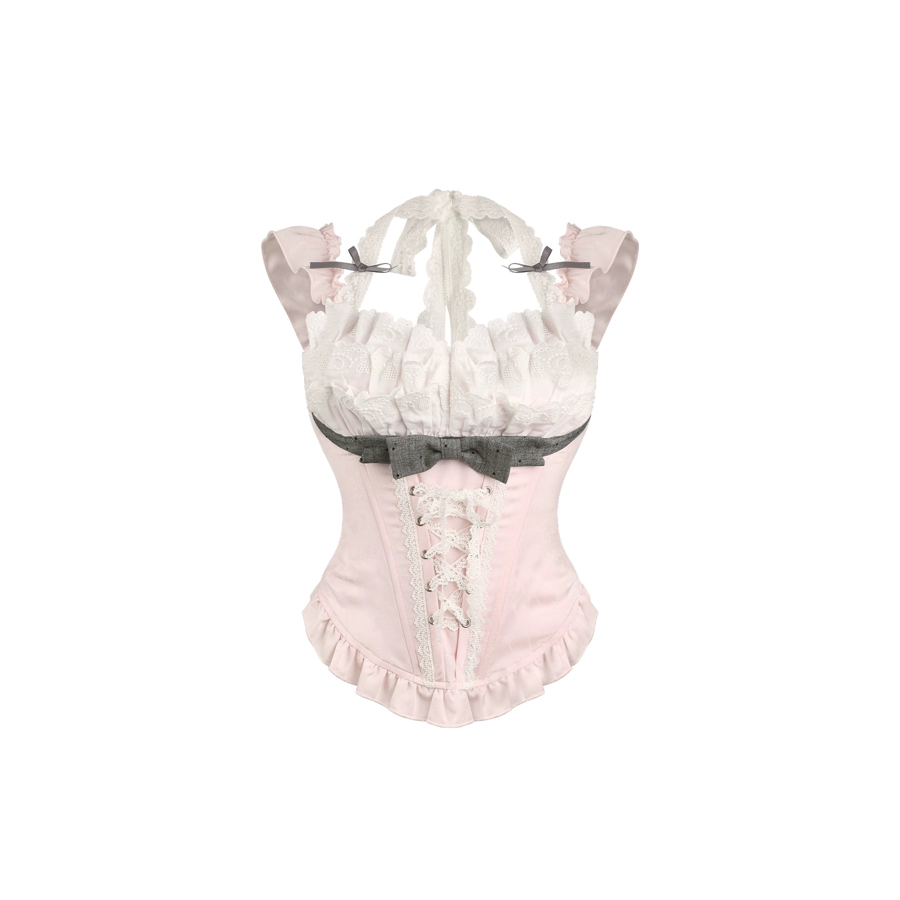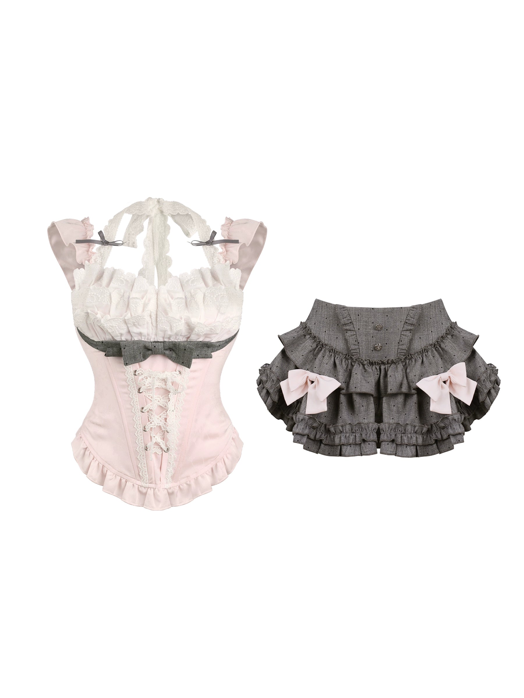 ピーチピンクコルセットトップス+ドットケーキスカート