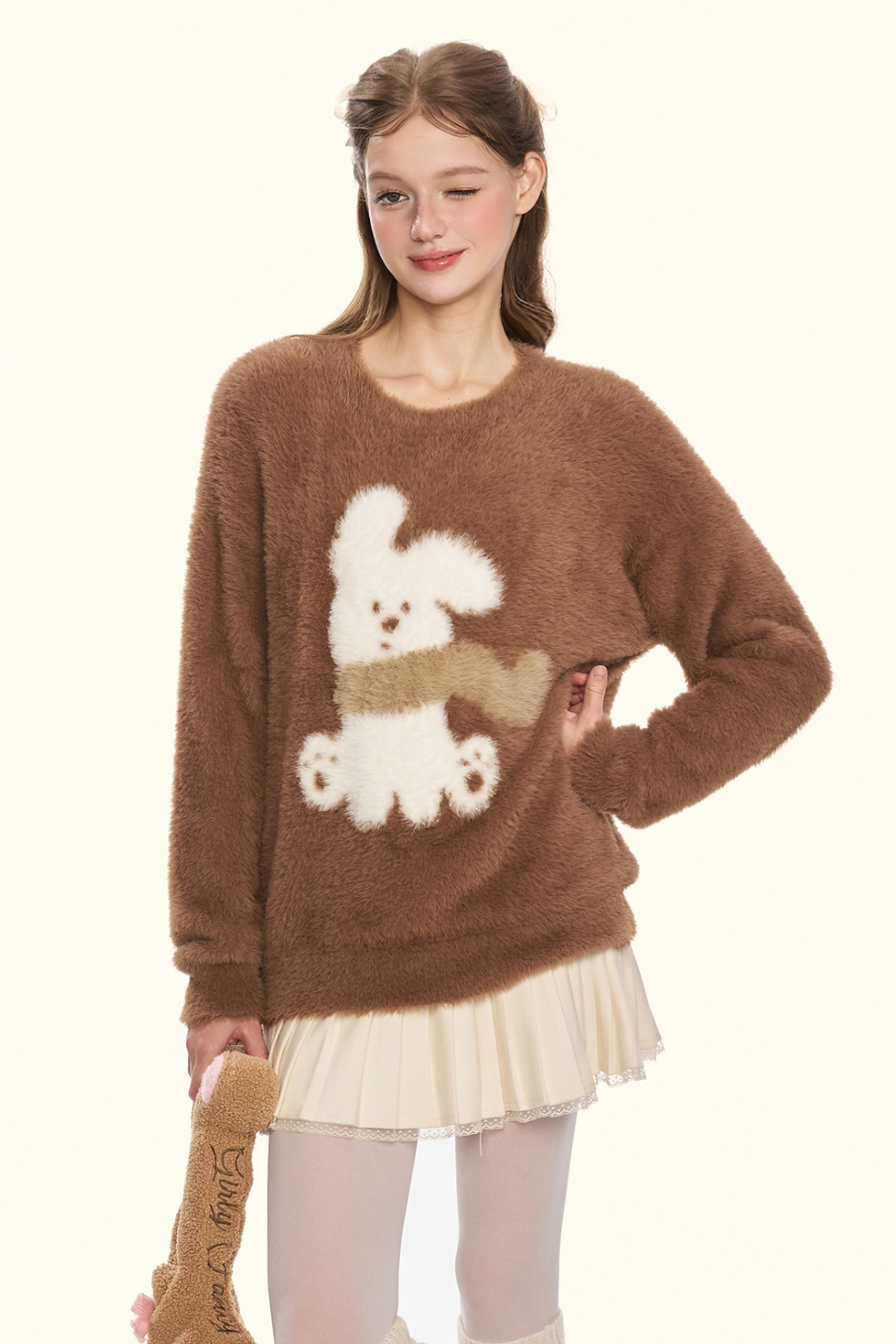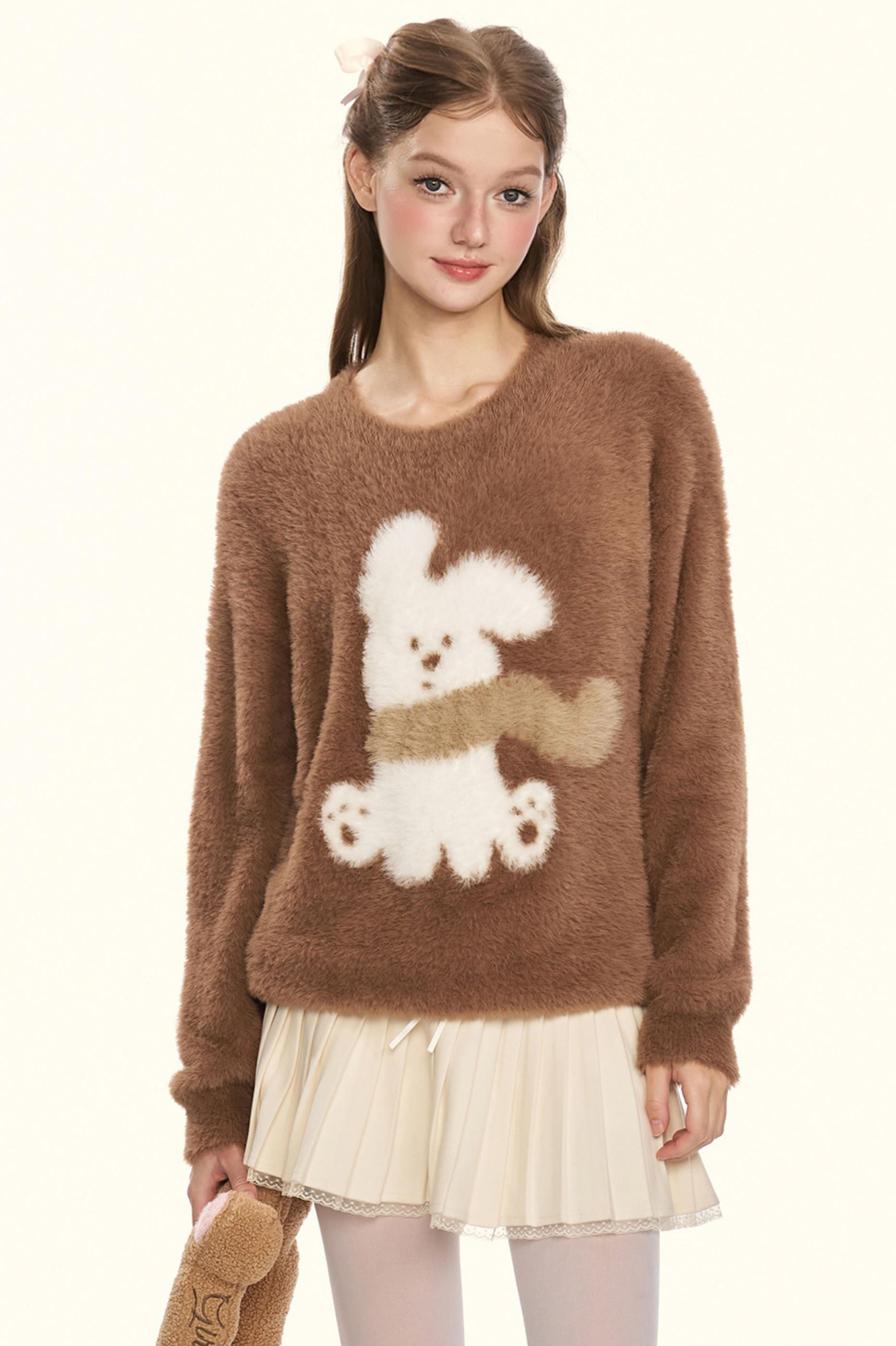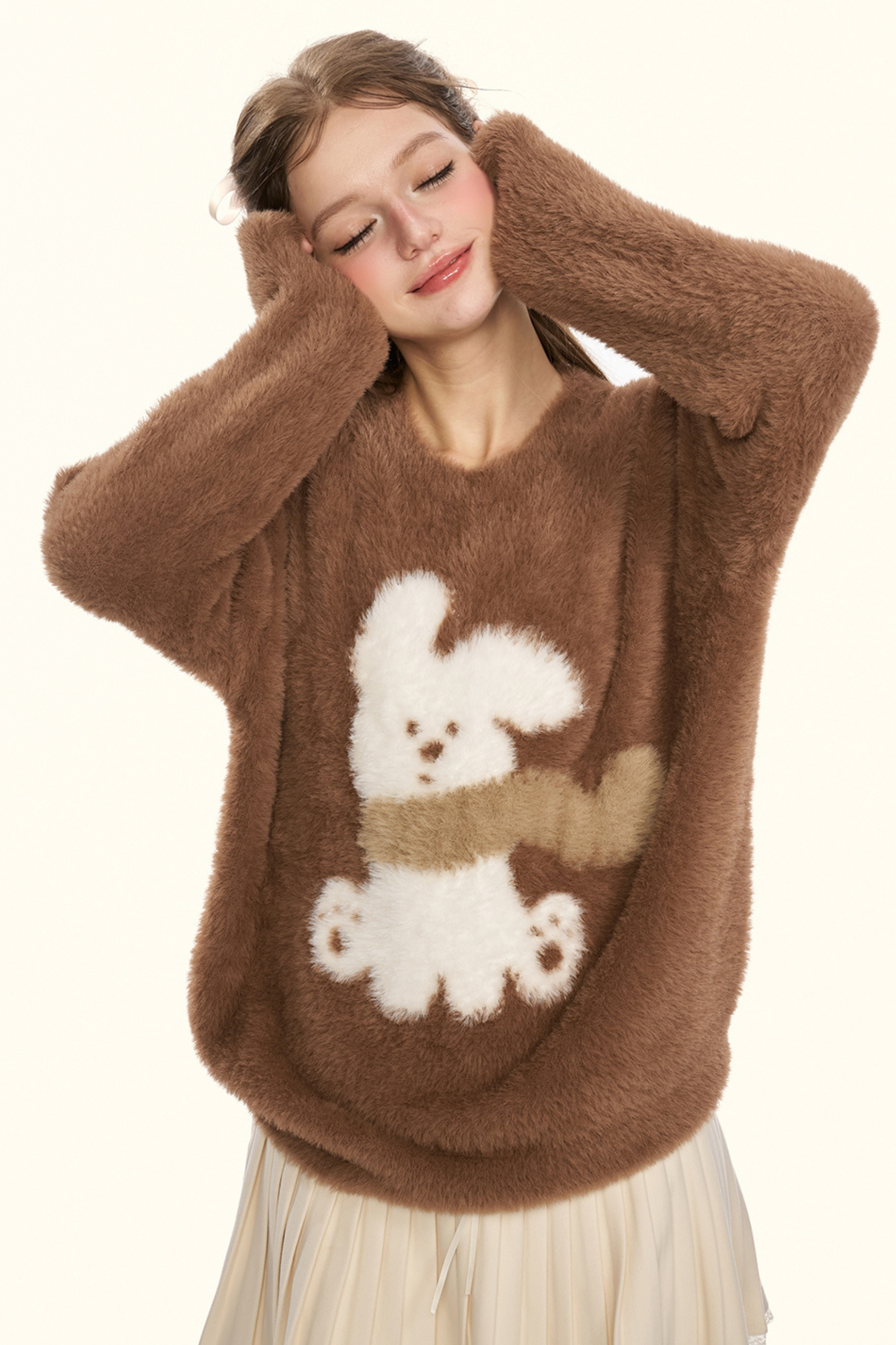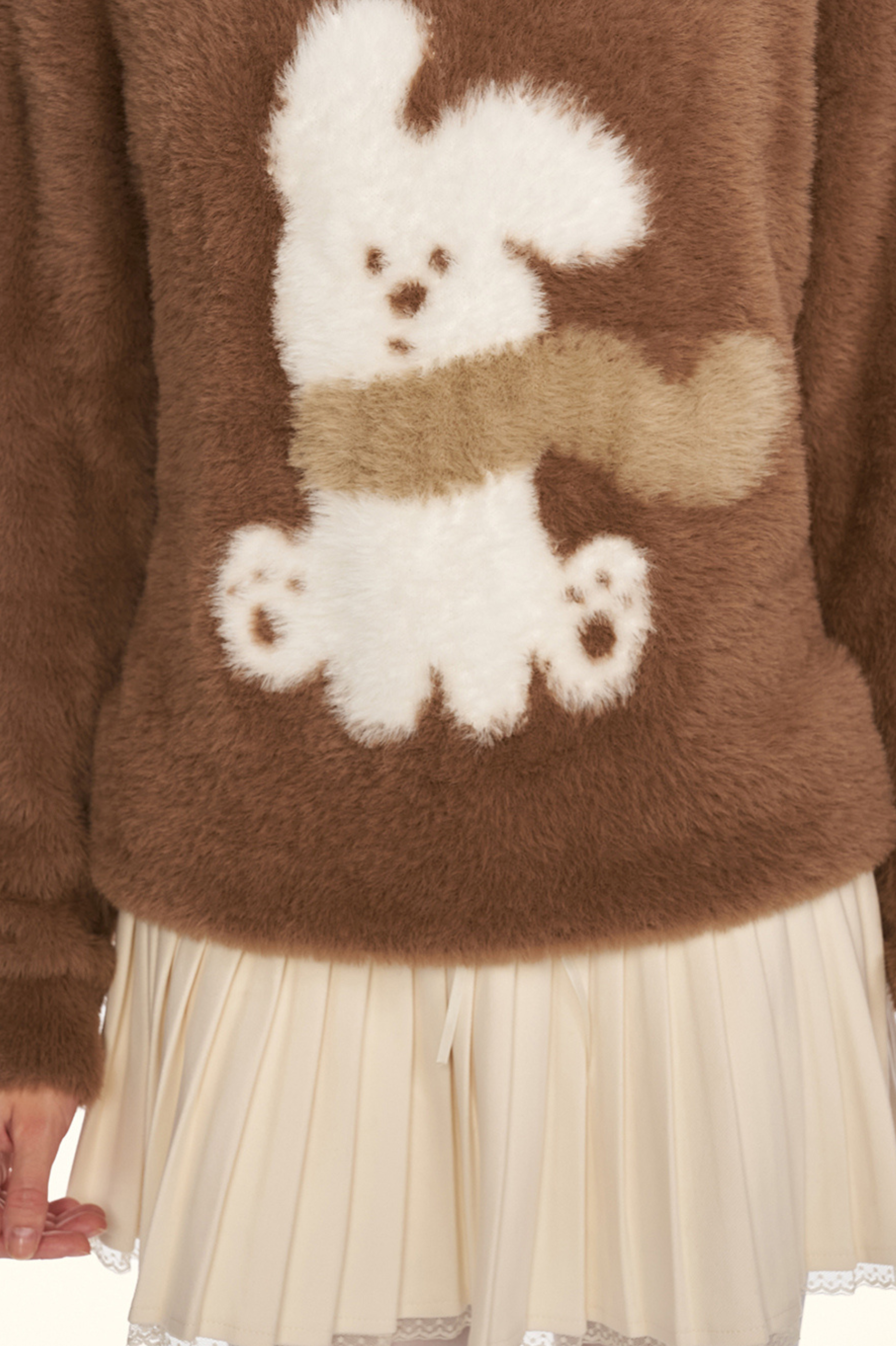 クリームチェスナットココアバニーファーニット