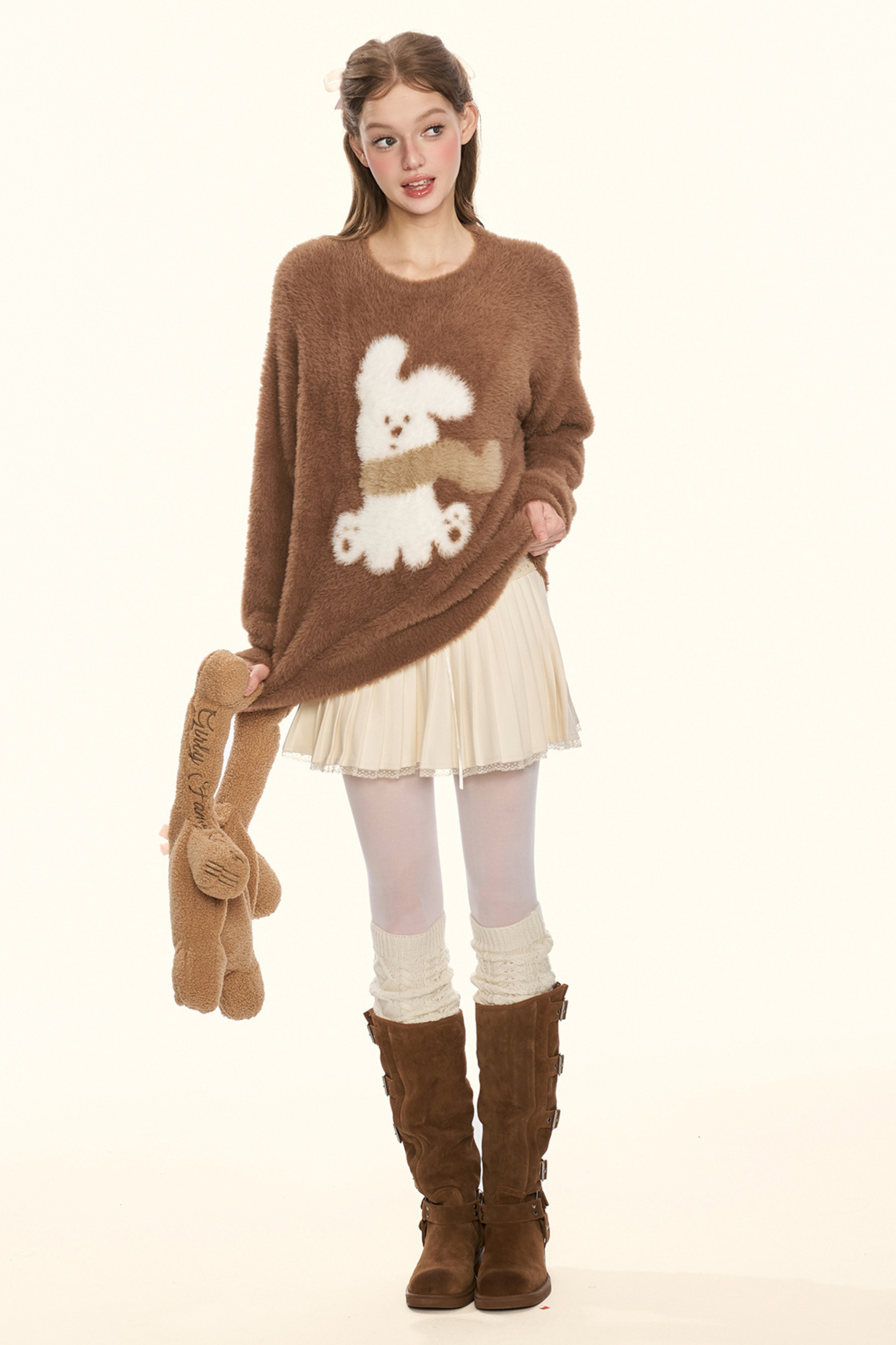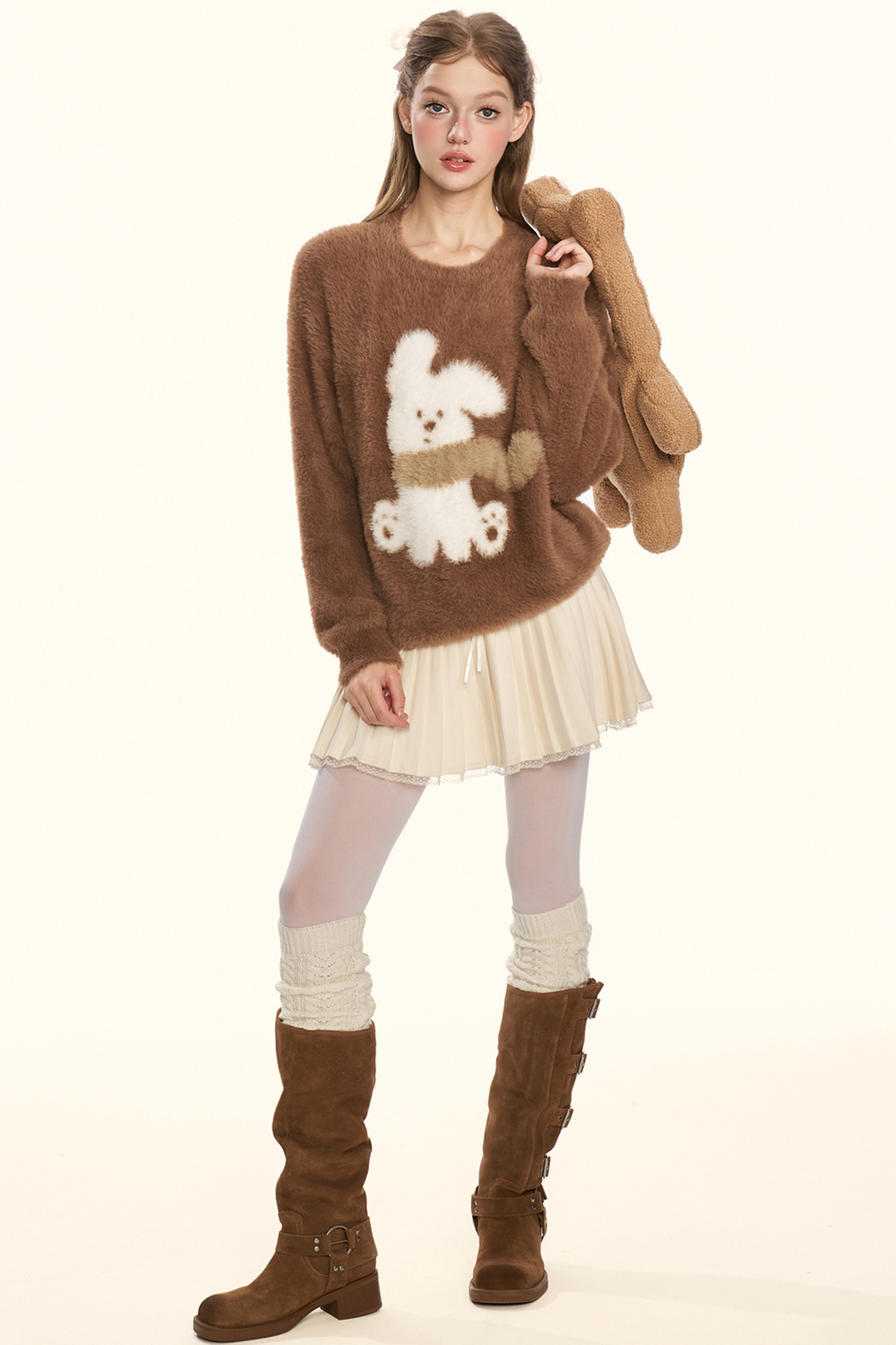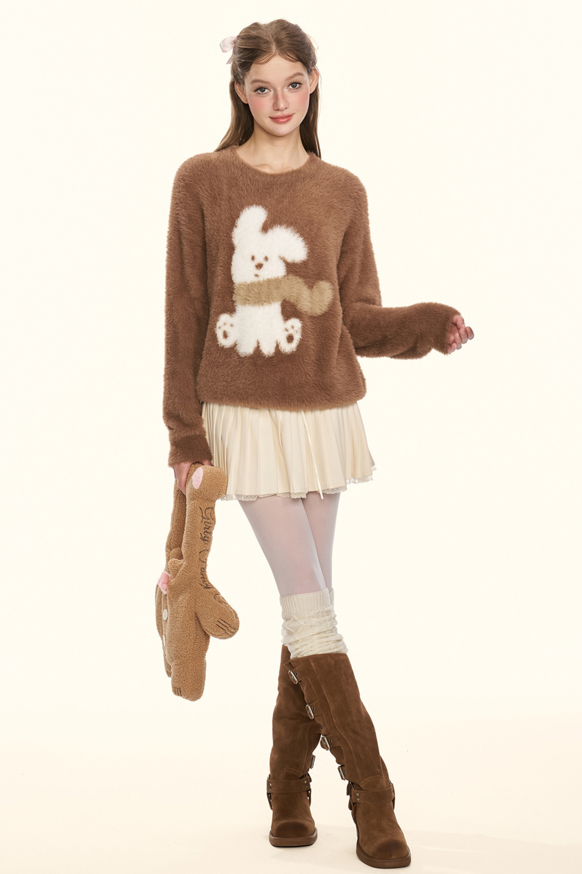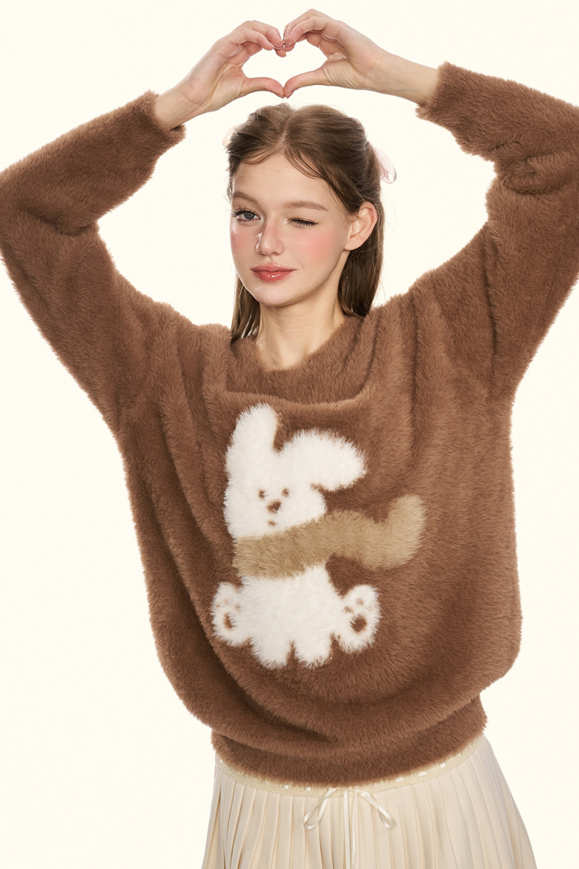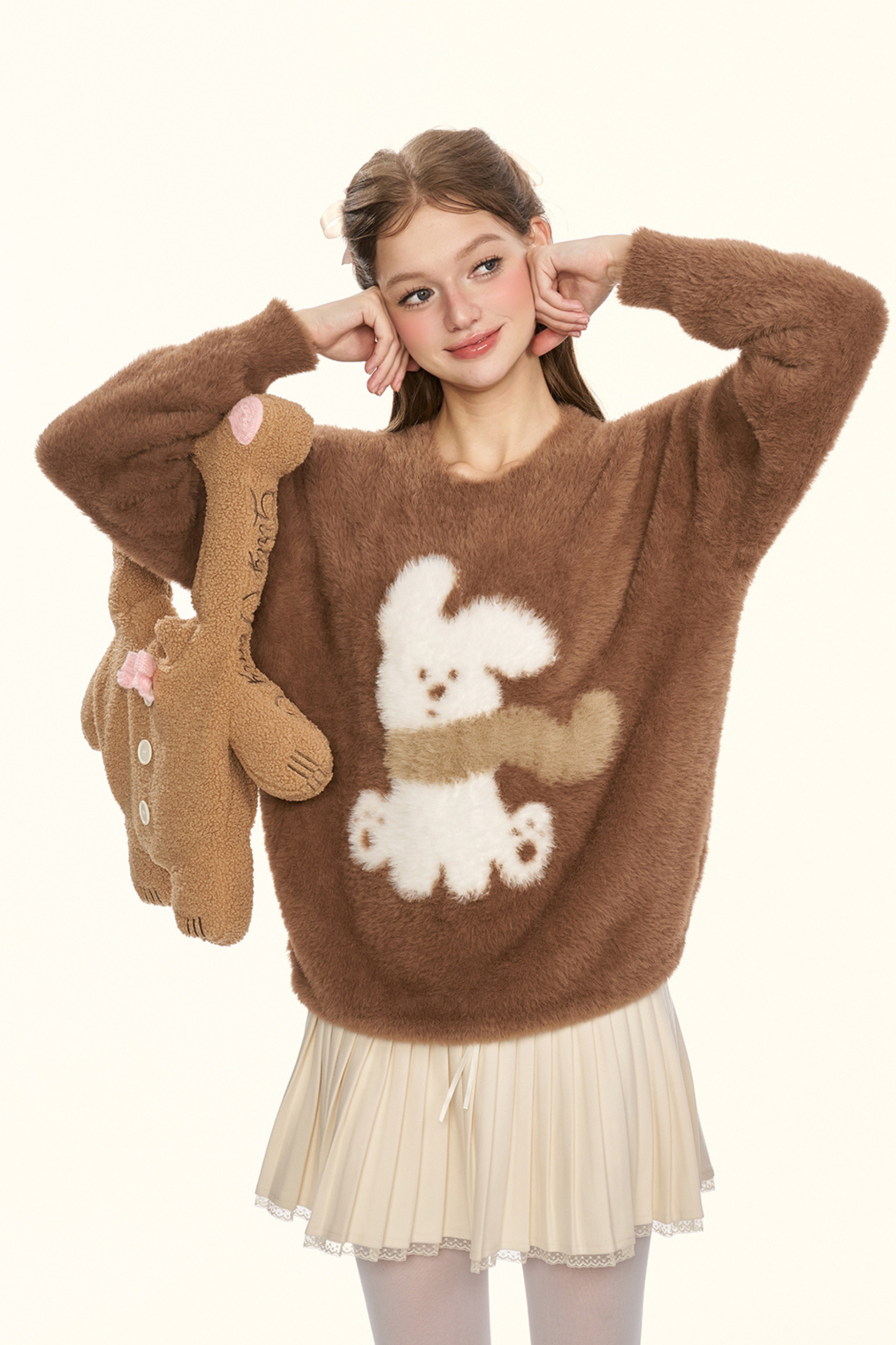 クリームチェスナットココアバニーファーニット