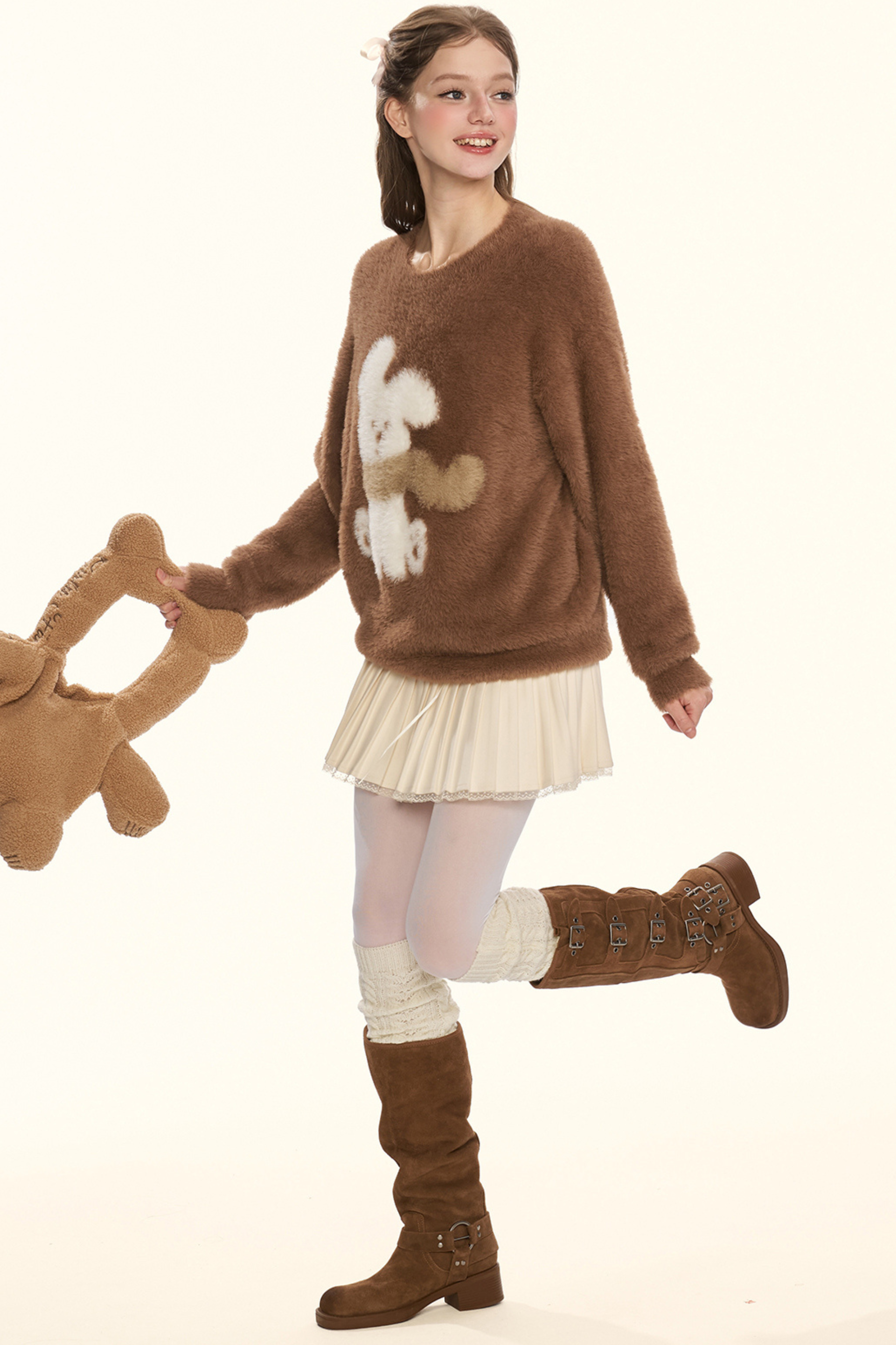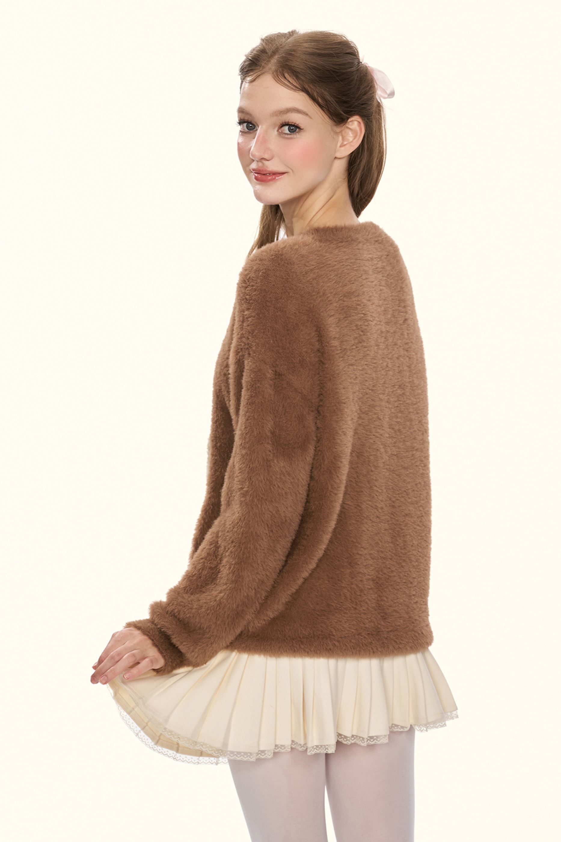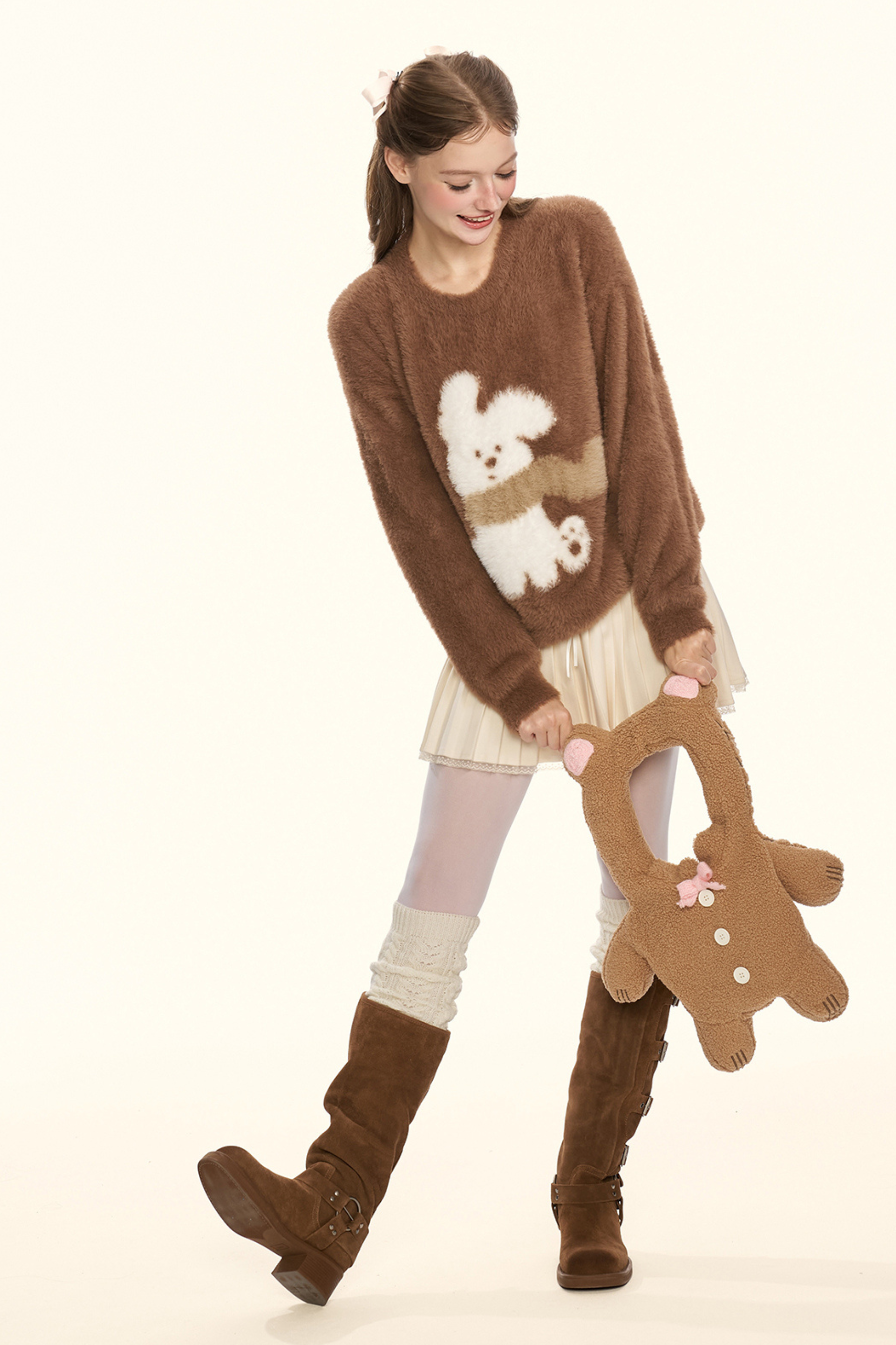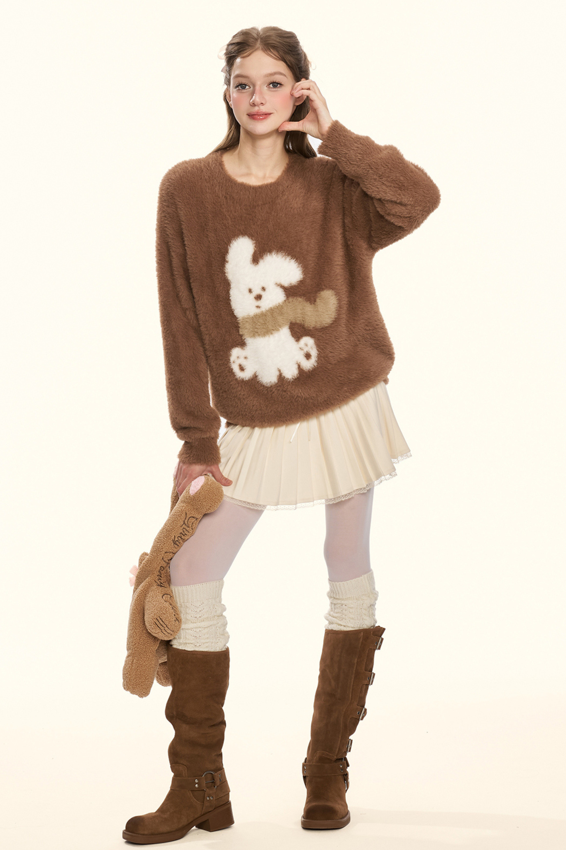 クリームチェスナットココアバニーファーニット