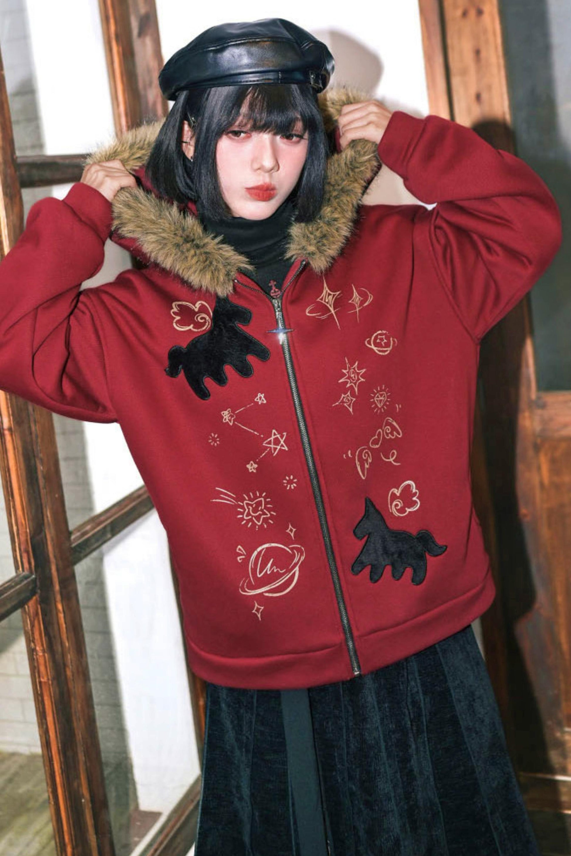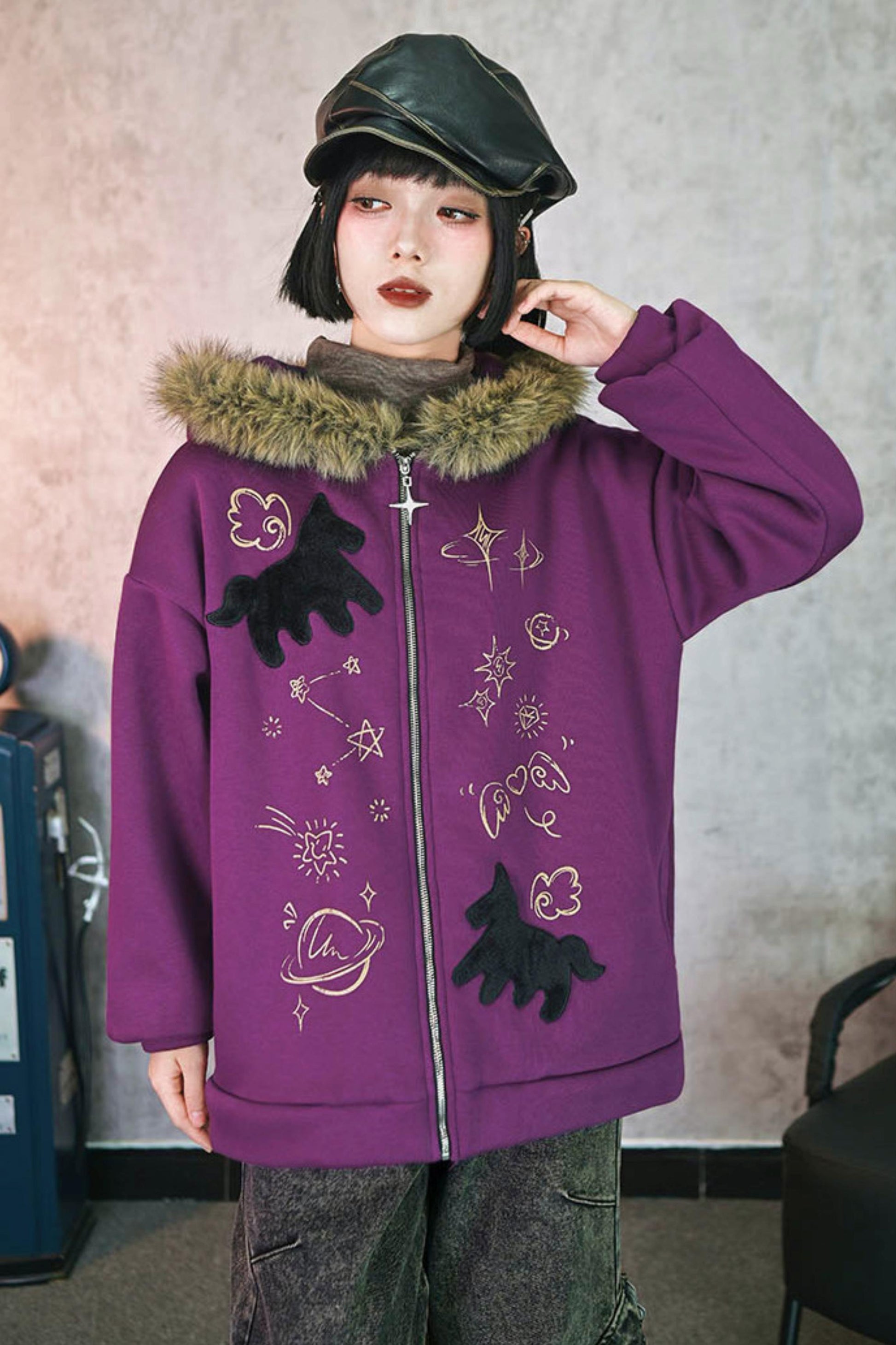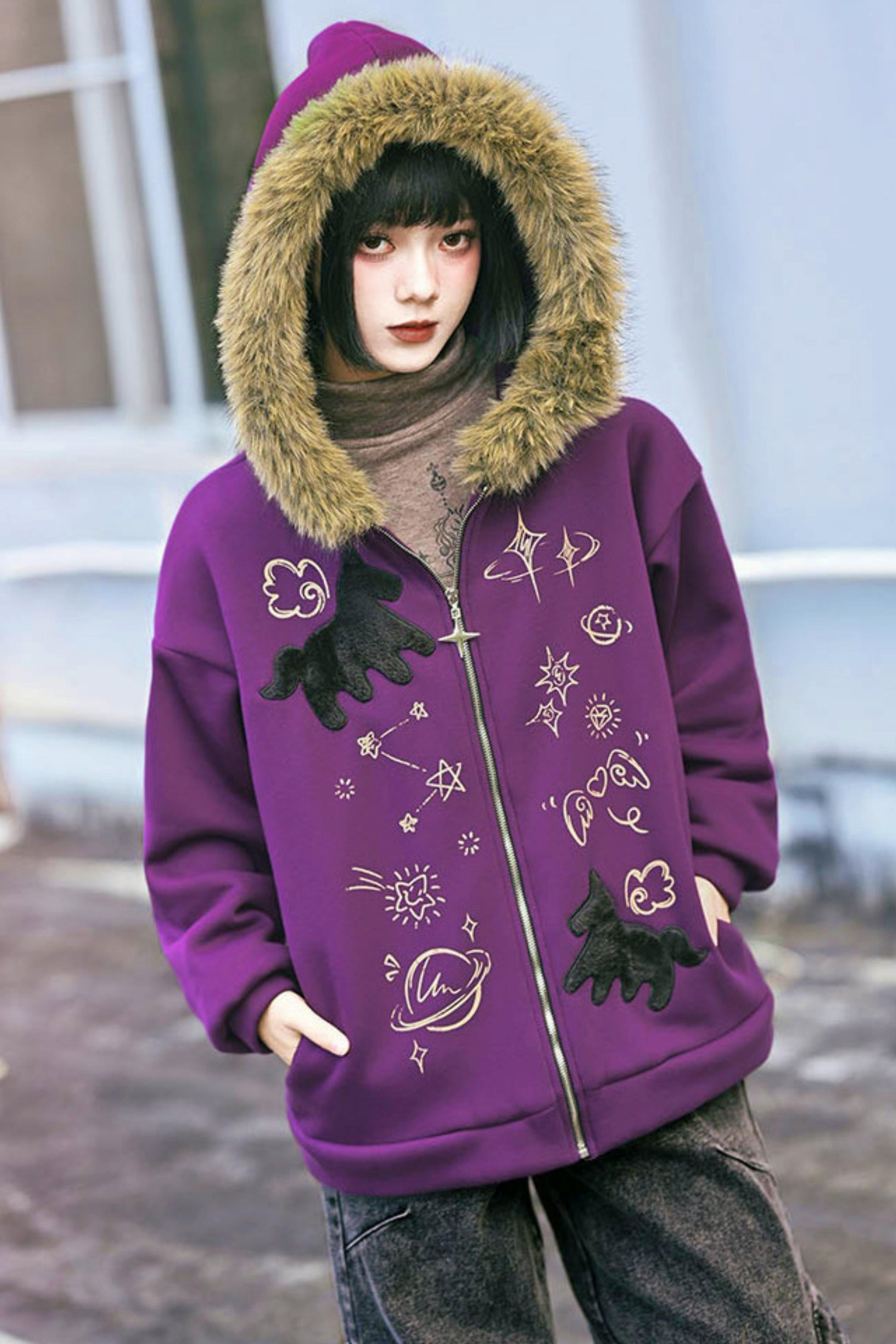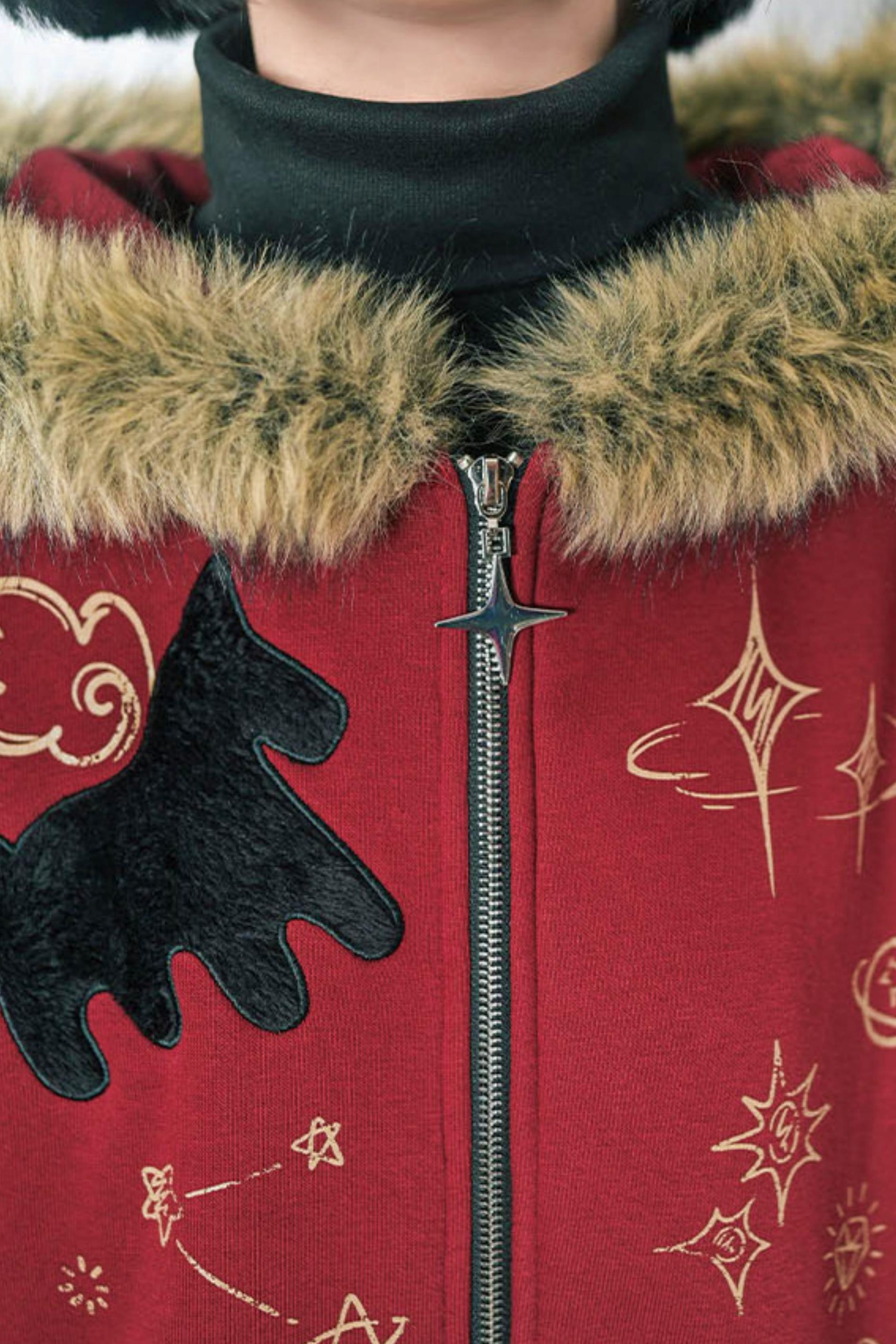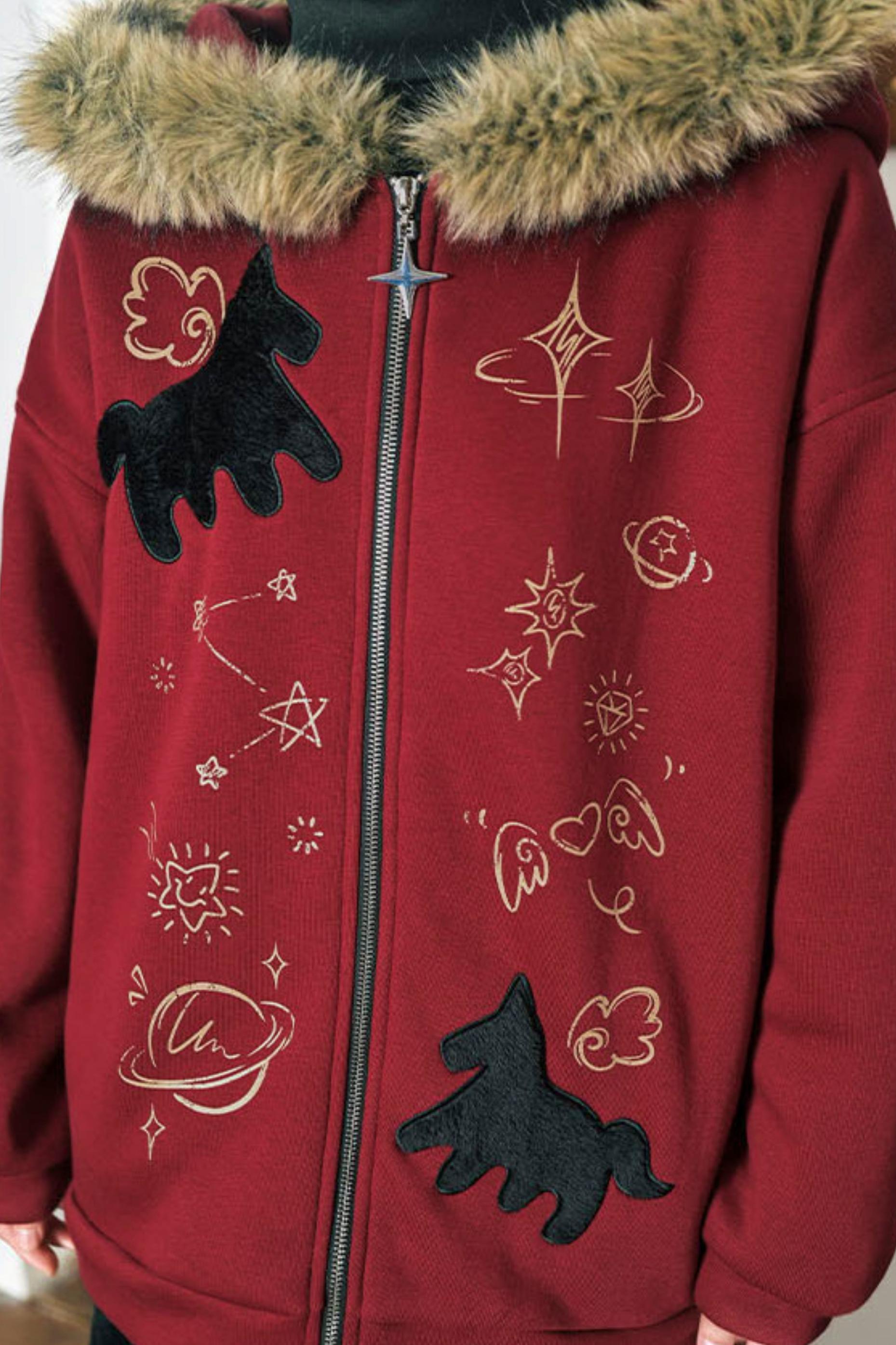 ❤グラフィティファーカラーフーデッドフリースジャケット❤