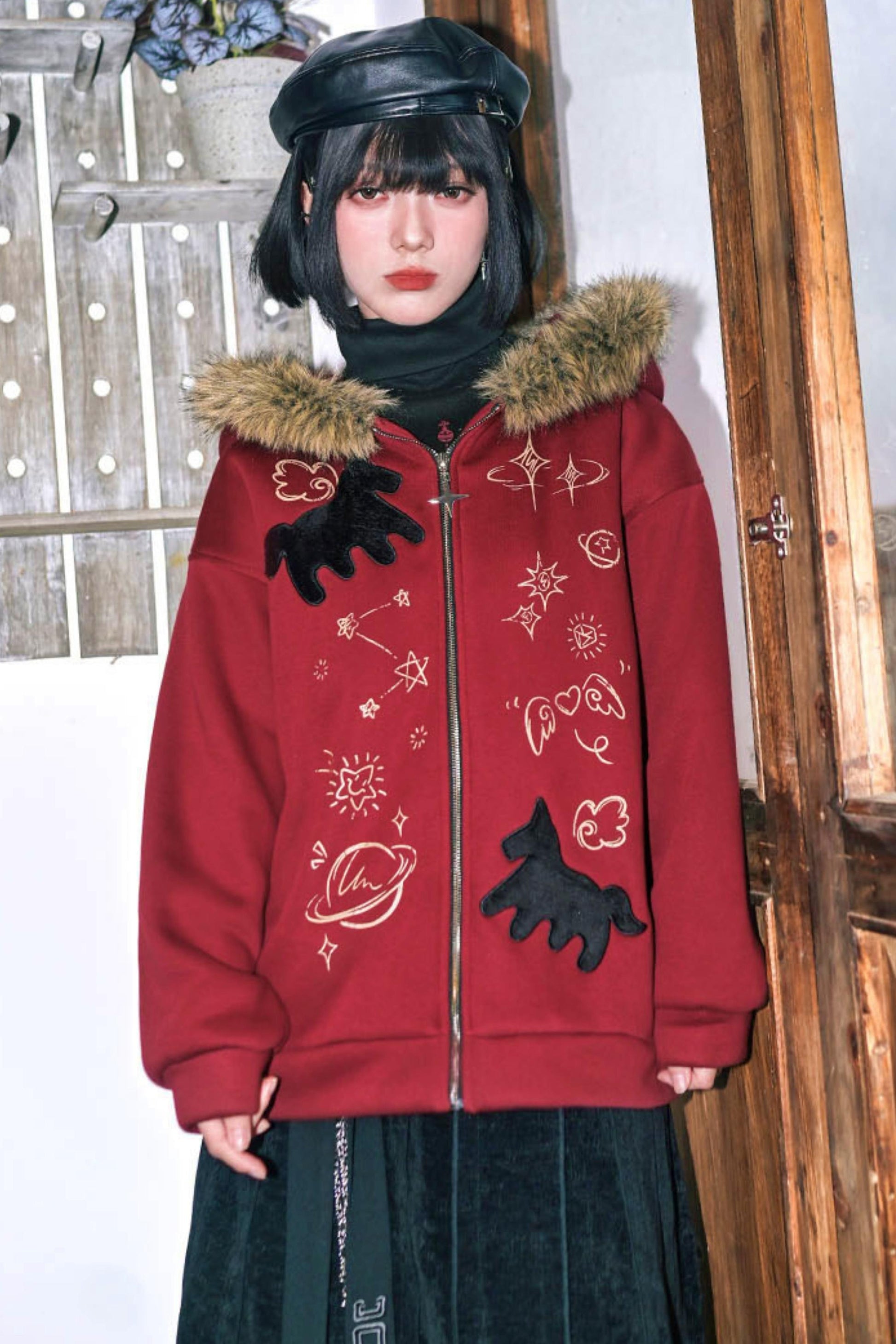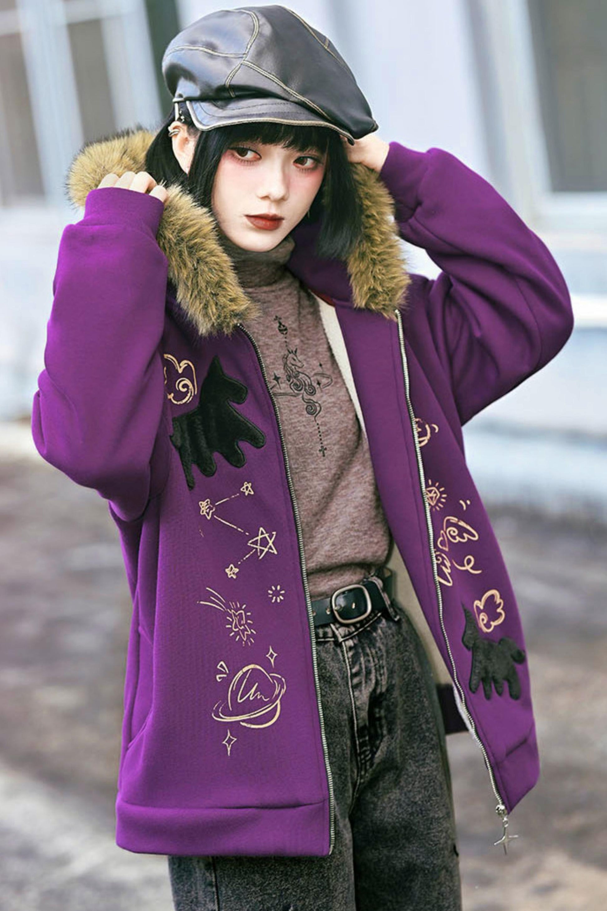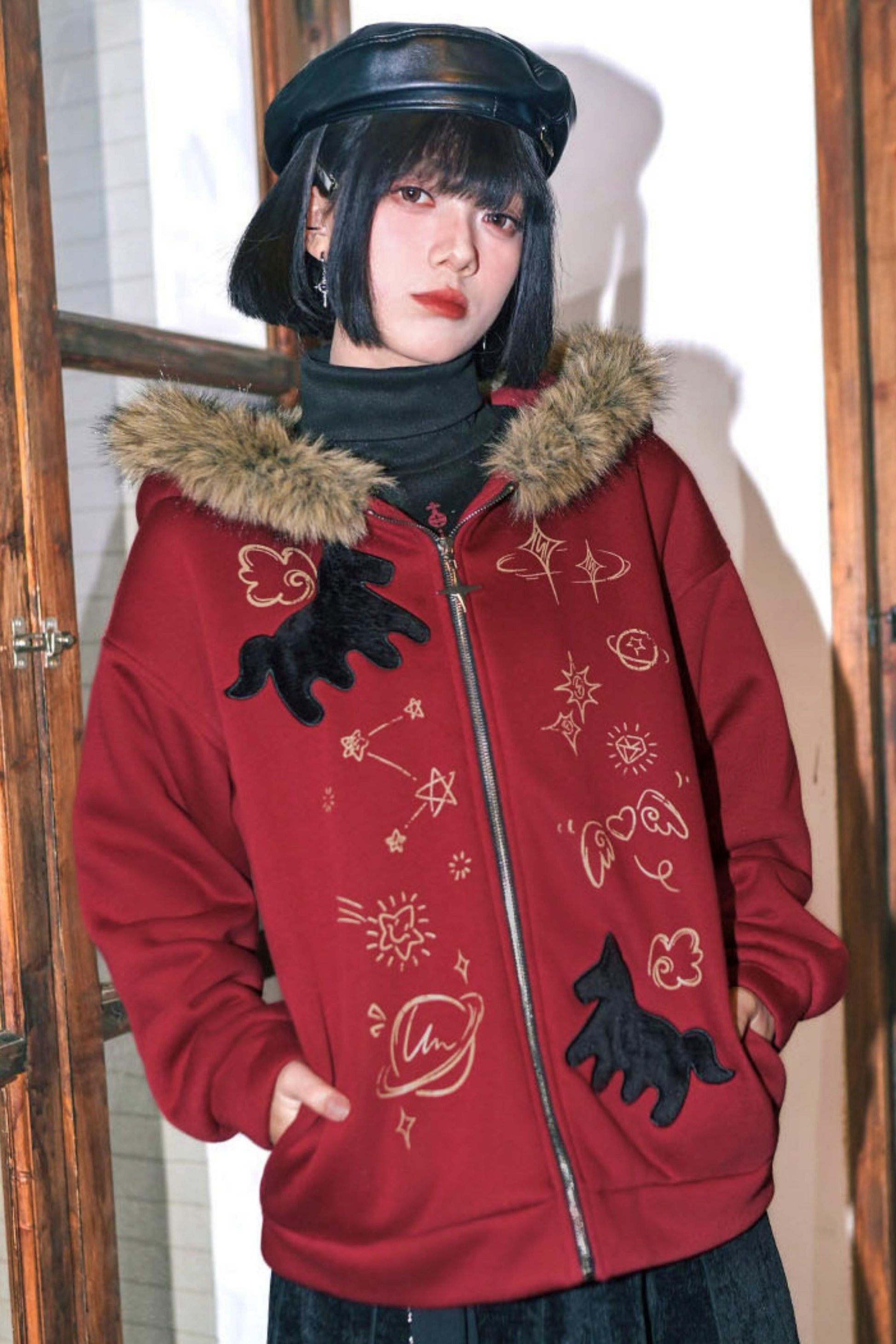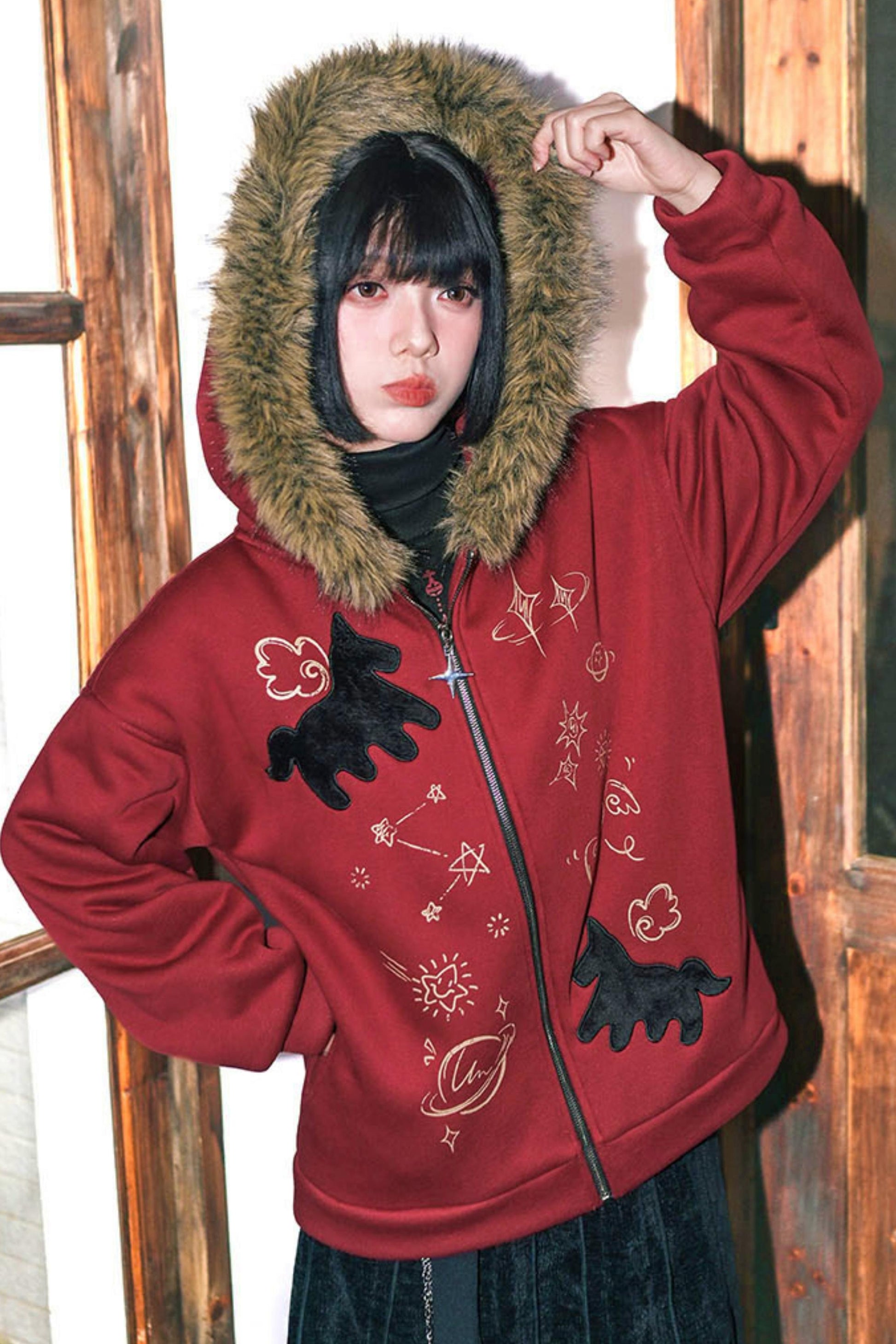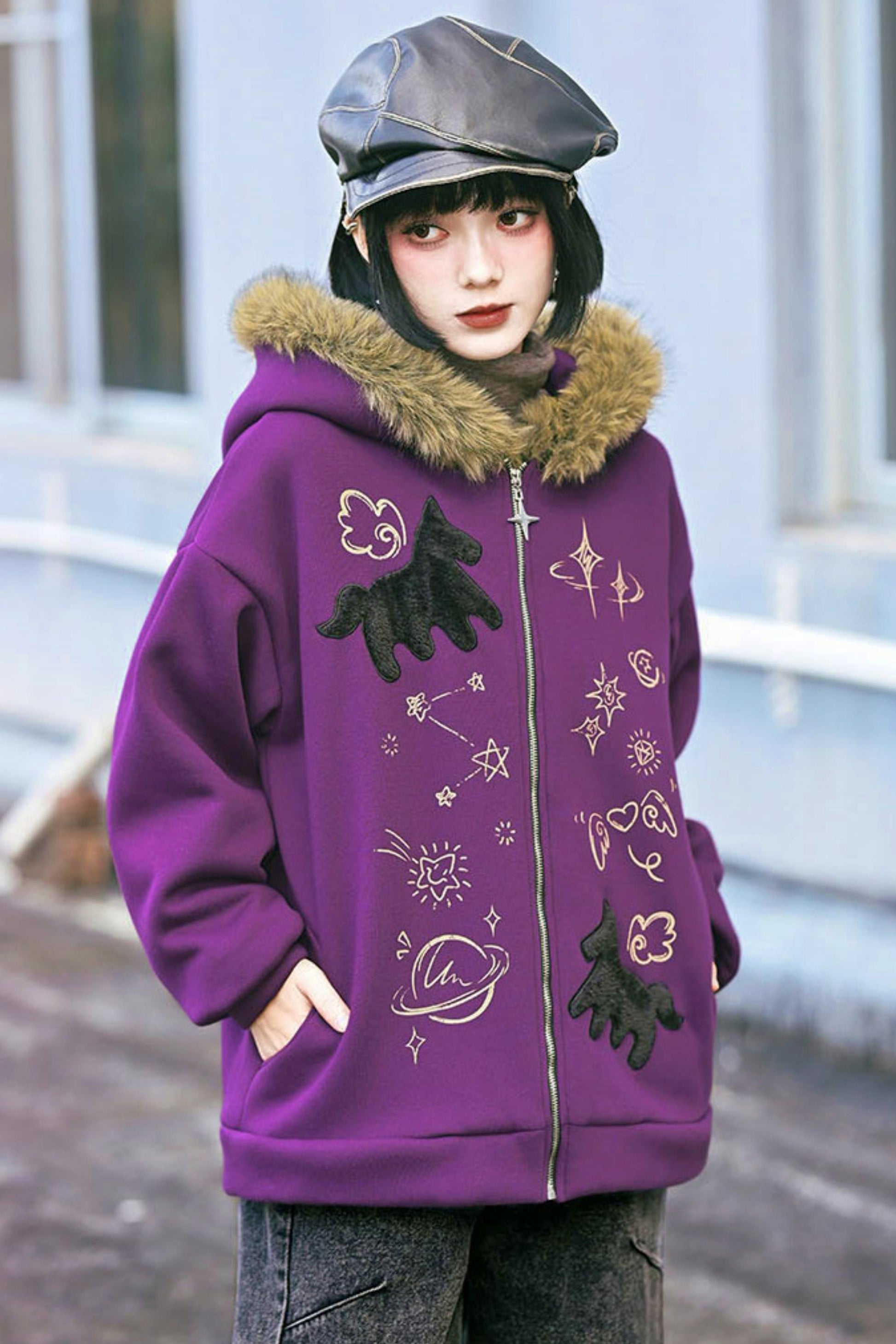 ❤グラフィティファーカラーフーデッドフリースジャケット❤
