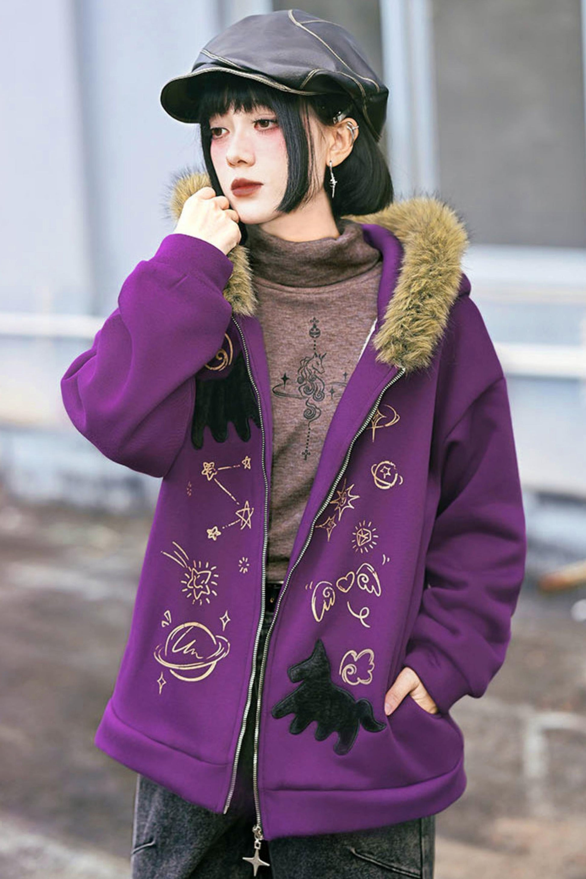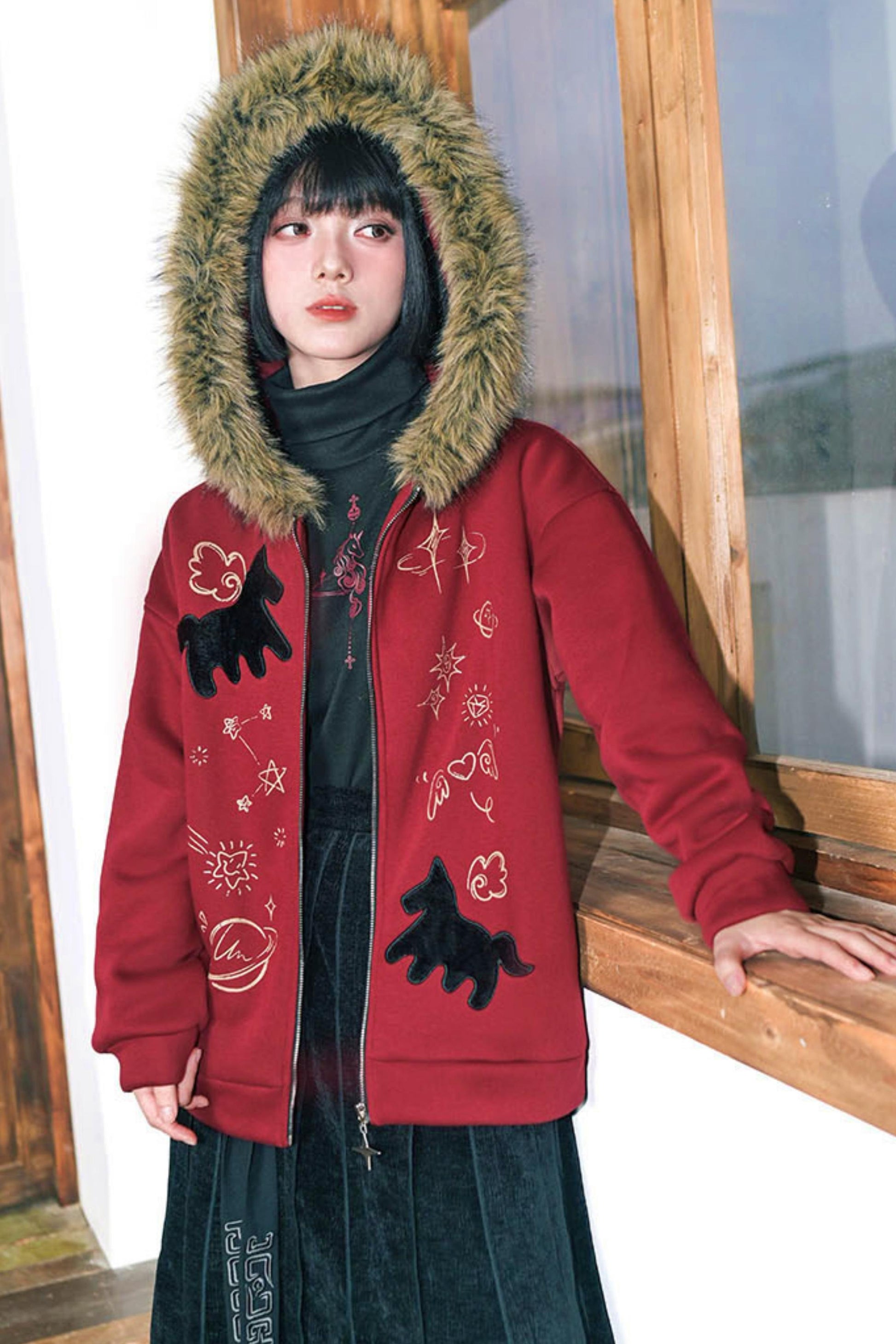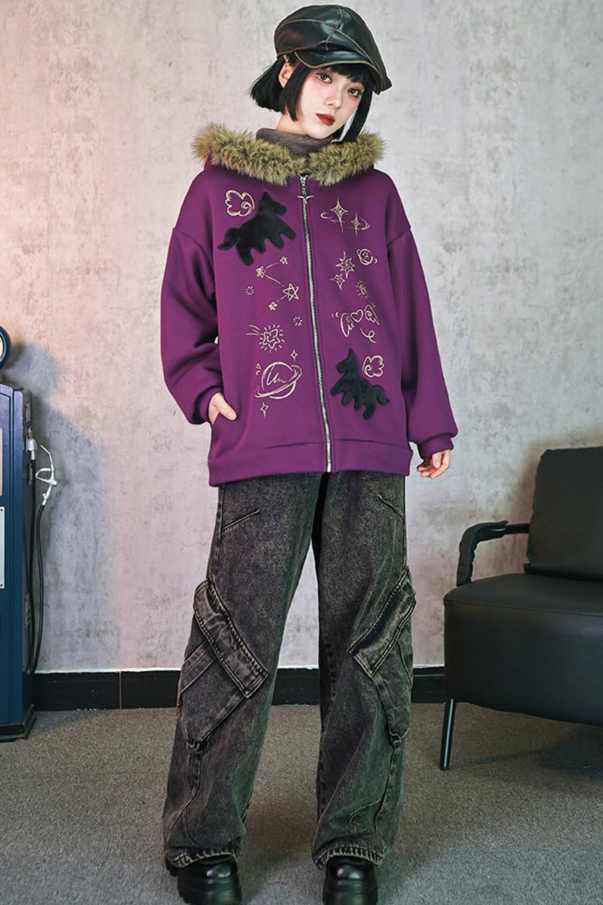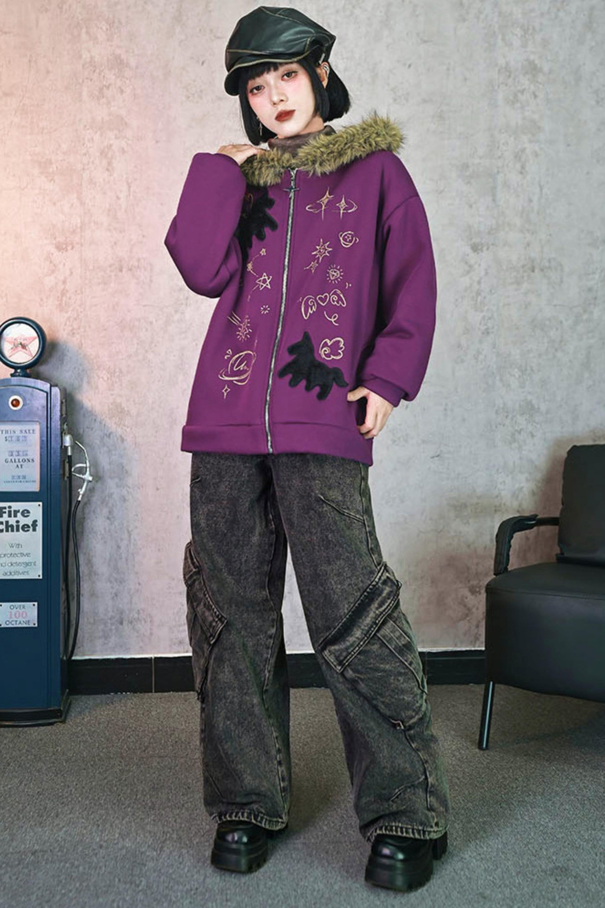 ❤グラフィティファーカラーフーデッドフリースジャケット❤
