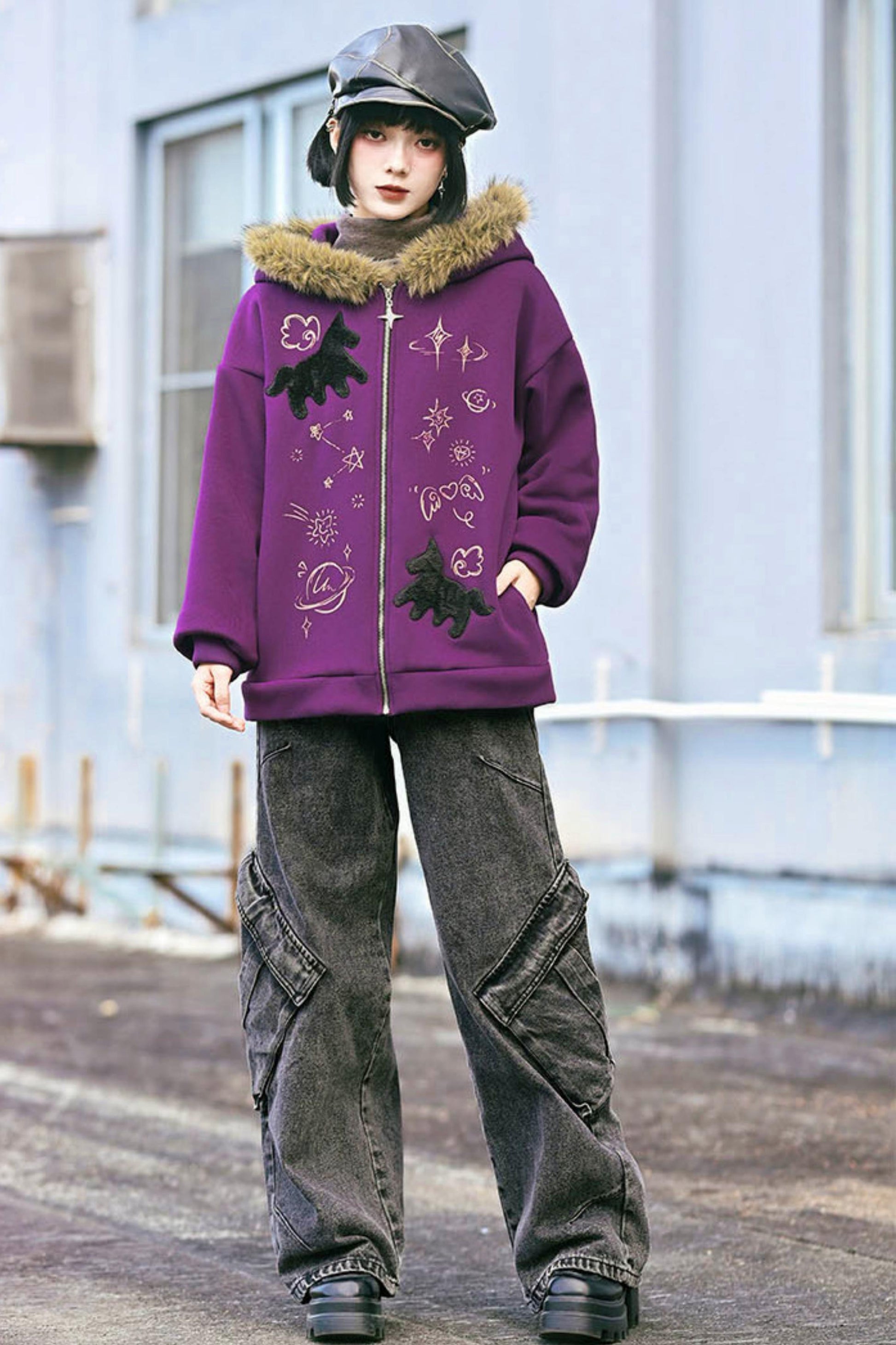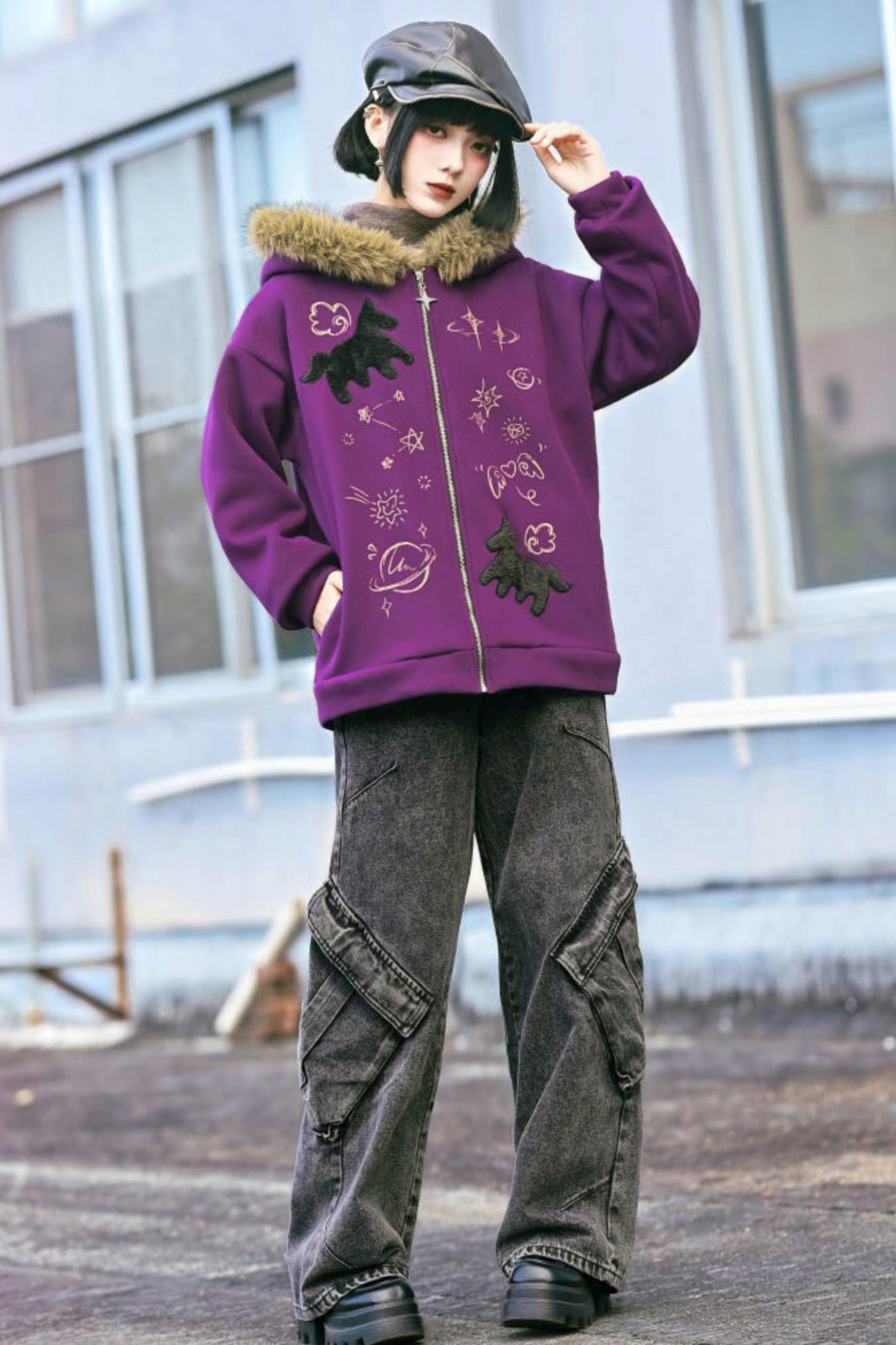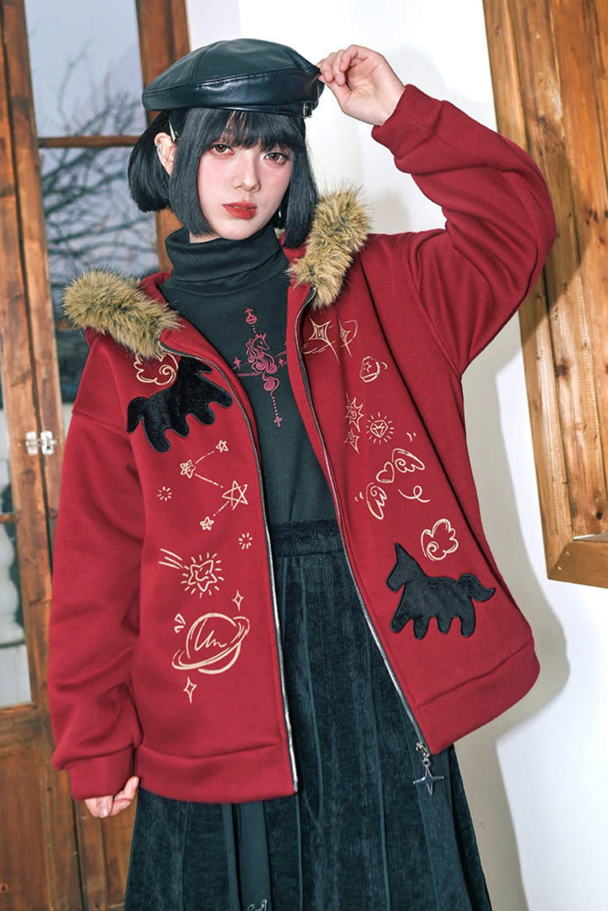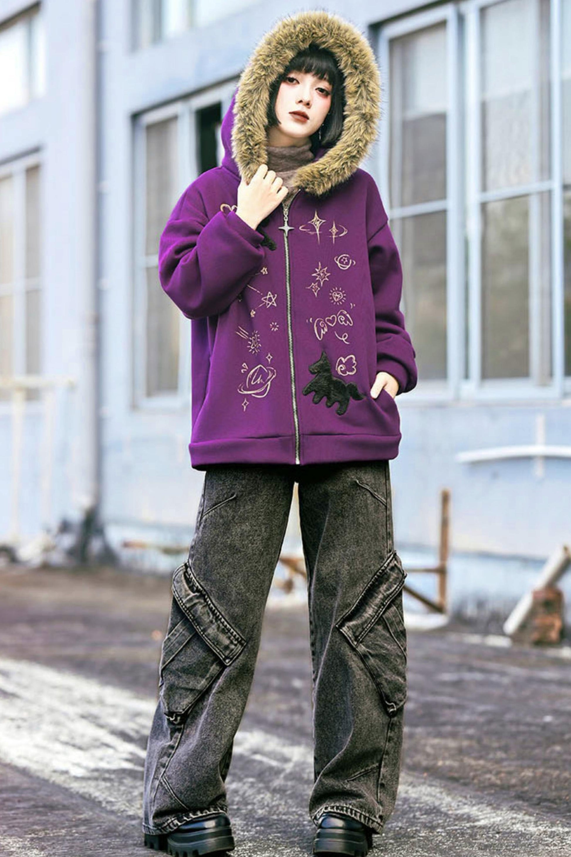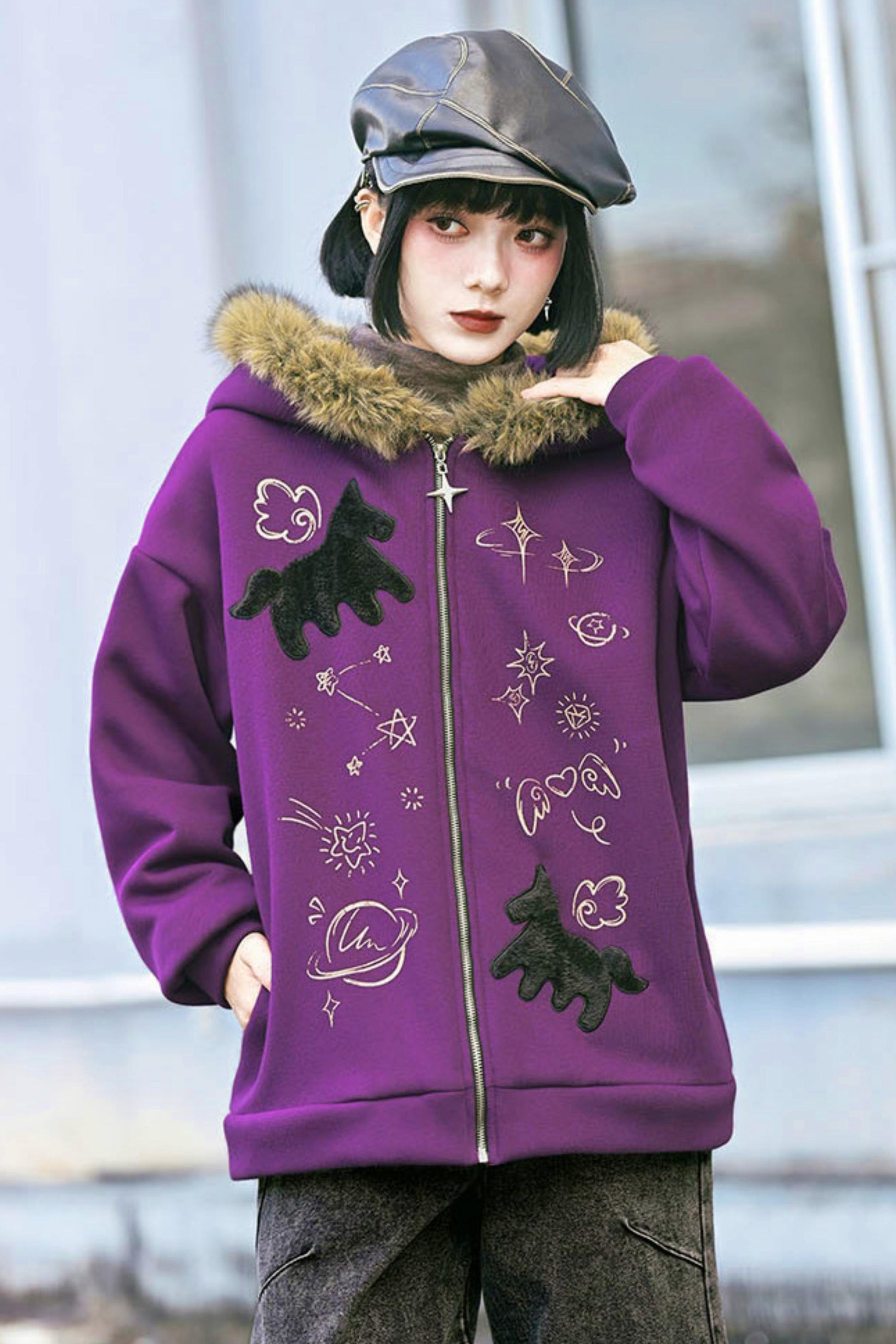 ❤グラフィティファーカラーフーデッドフリースジャケット❤