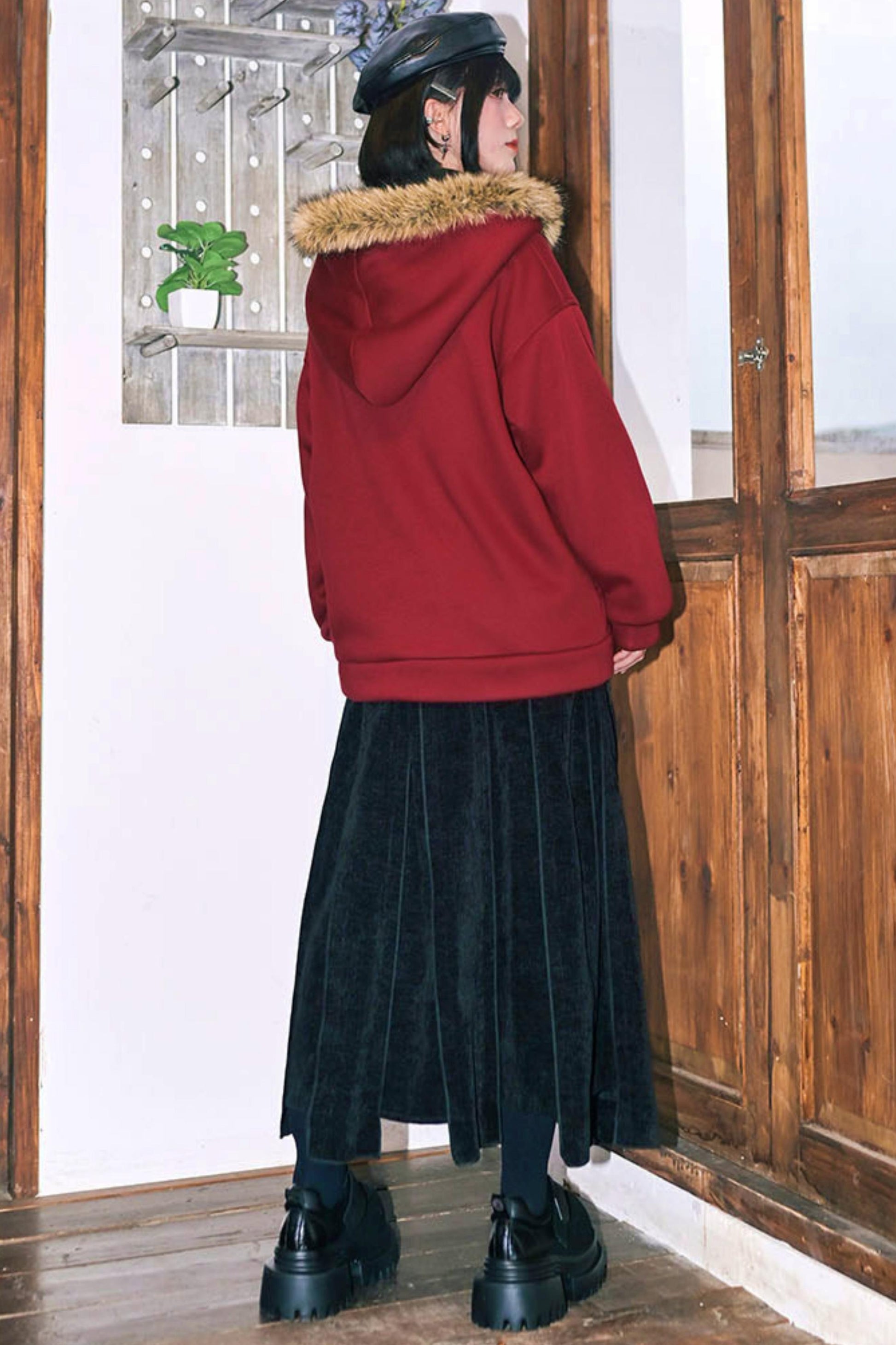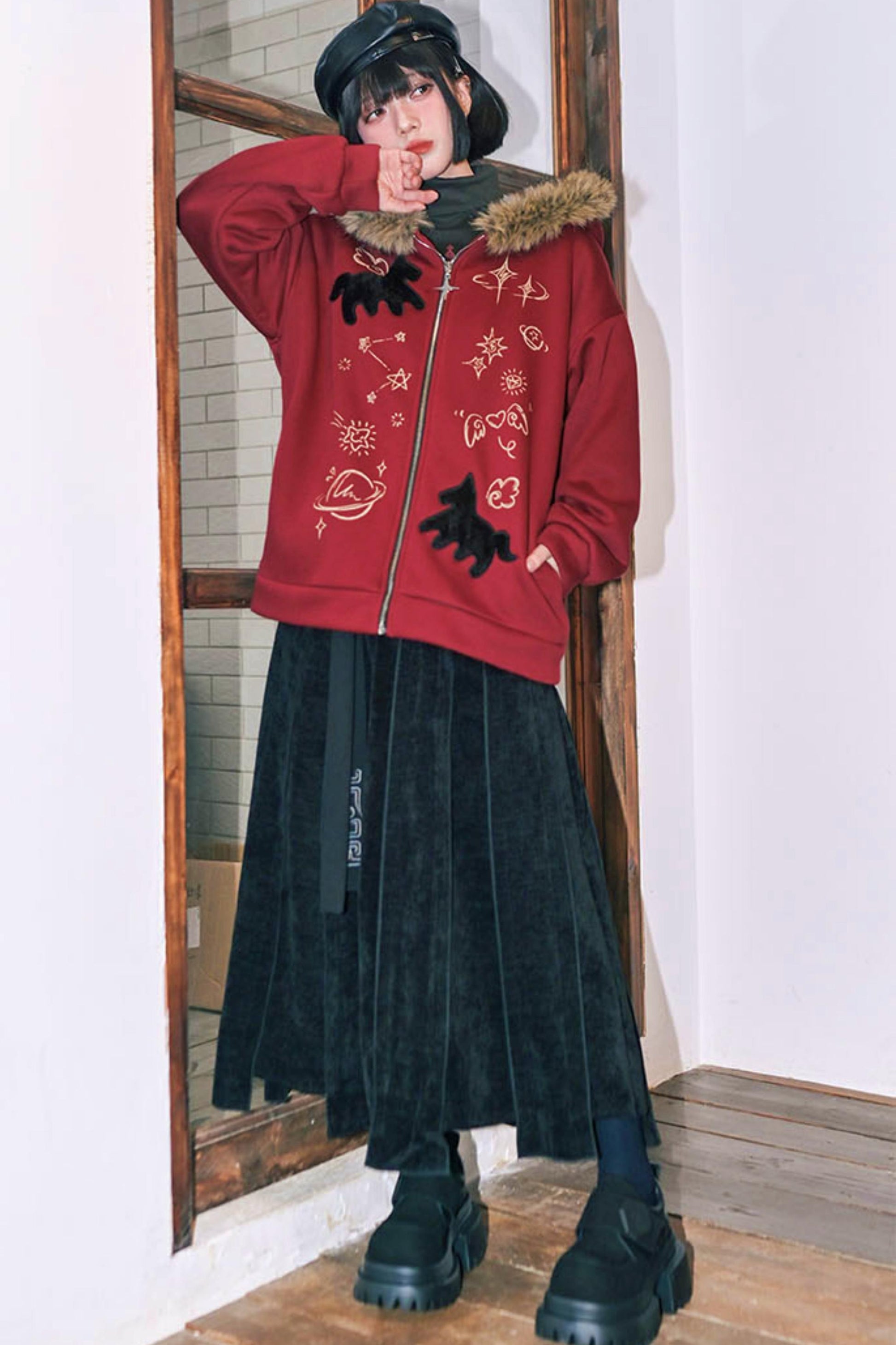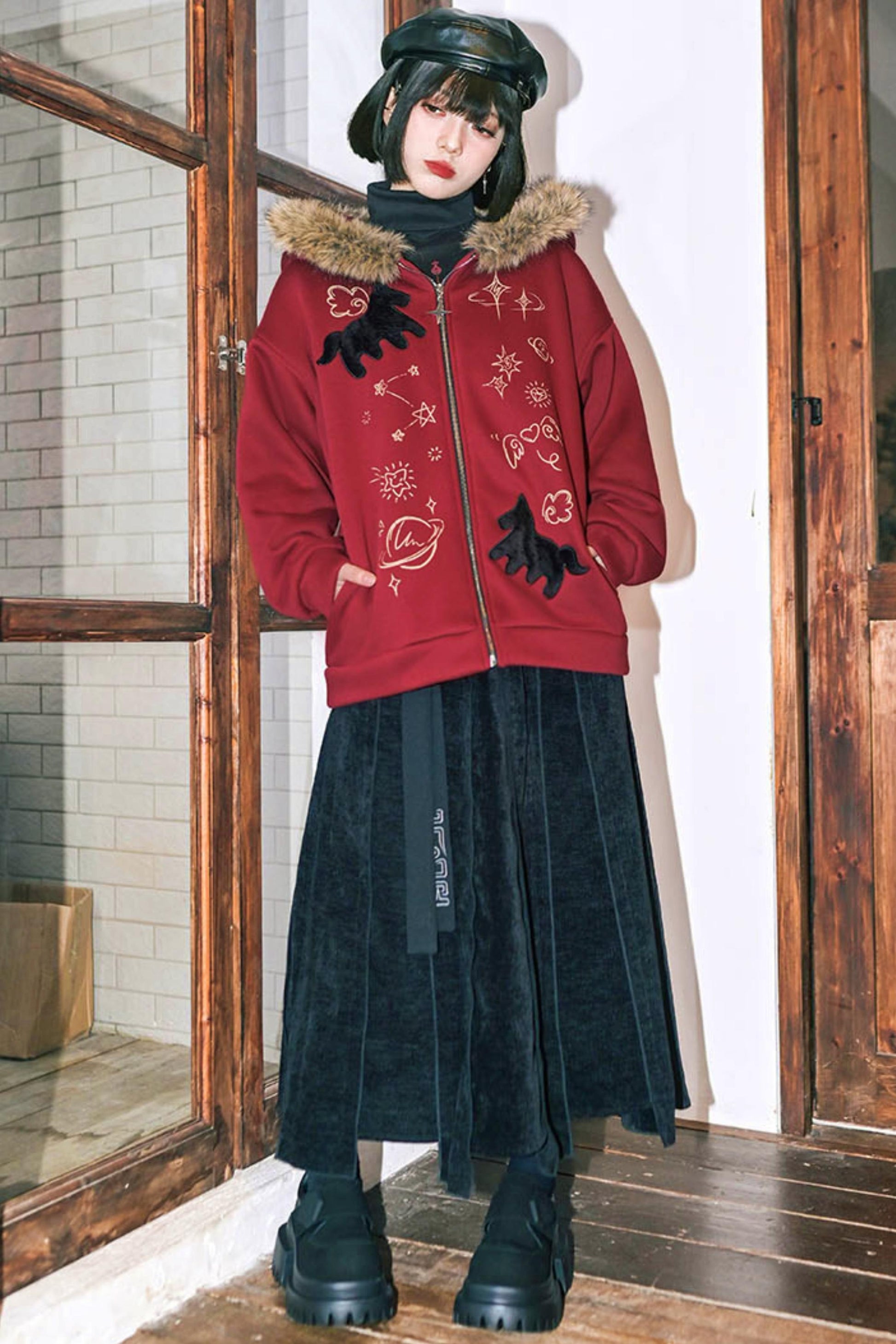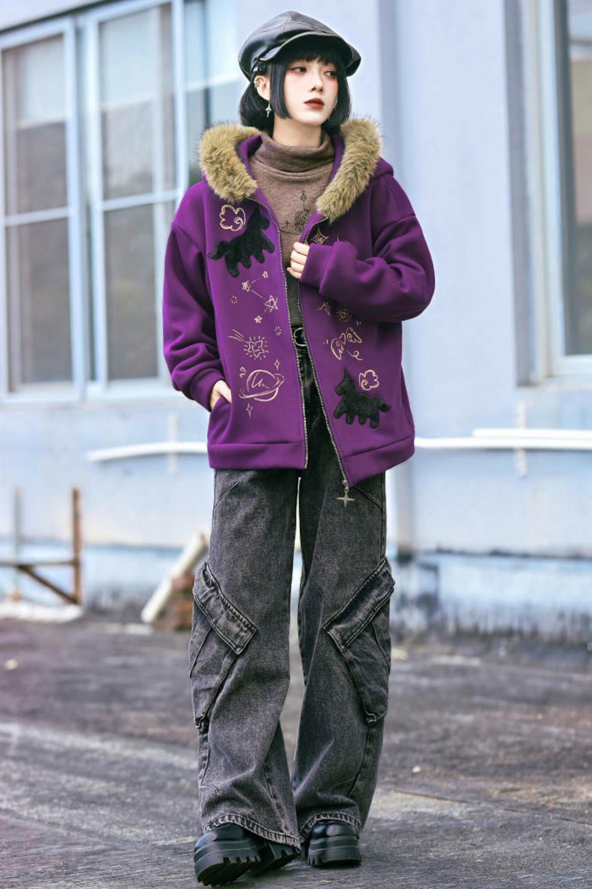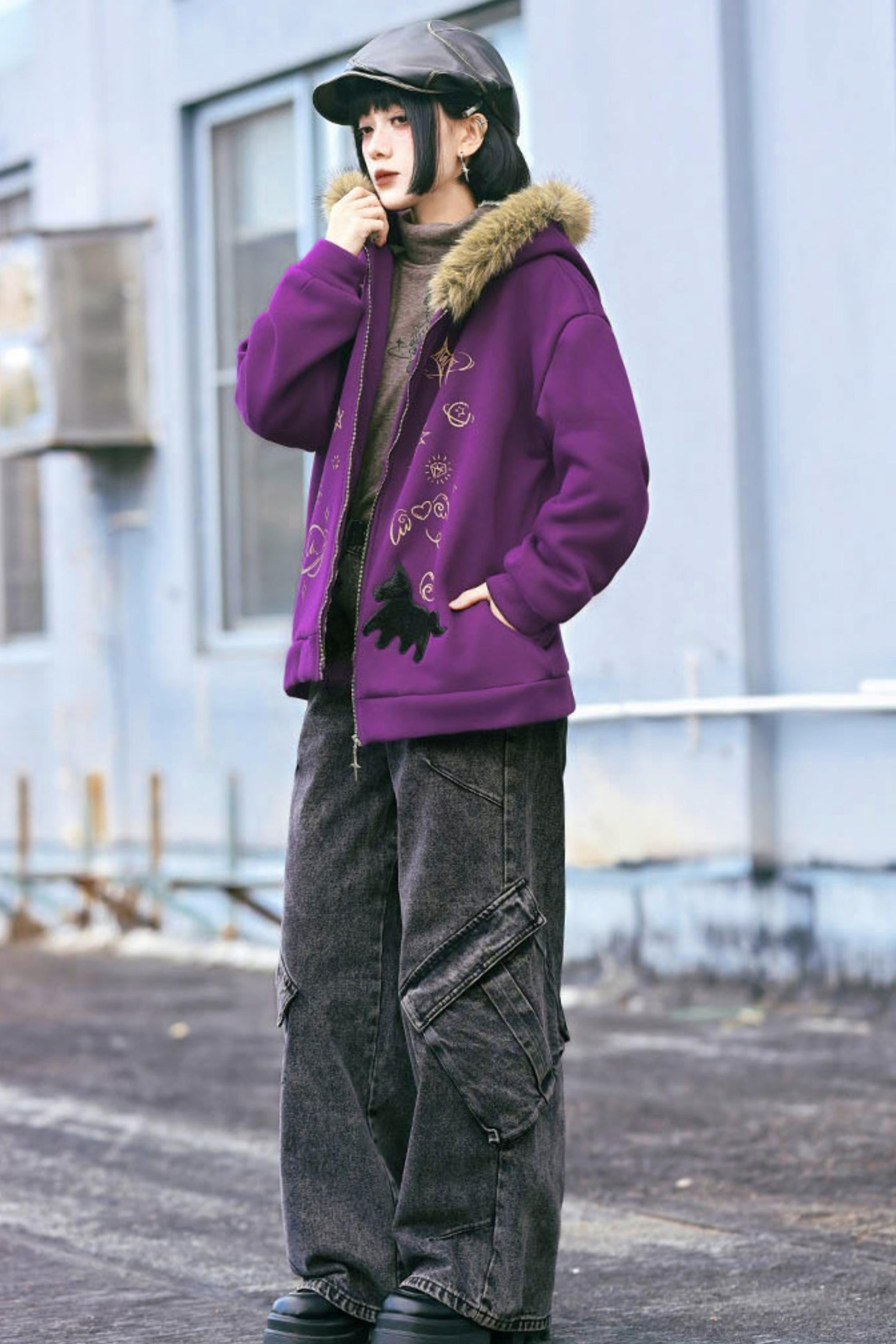 ❤グラフィティファーカラーフーデッドフリースジャケット❤