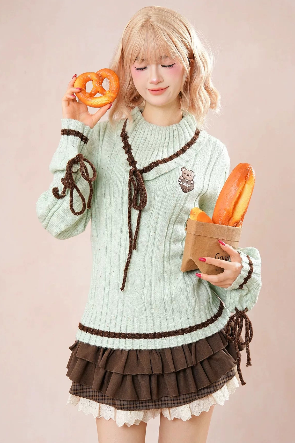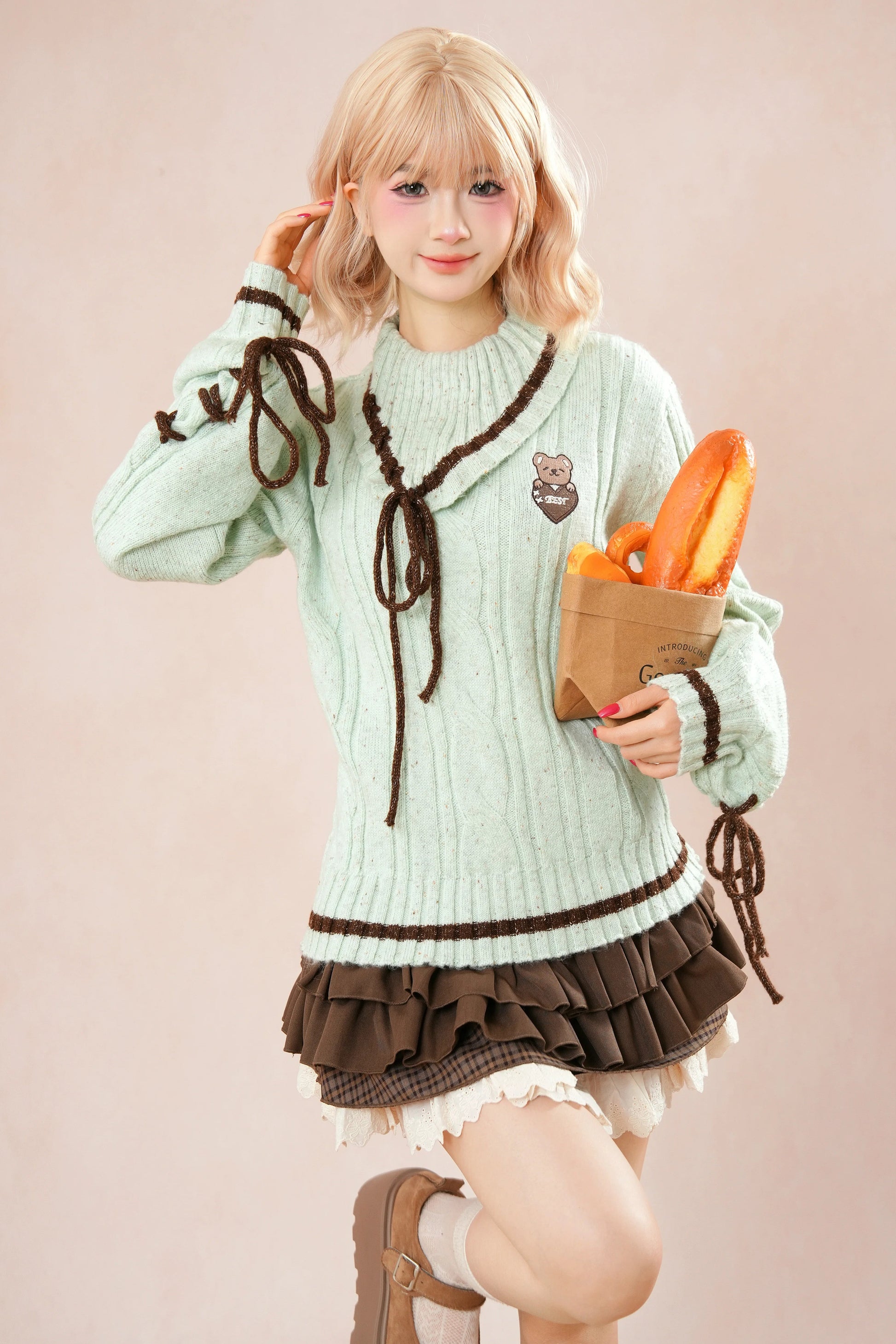 ミントベアニット+ケーキスカート