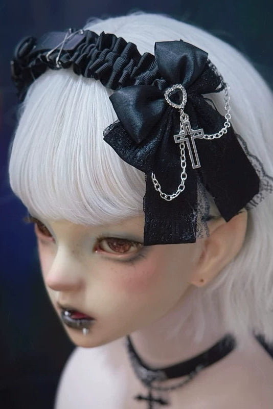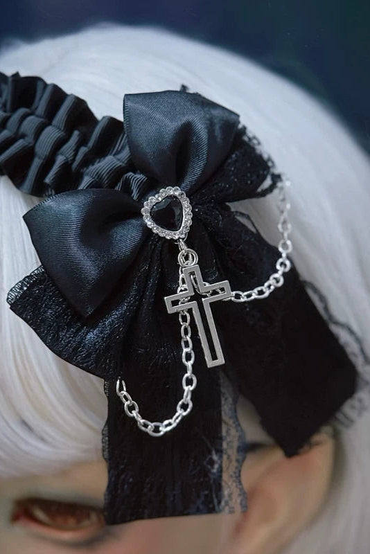 リボンレザーレースヘッドバンド