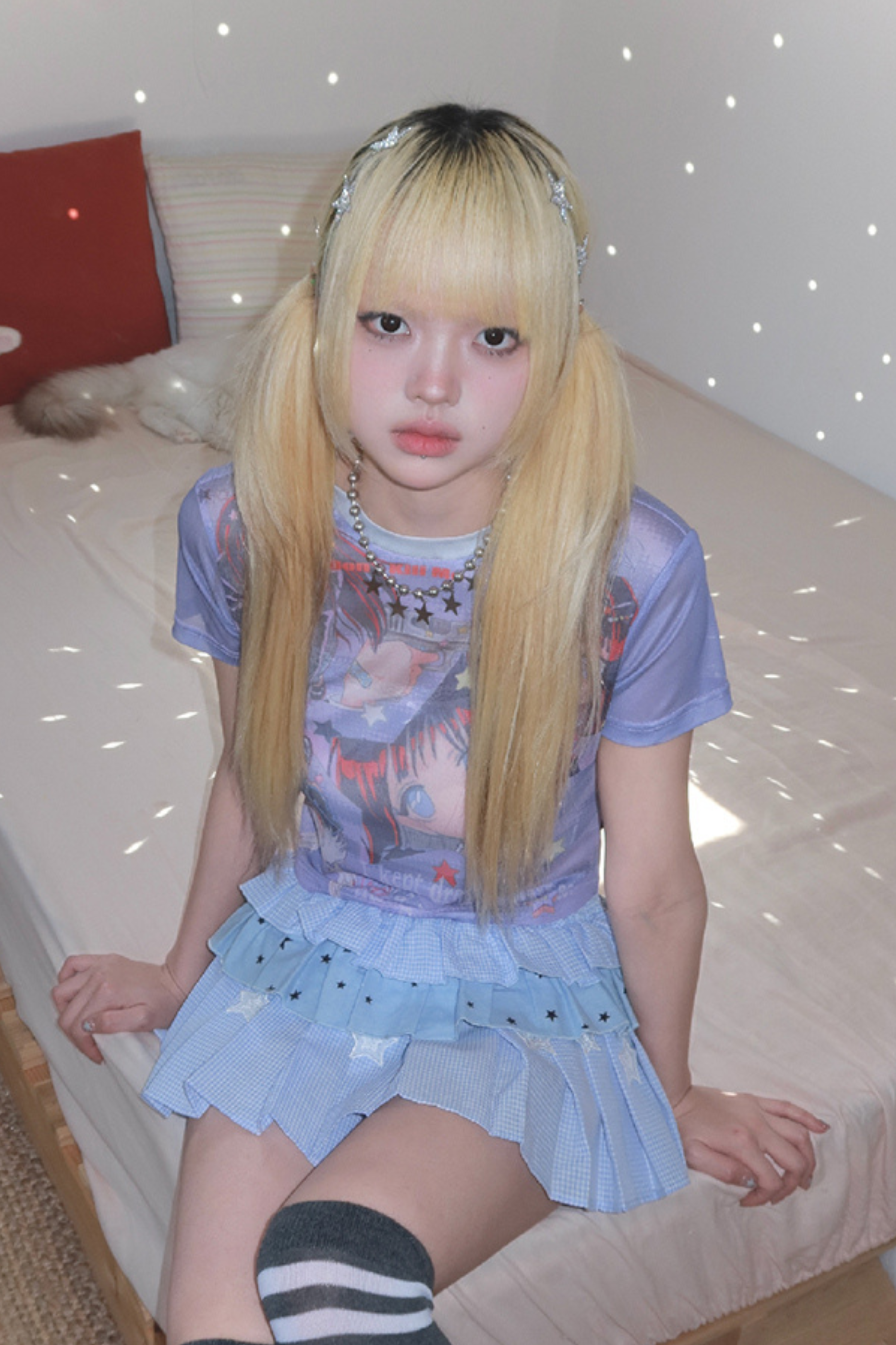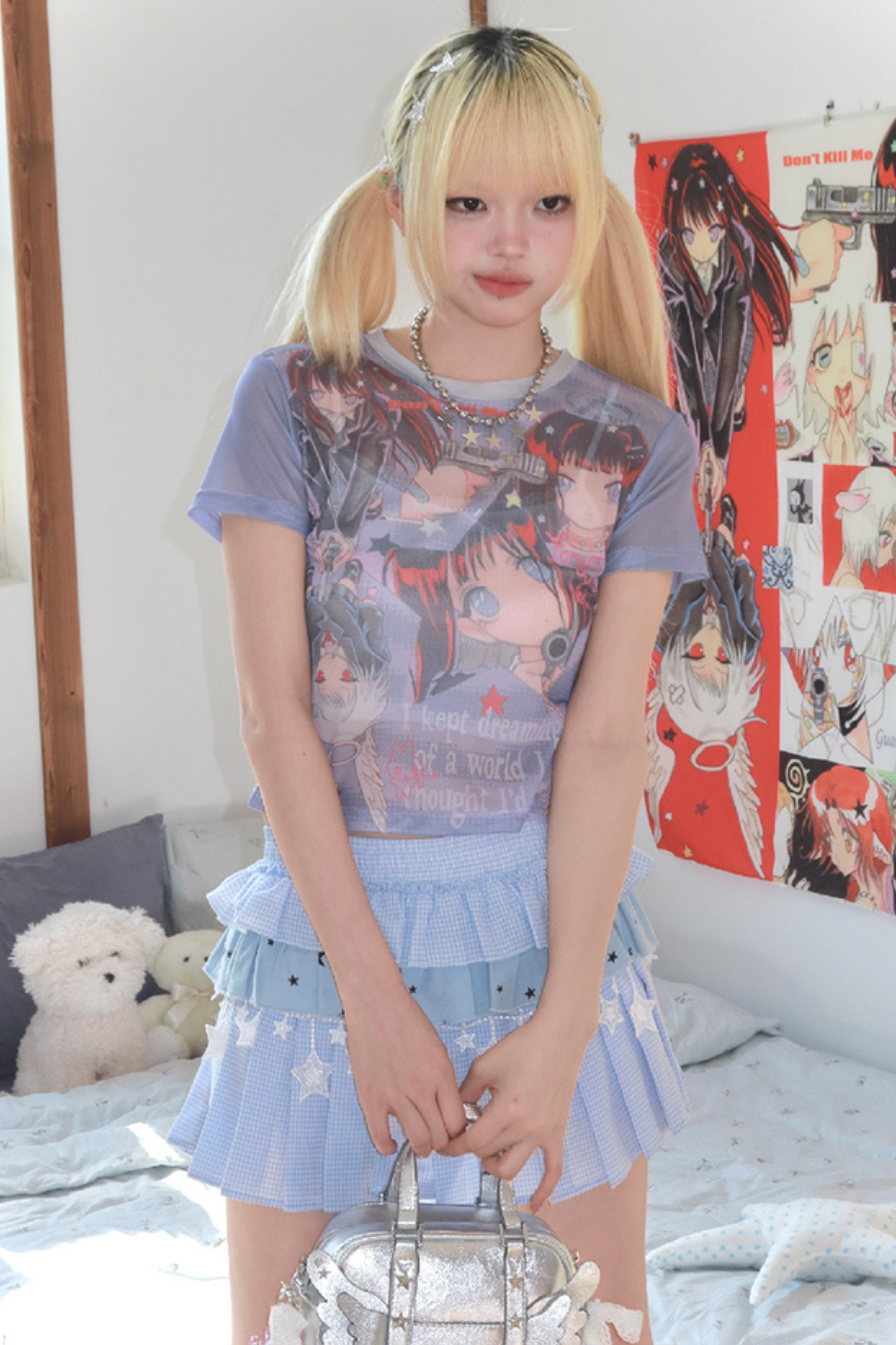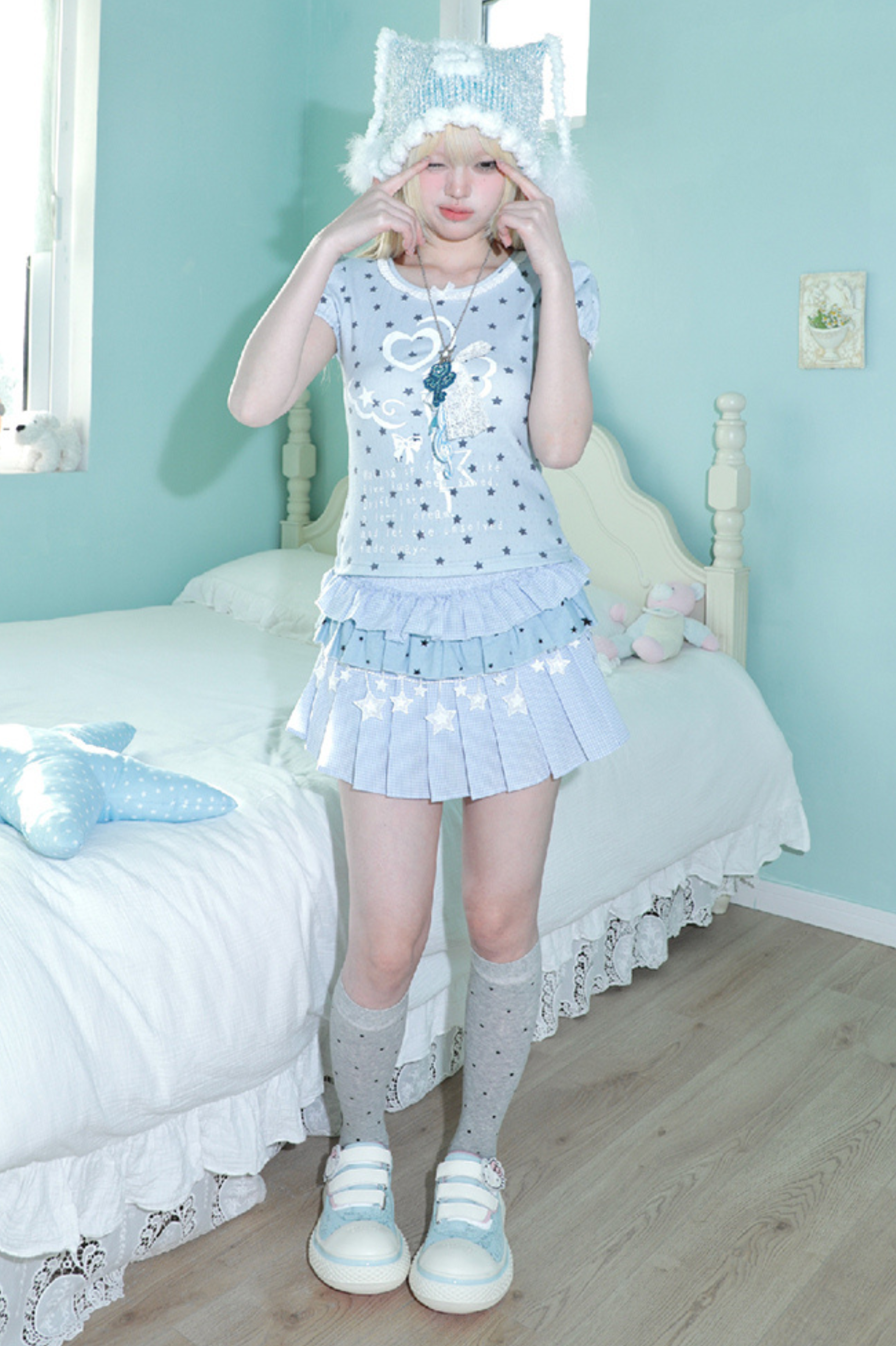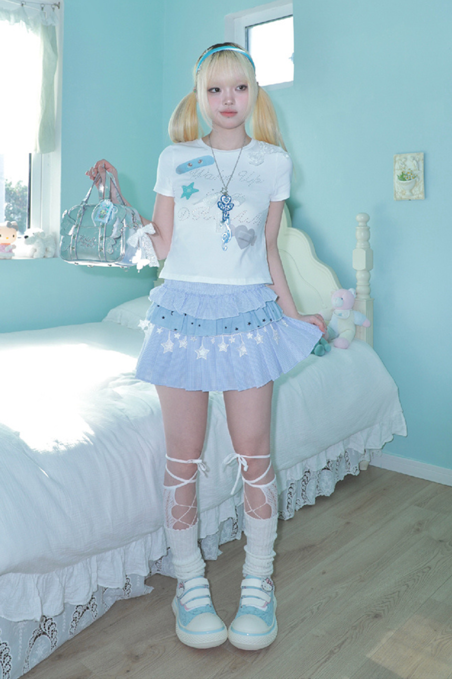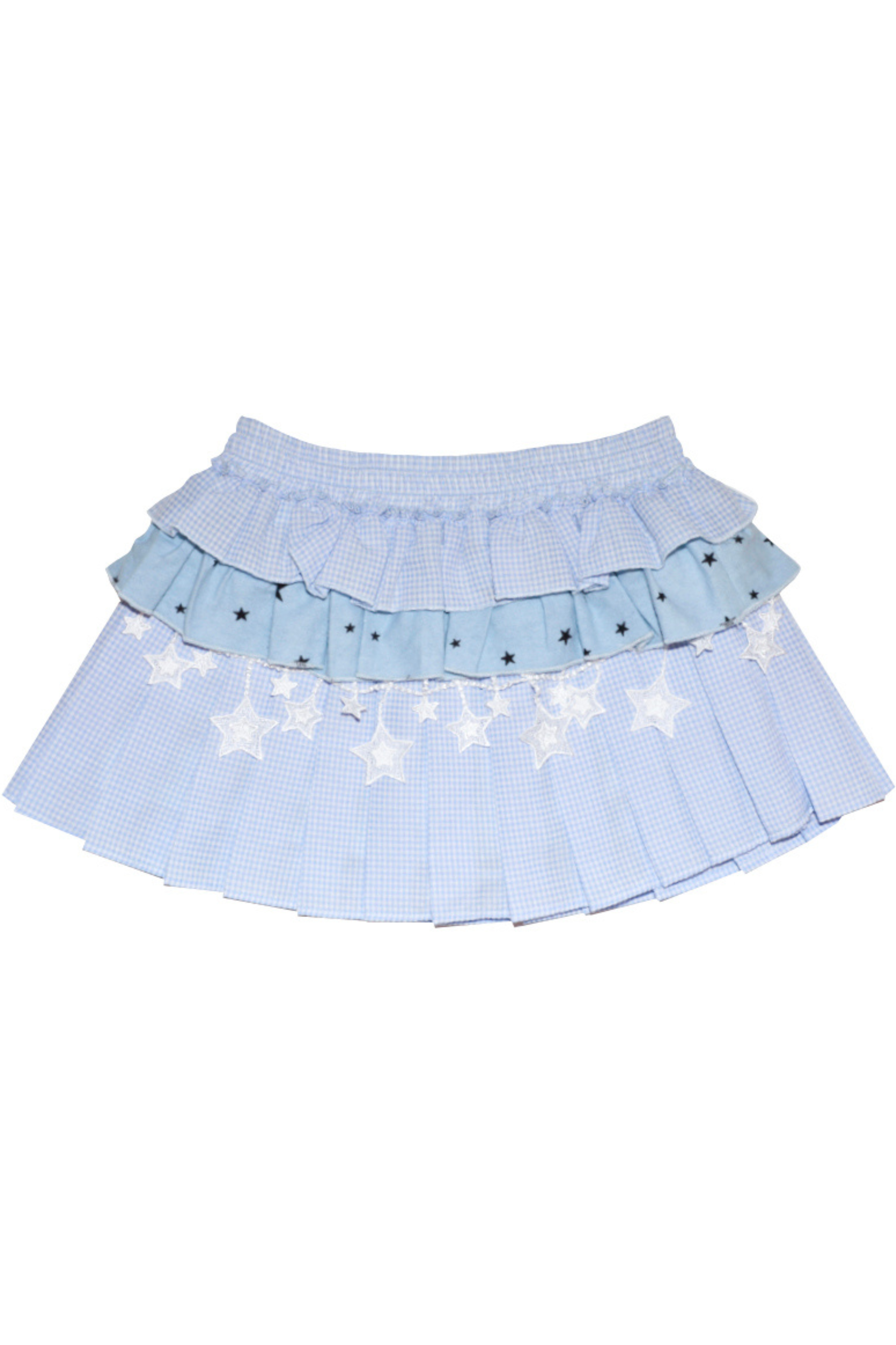 ドリームスターレースブルーチェックトリプルパフィースカート