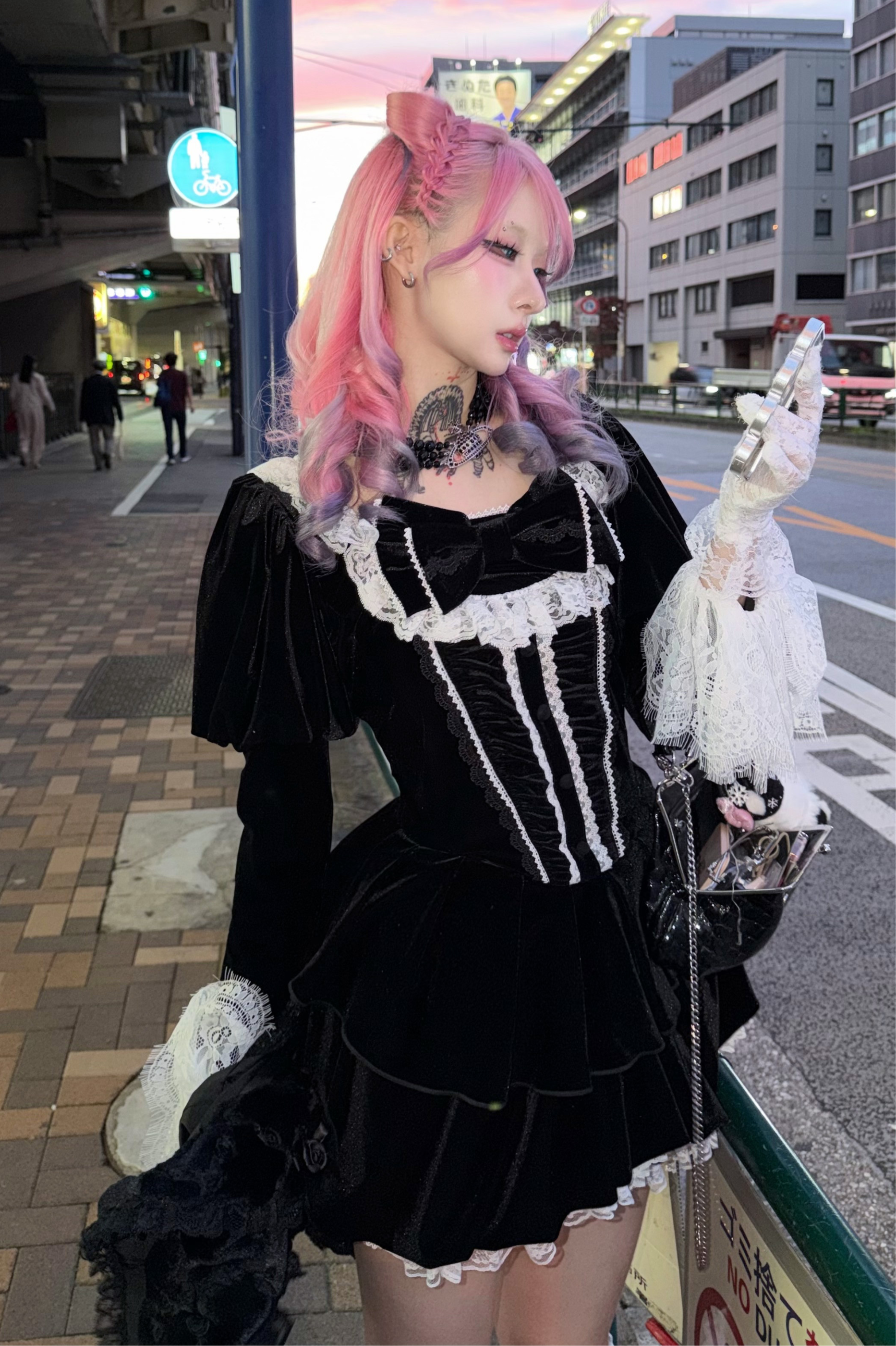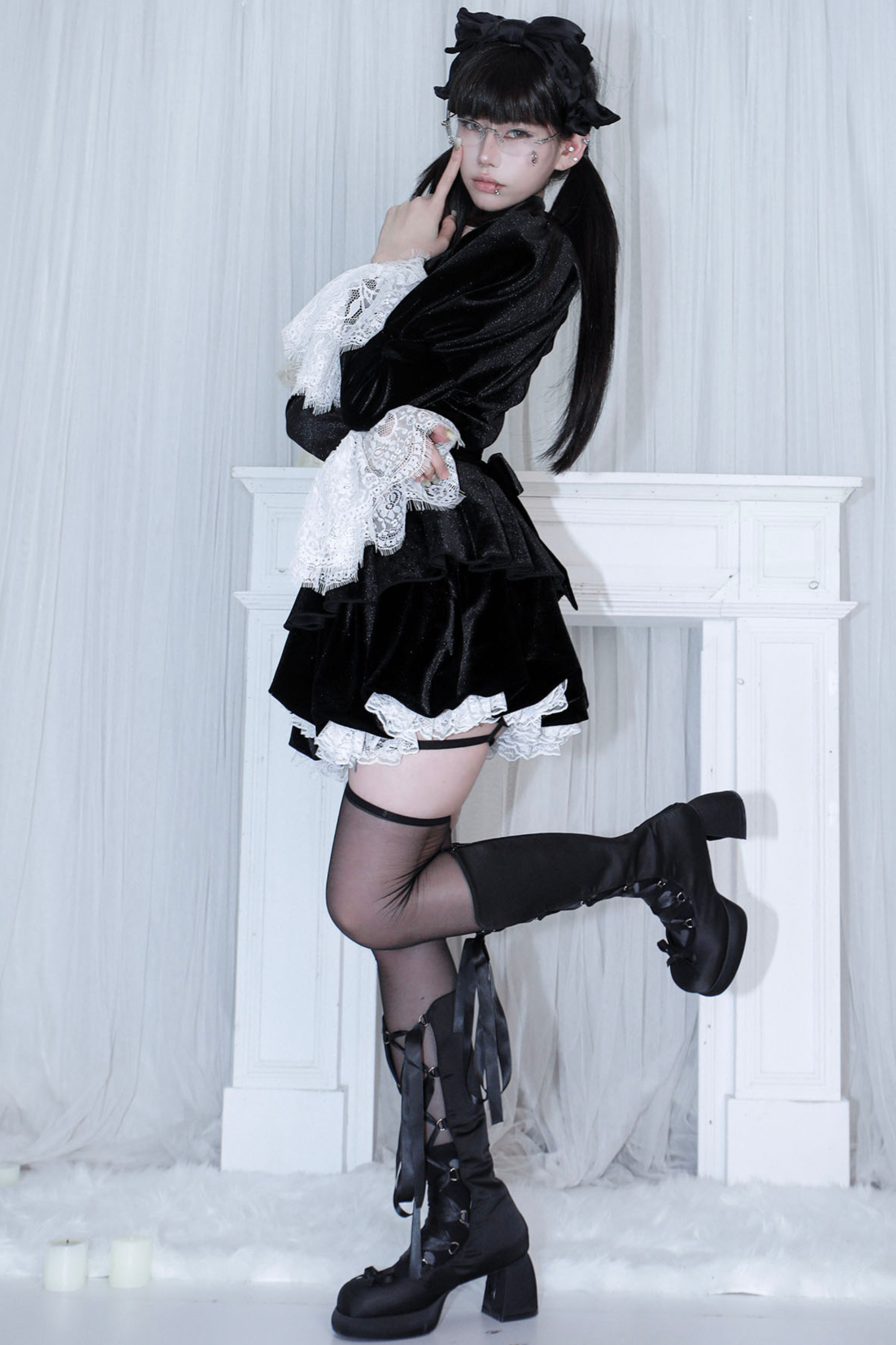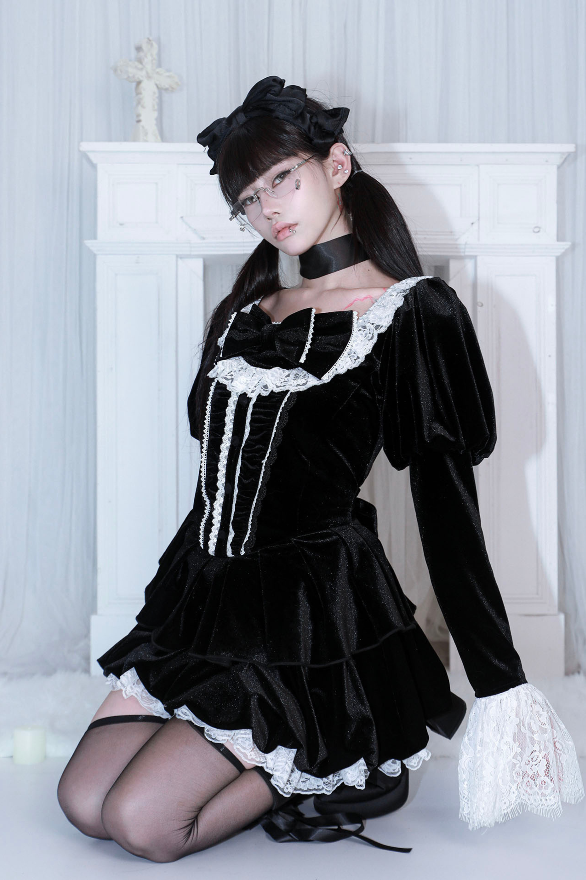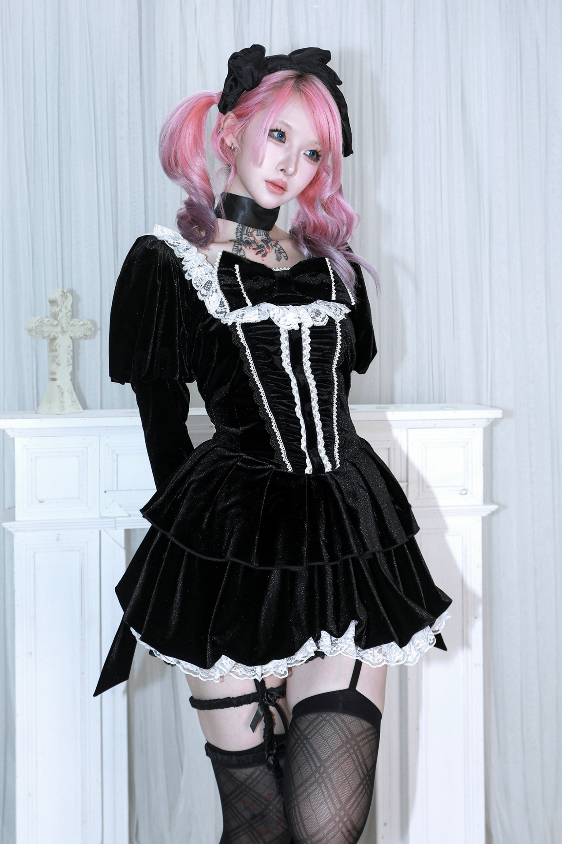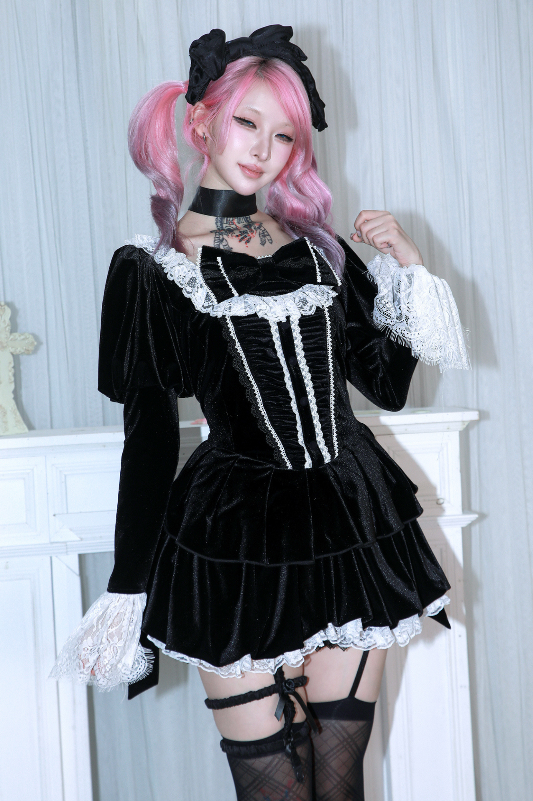 リボンゴシックベルベットレースドレス