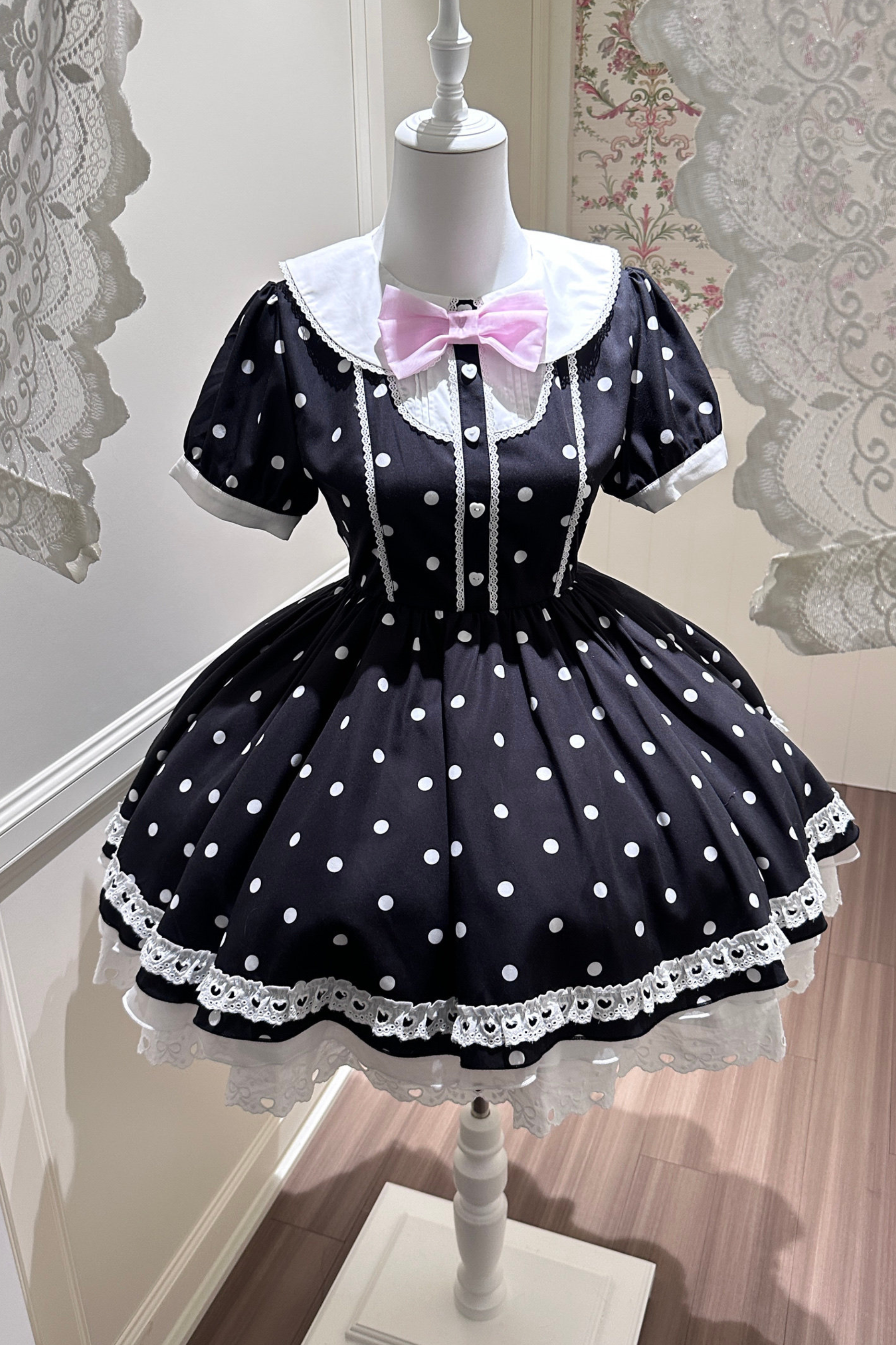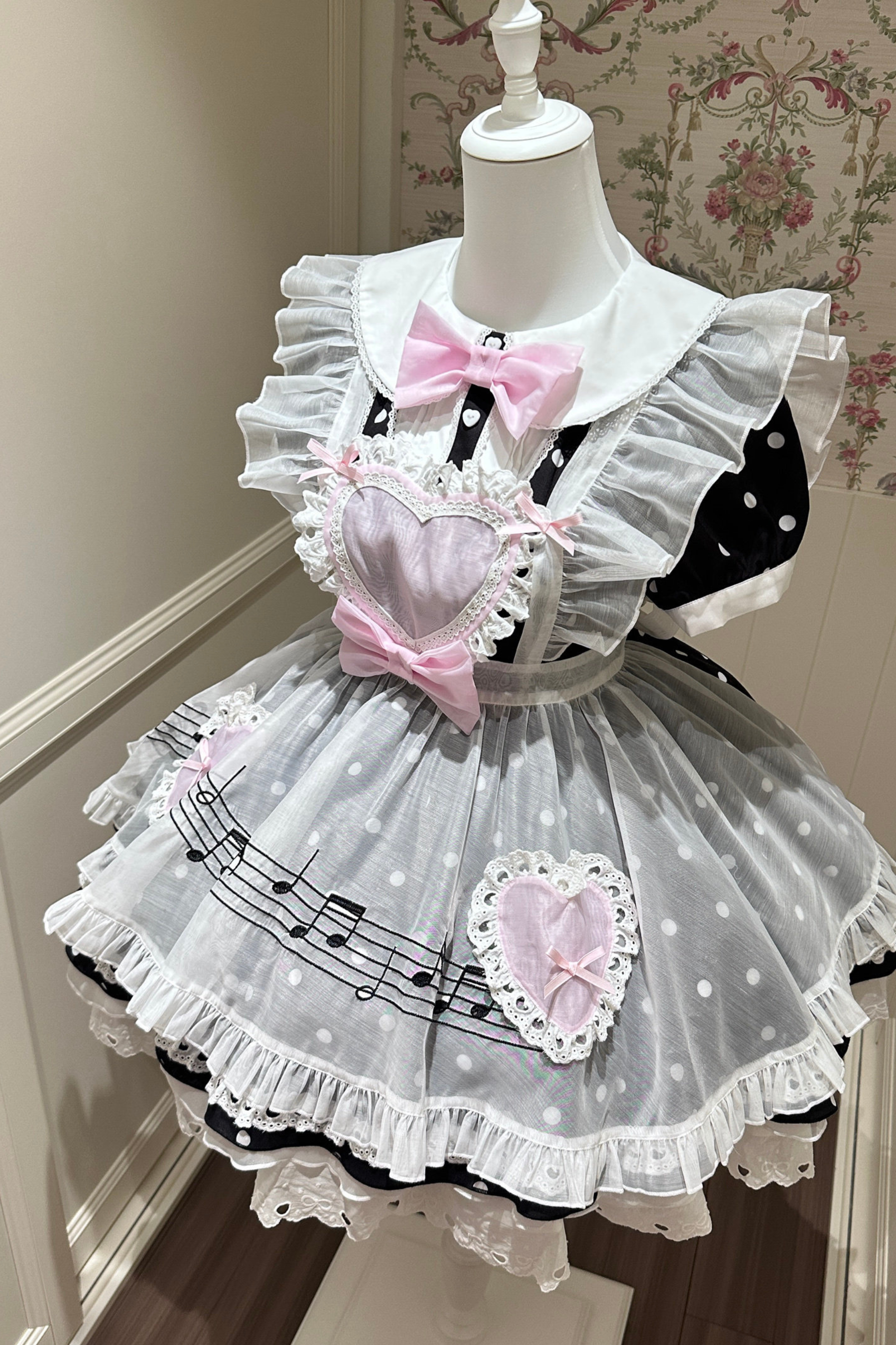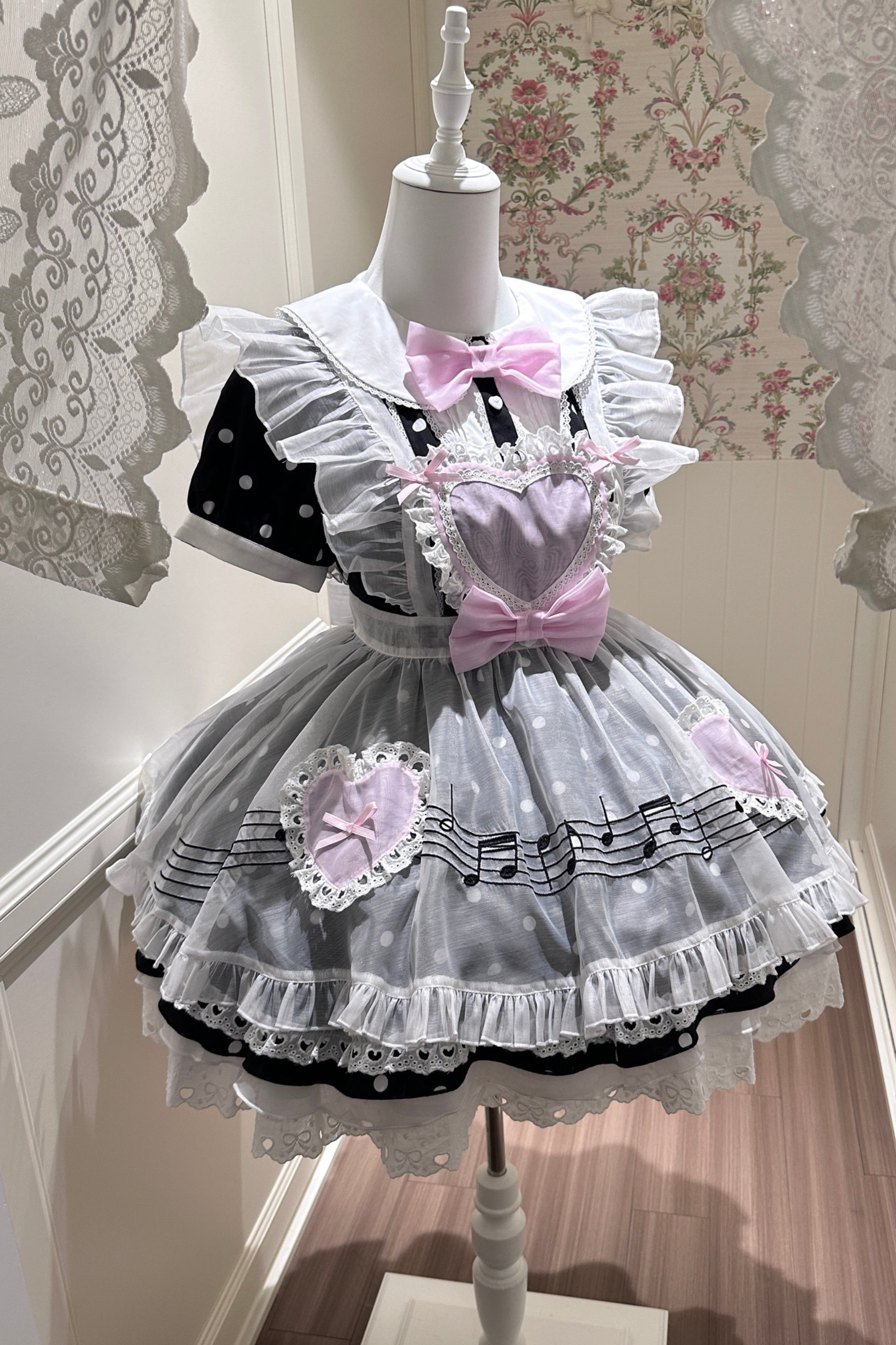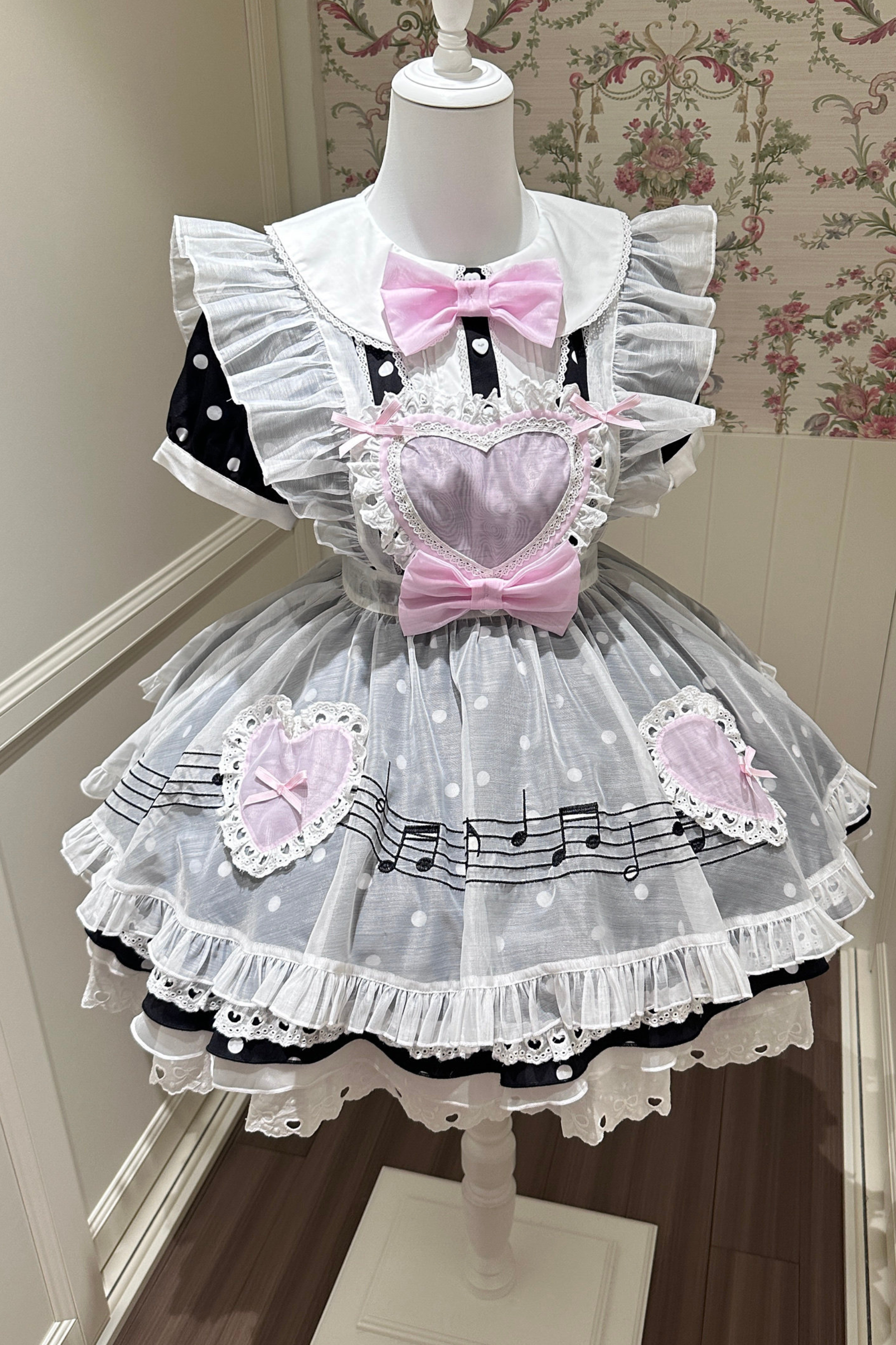 ❤ハートビートドットドレス+シアーエプロン❤