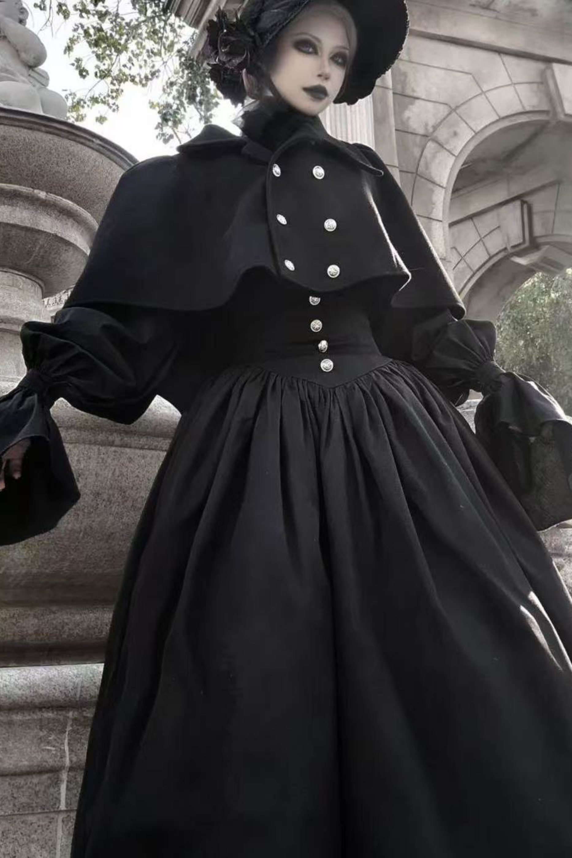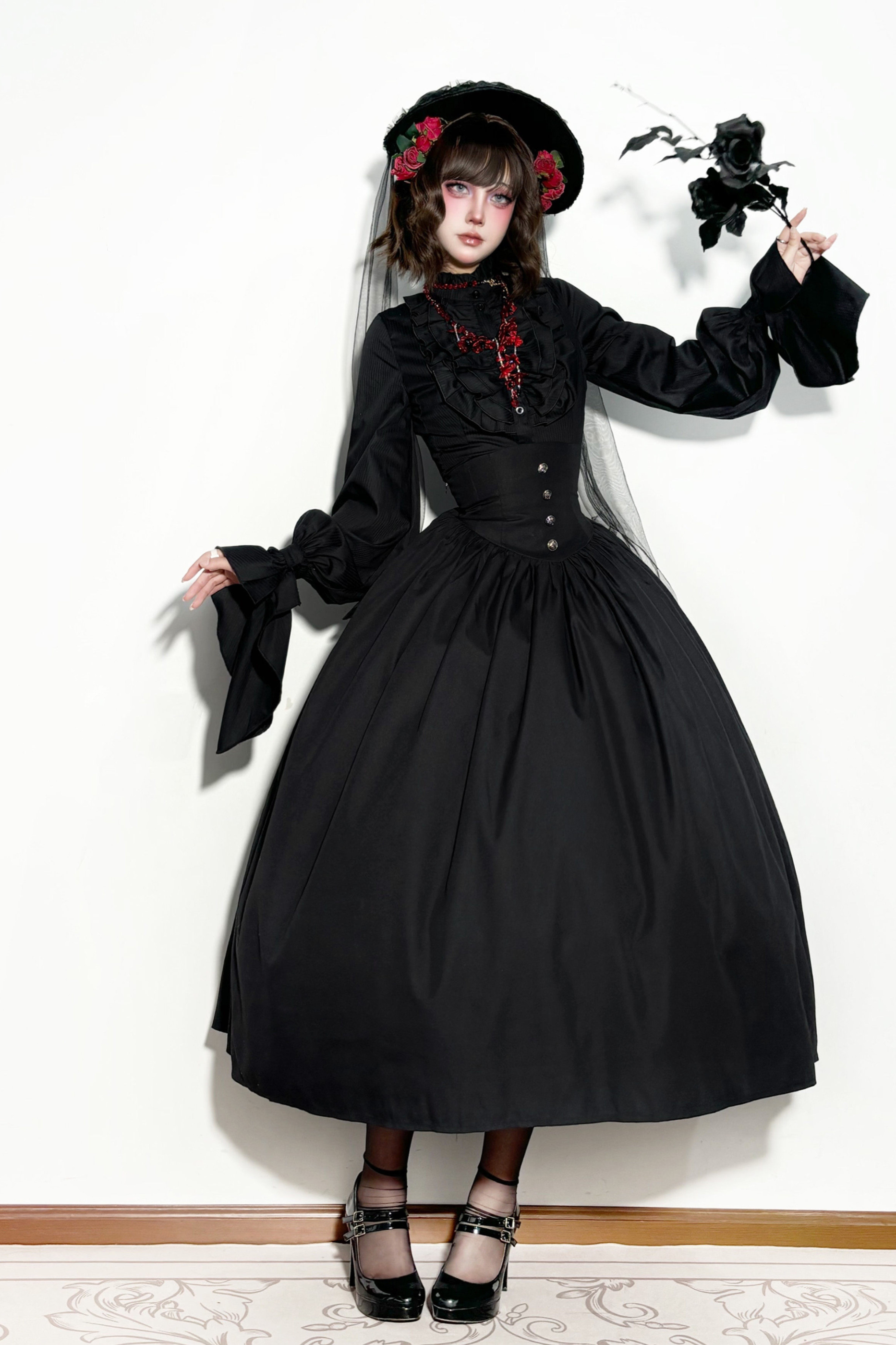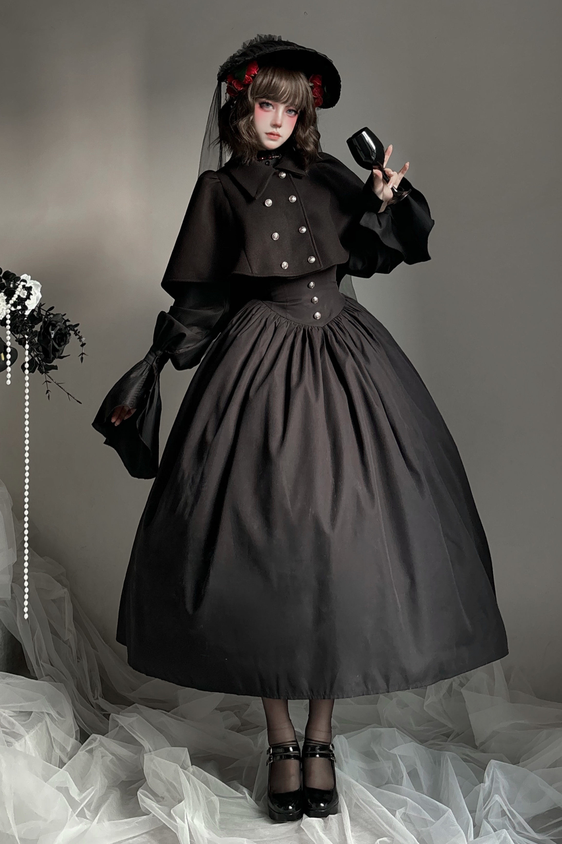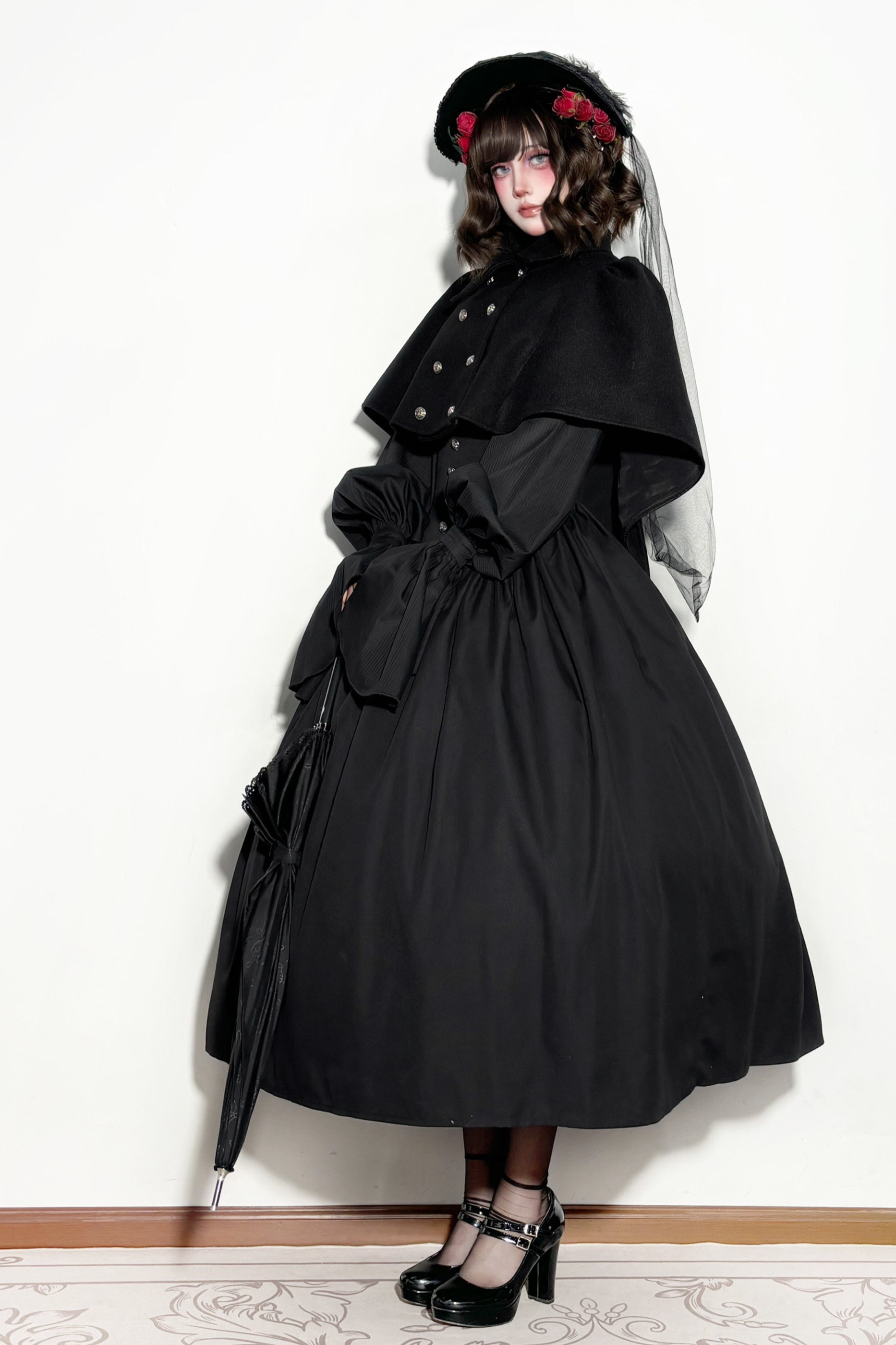 ゴシックロリータケープ+シャツ+スカート+リボン+ボンネット