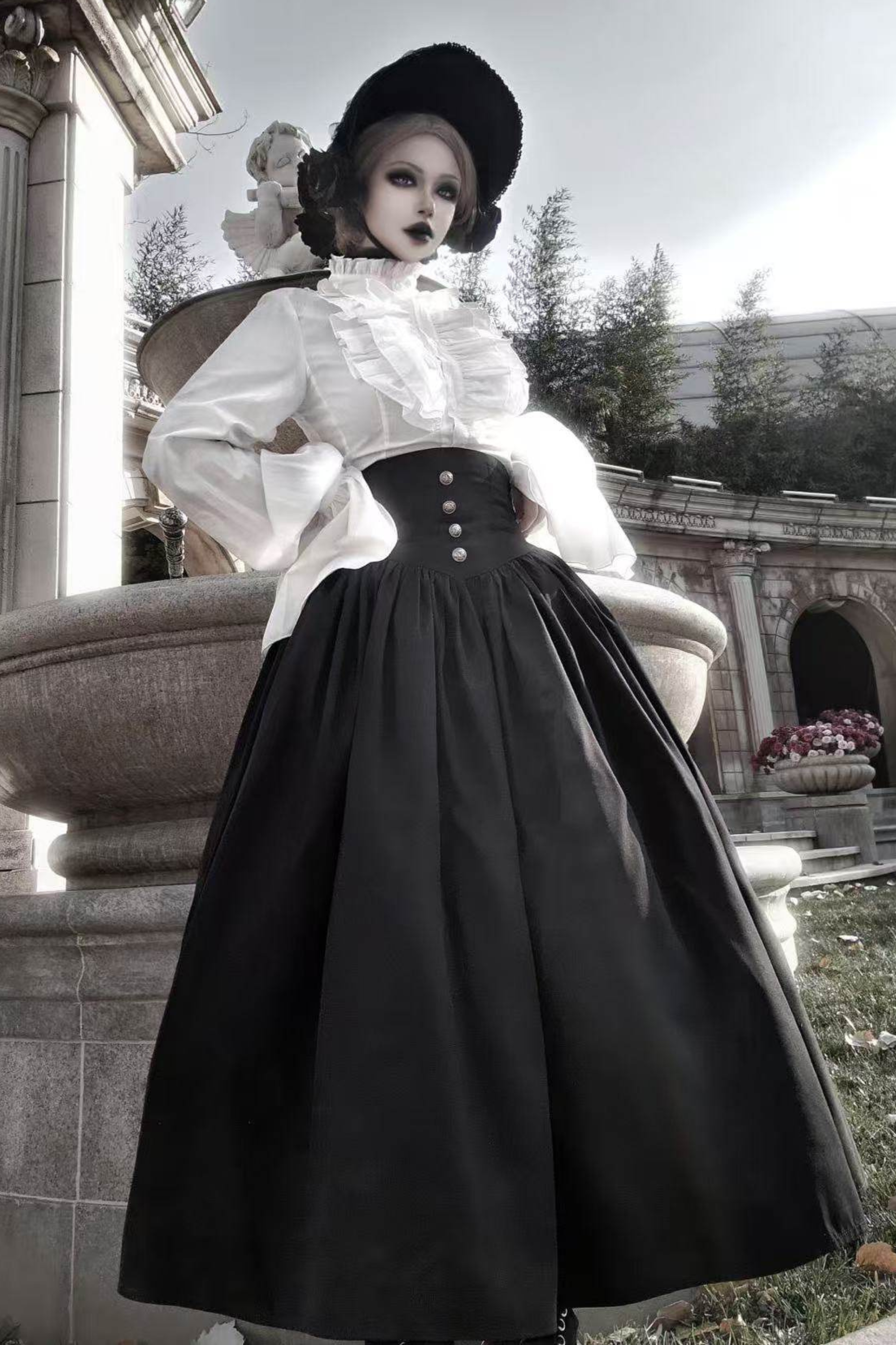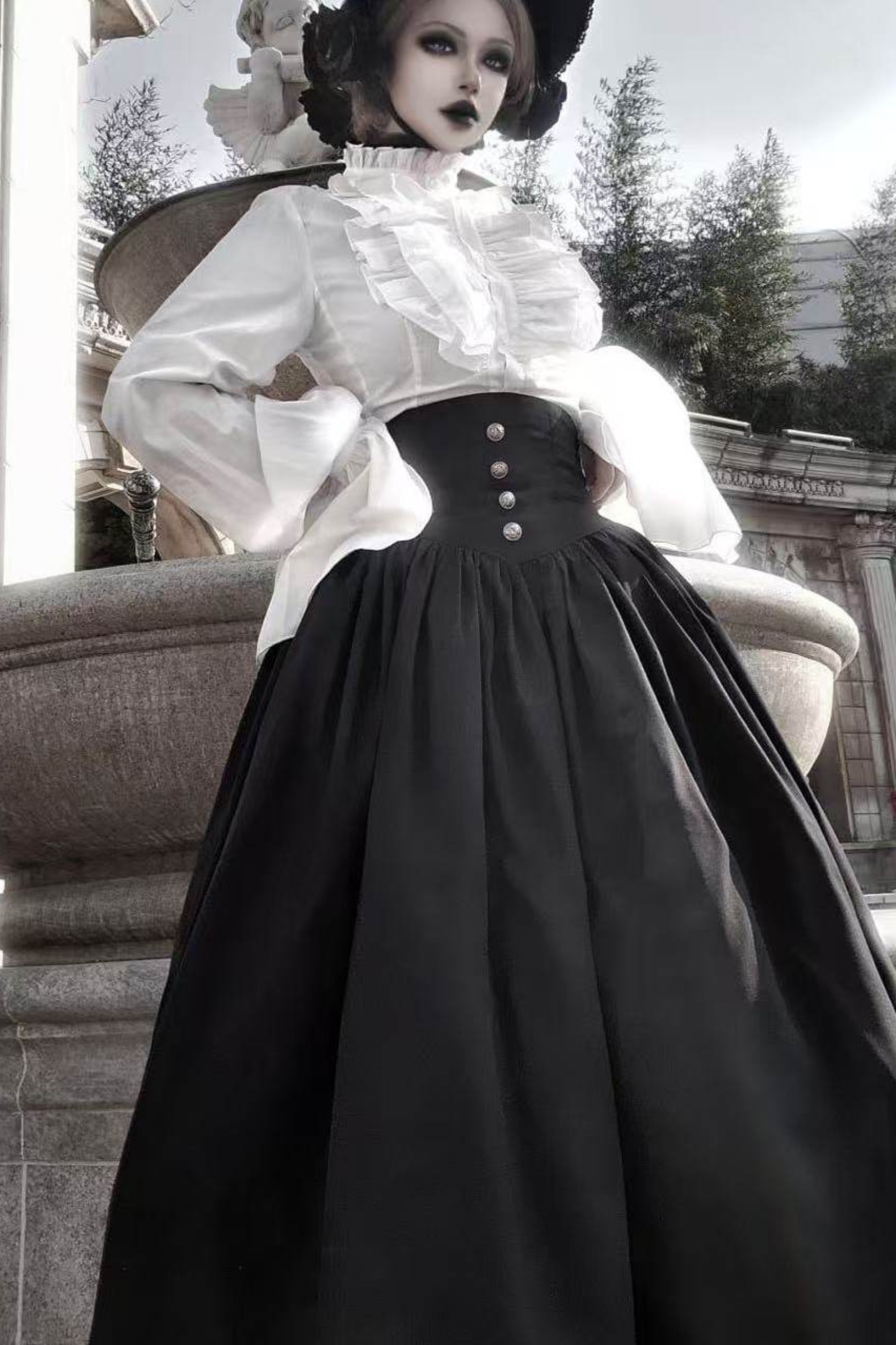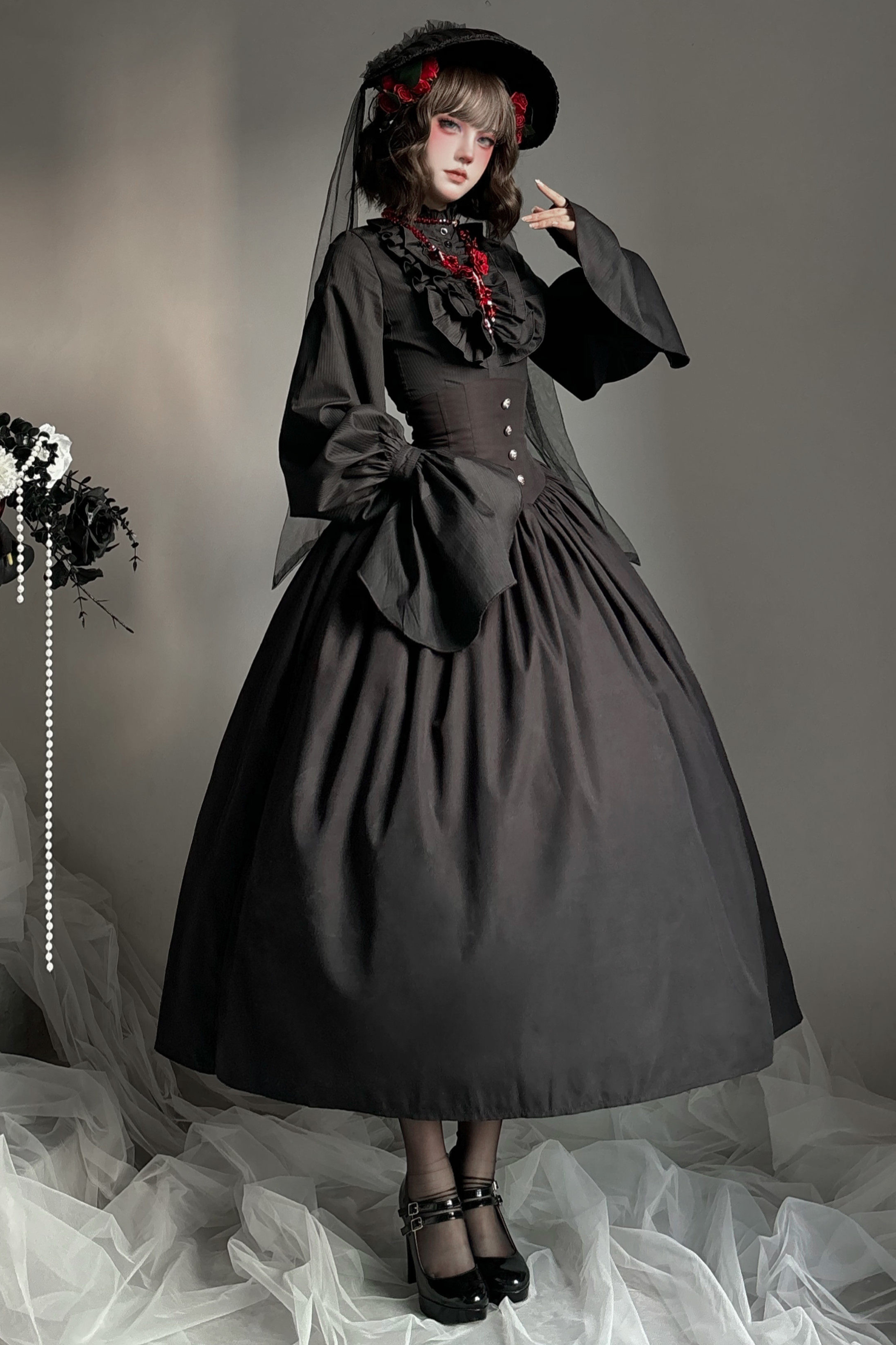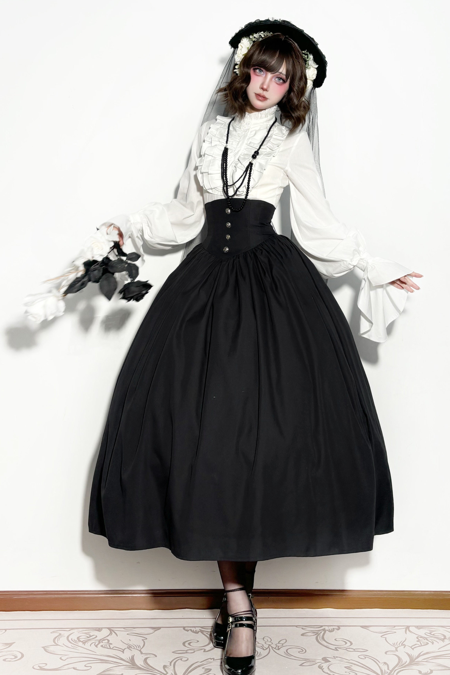 ゴシックロリータケープ+シャツ+スカート+リボン+ボンネット
