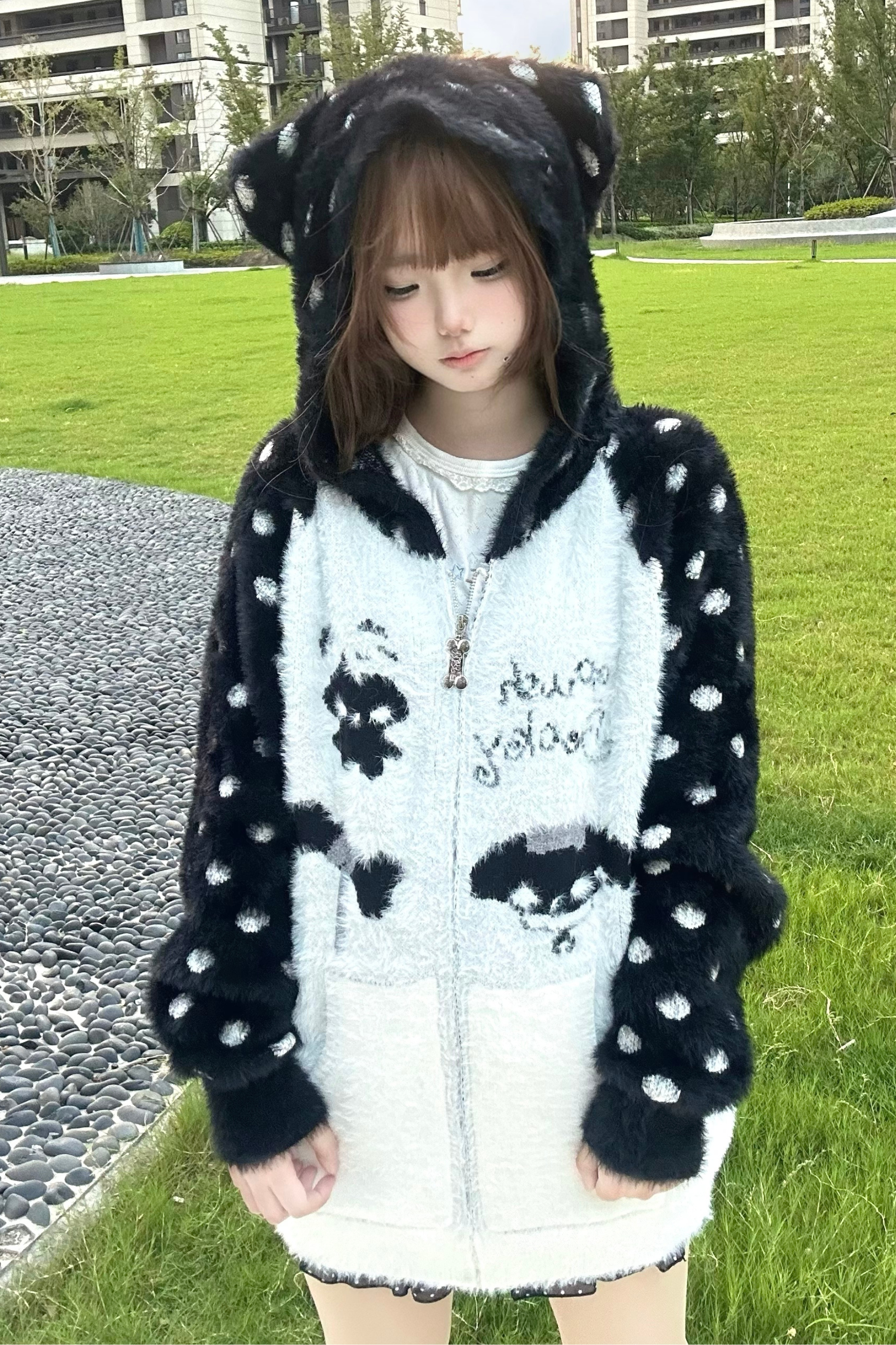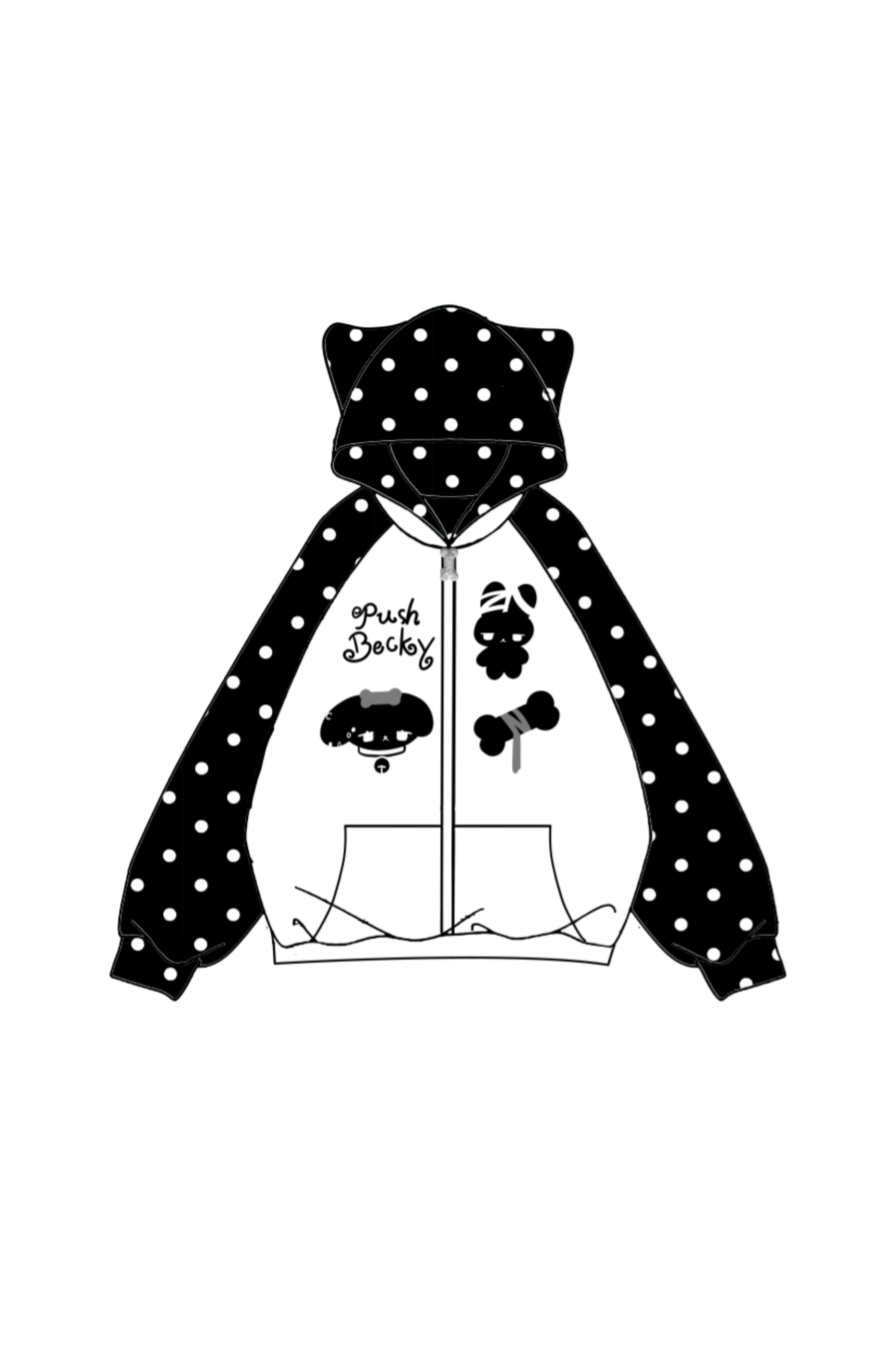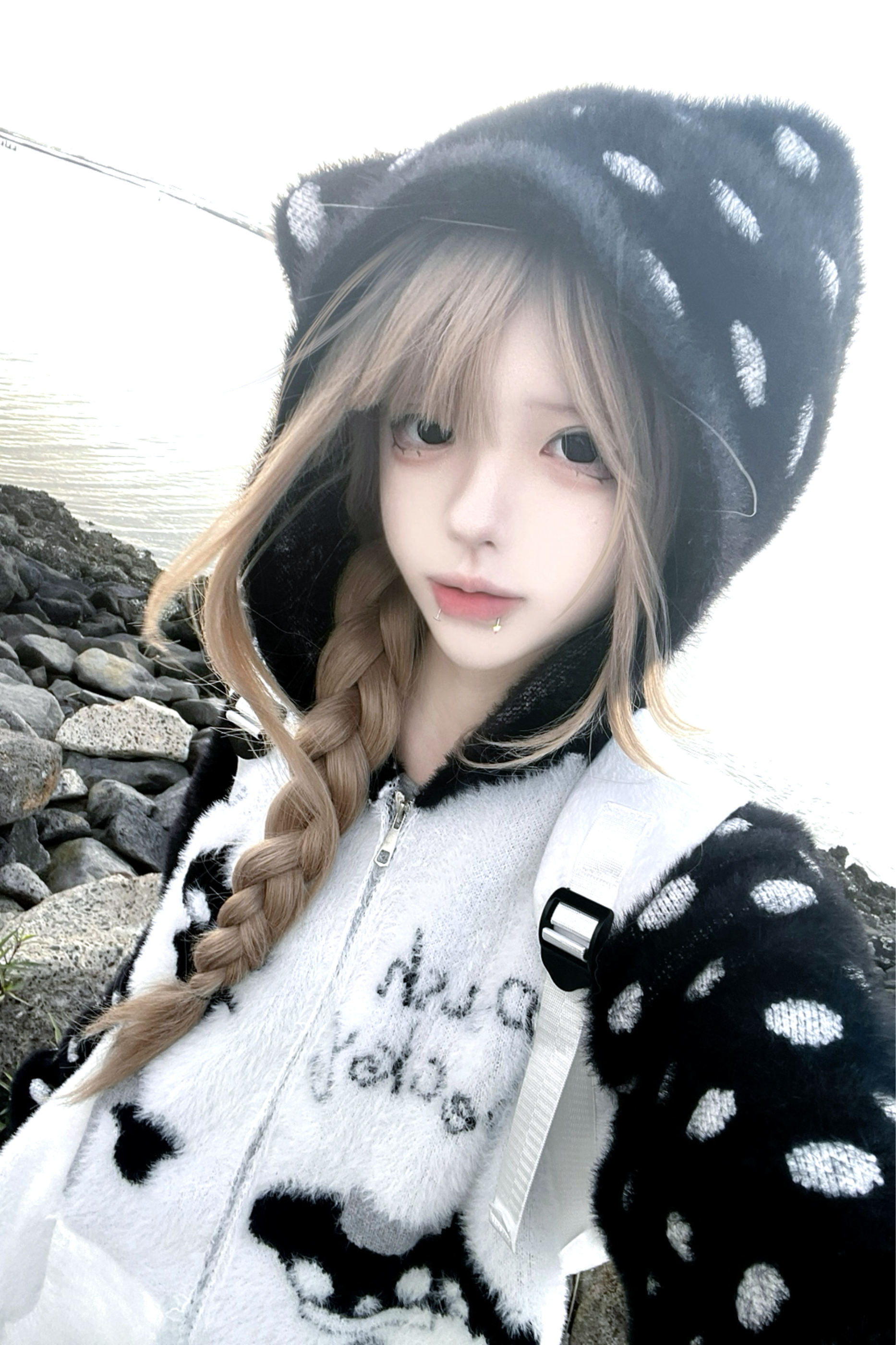 ❤キャットイヤーフードドットデザインニットパーカー❤
