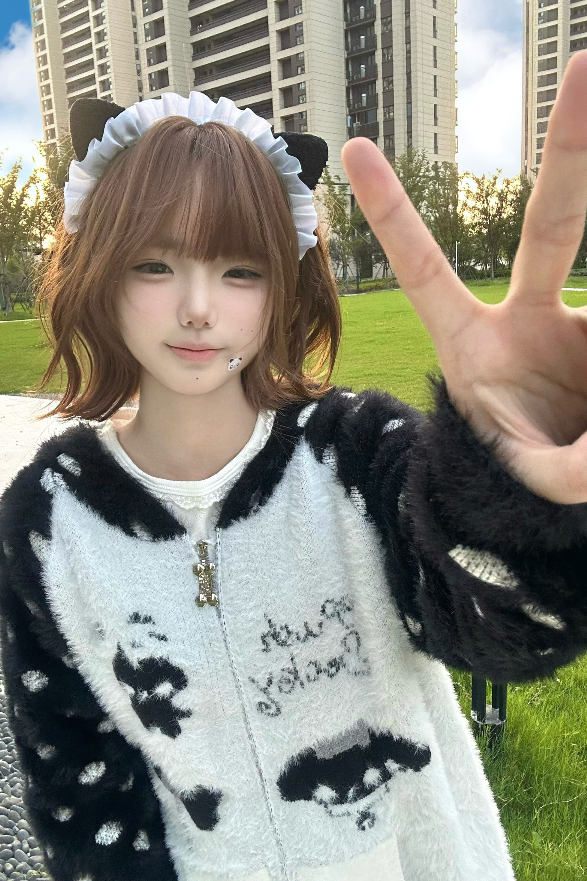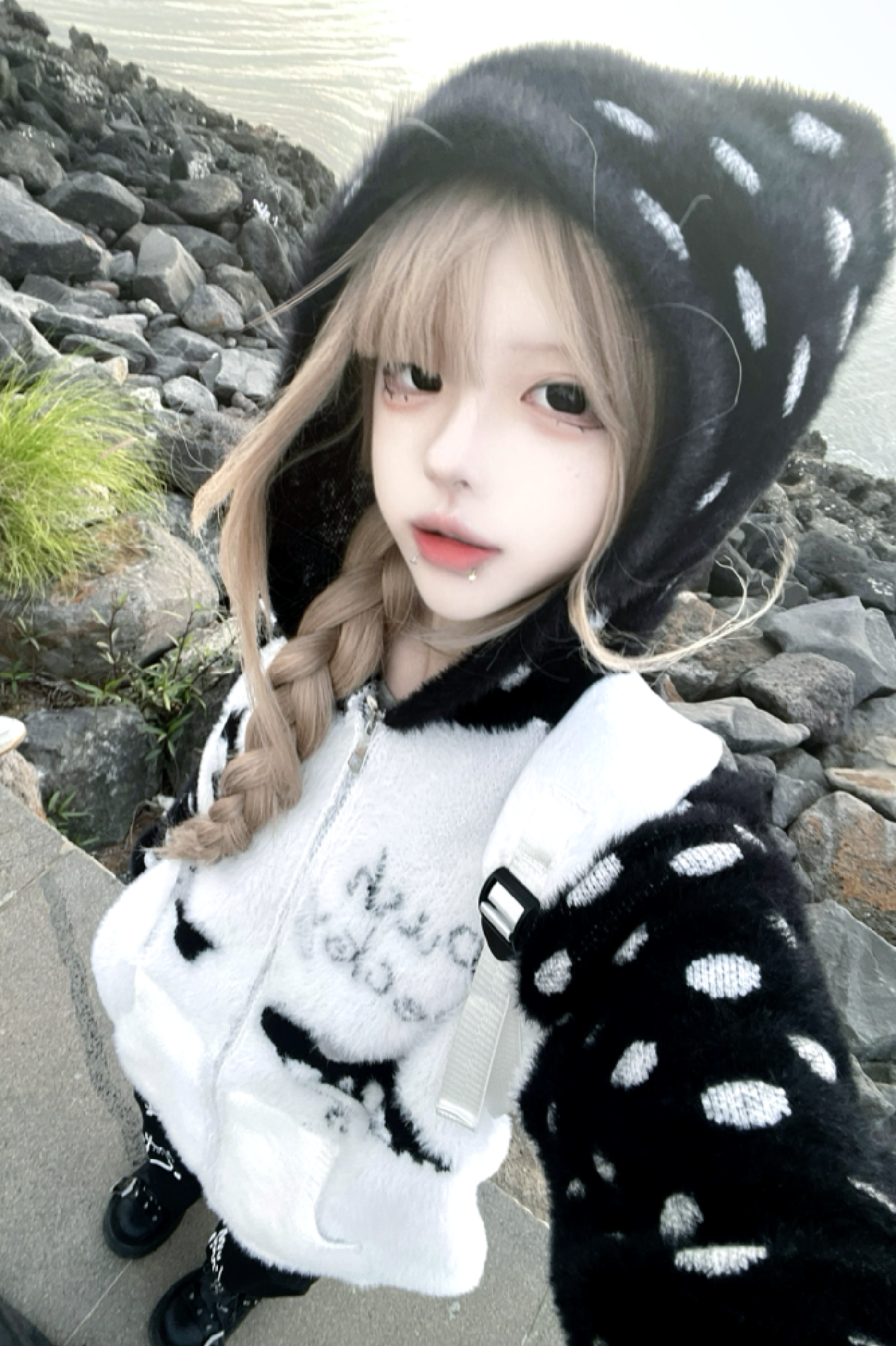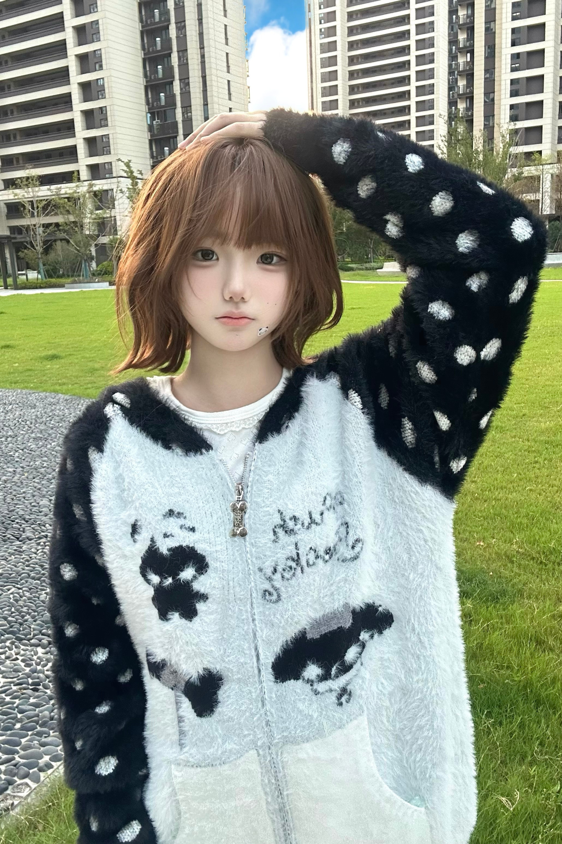 ❤キャットイヤーフードドットデザインニットパーカー❤