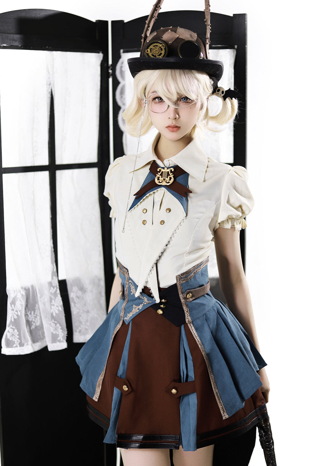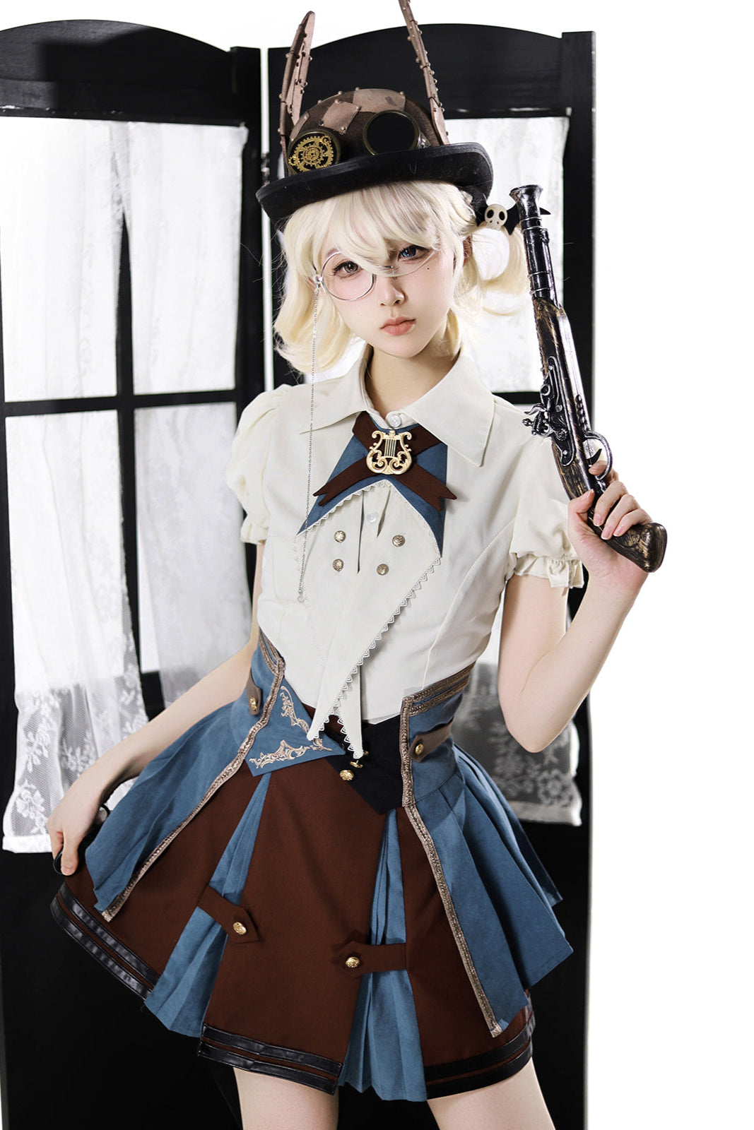 【予約商品】英国風カレッジシャツ+スカート+ベルト