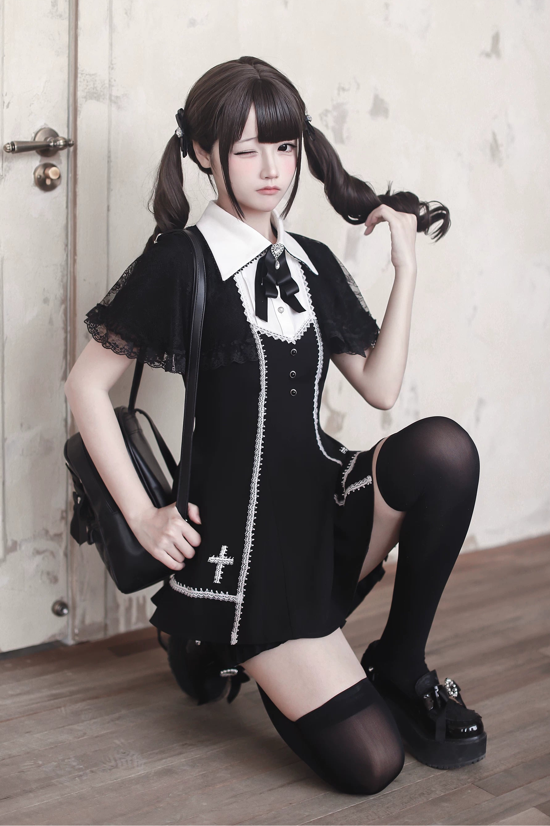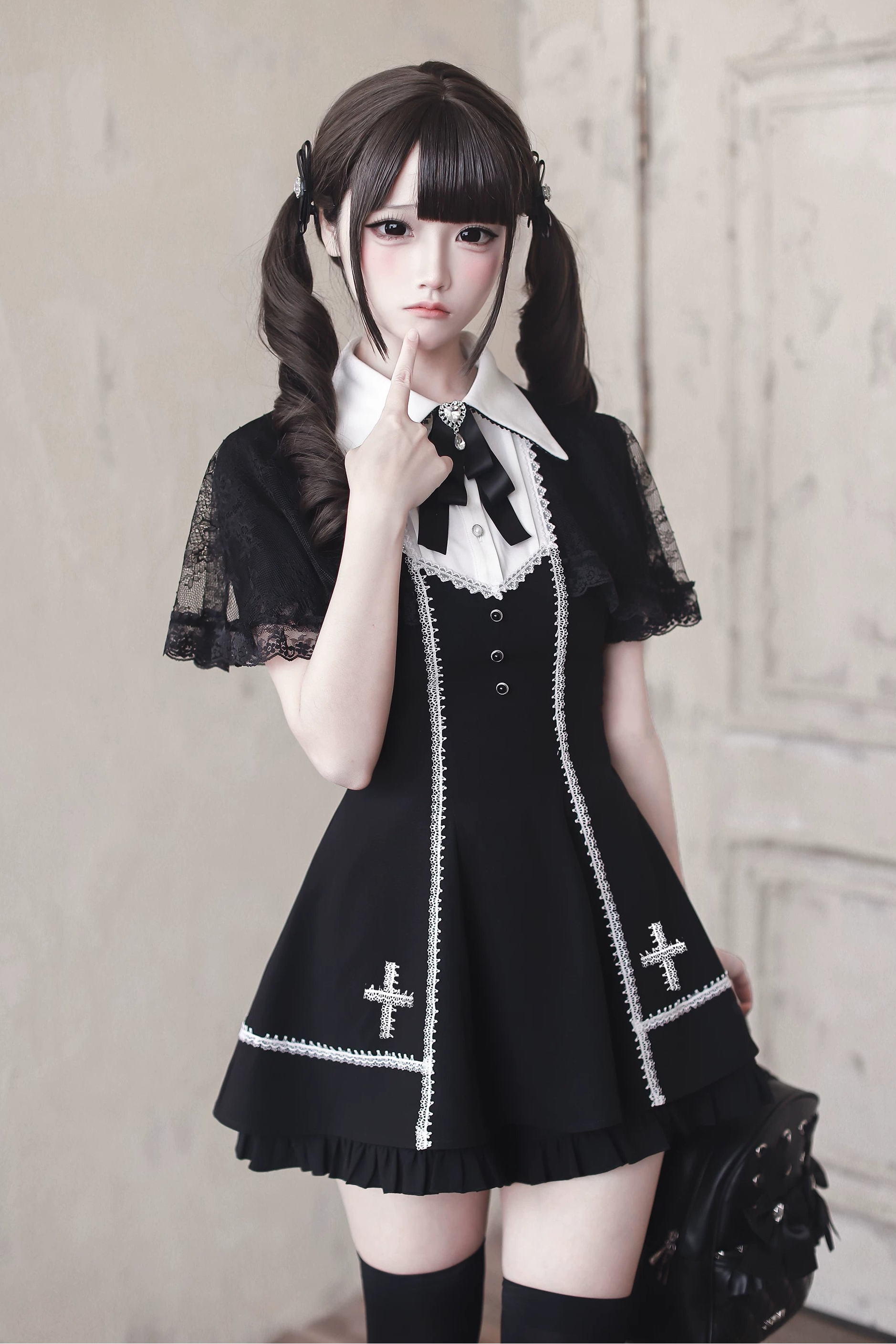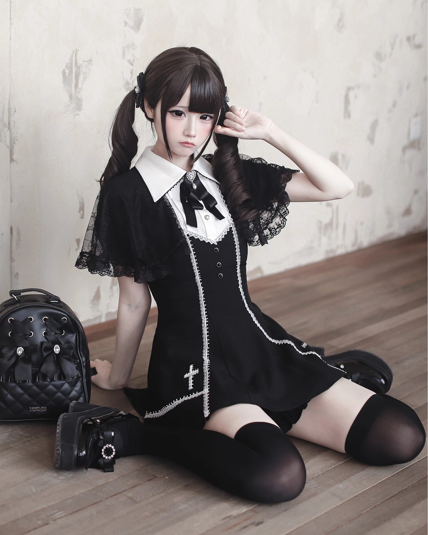 ❤︎【4月29日予約締切】ブラックゴシックケープスリーブクロスディテールリボンカラードレスセットアップ❤︎                                                ⚠️人気商品のためお届けに2ヶ月ほどかかってしまう場合がございます