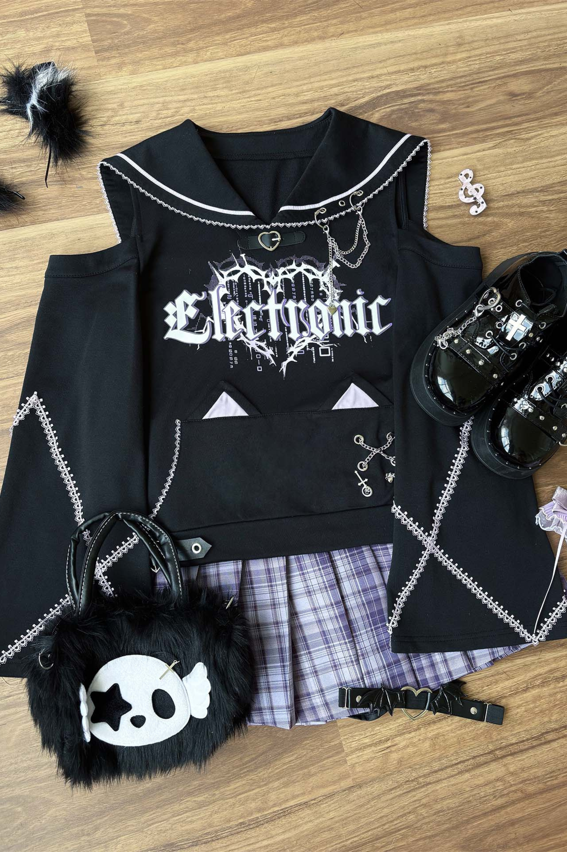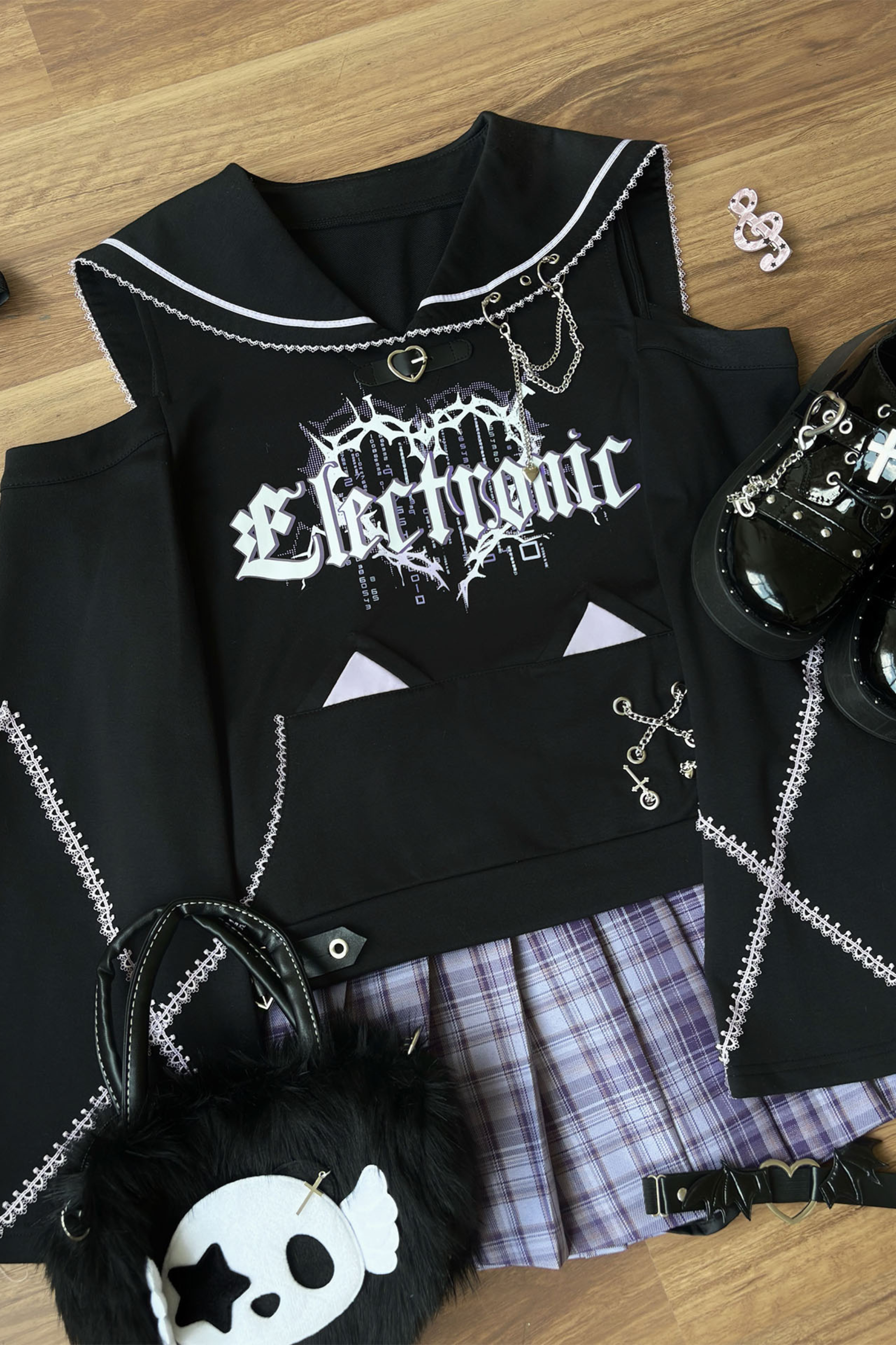 ❤サブカルチャーセーラーオフショルダールーズスウェット❤