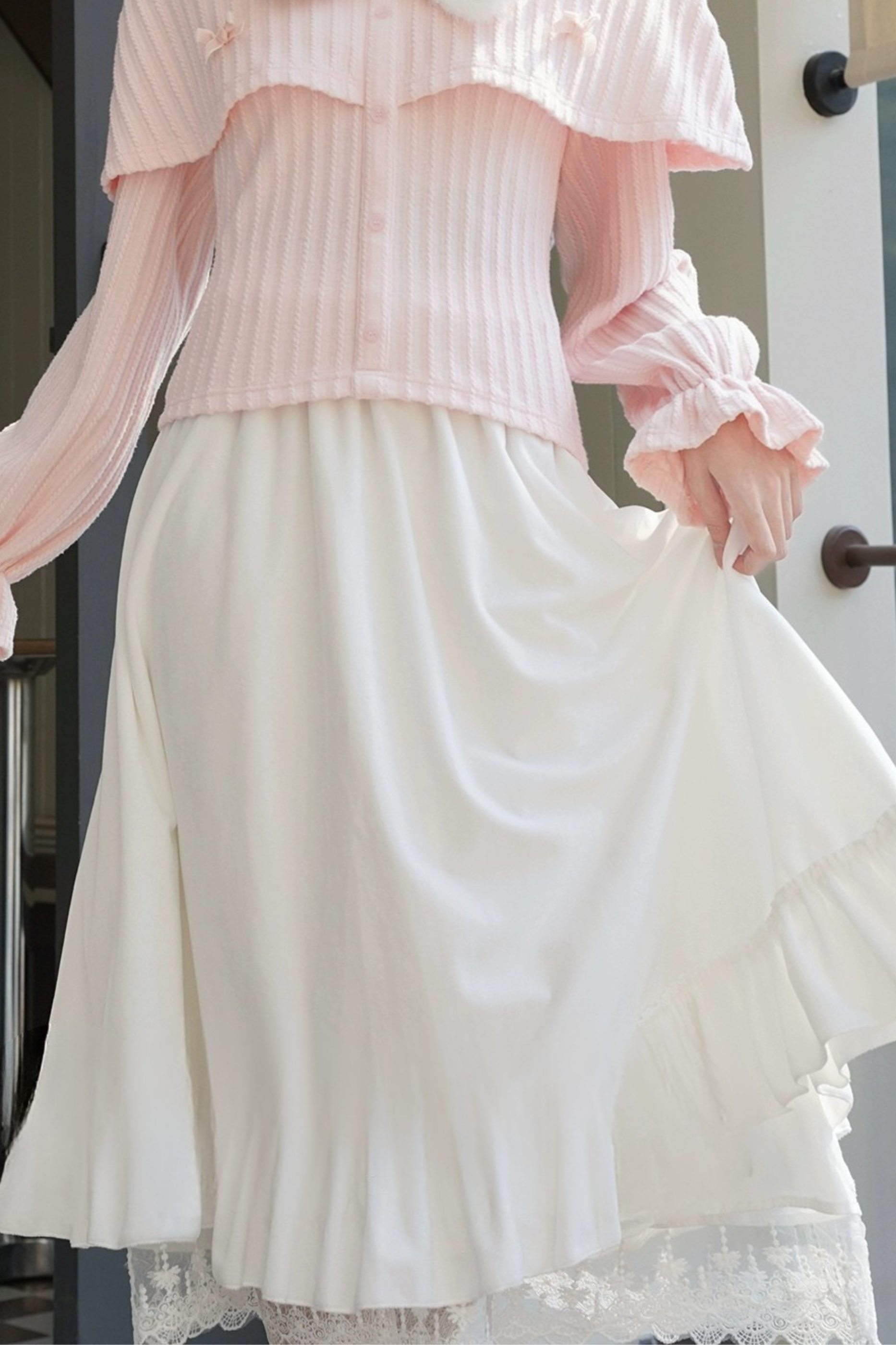 ルーズランタンスリーブニットトップス+ロングスカート+ショートスカート
