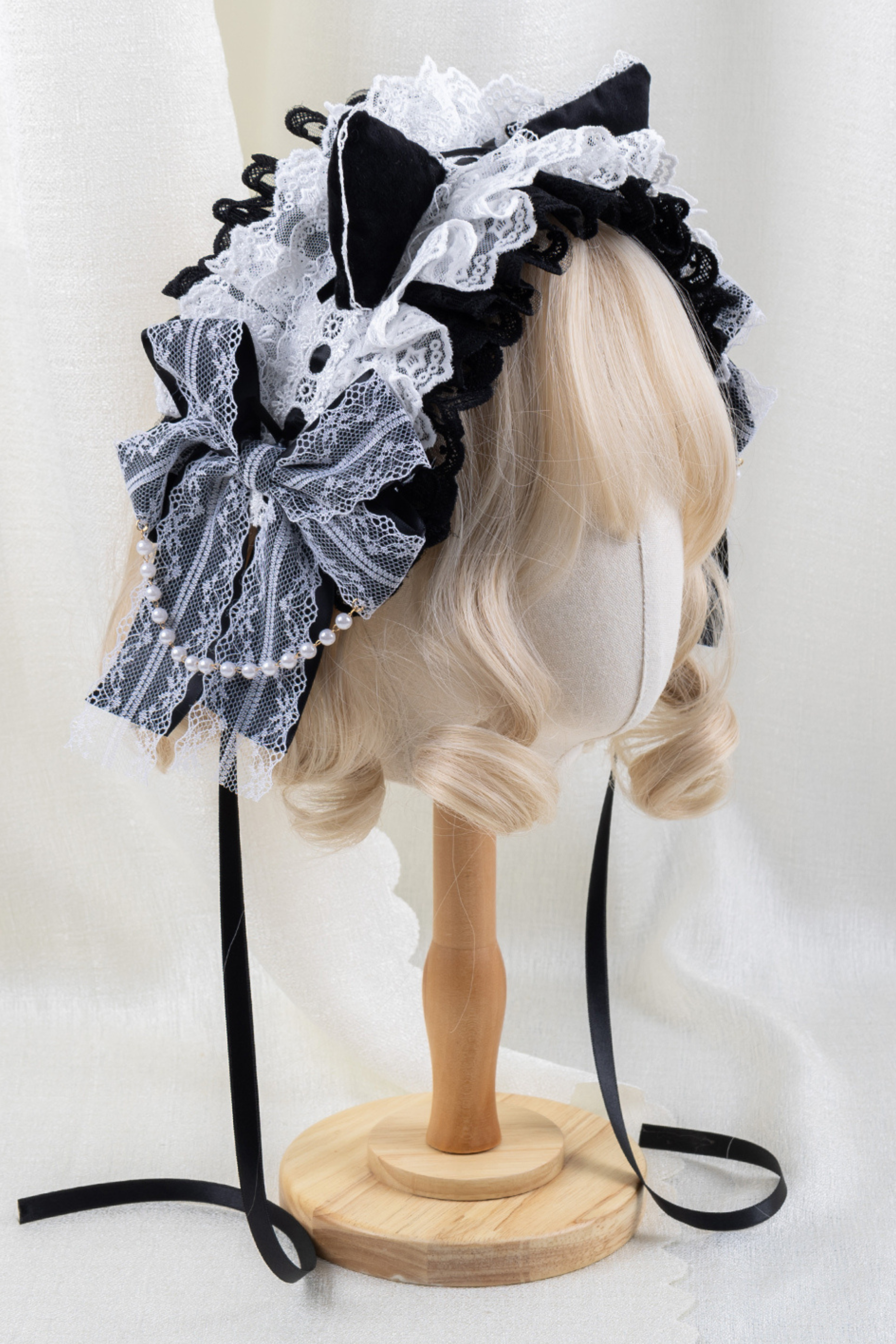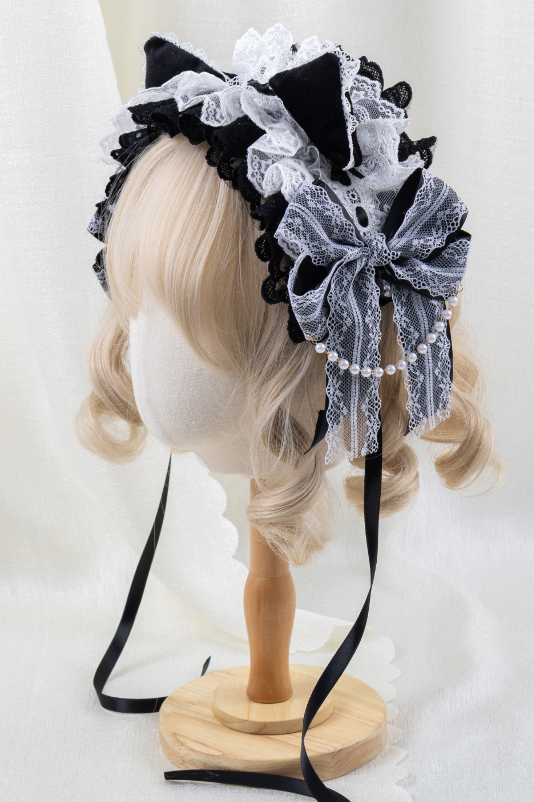 エレガントロリータボンネット+ヘアバンド+リボンクリップ+ハットクリップ+スリーブ