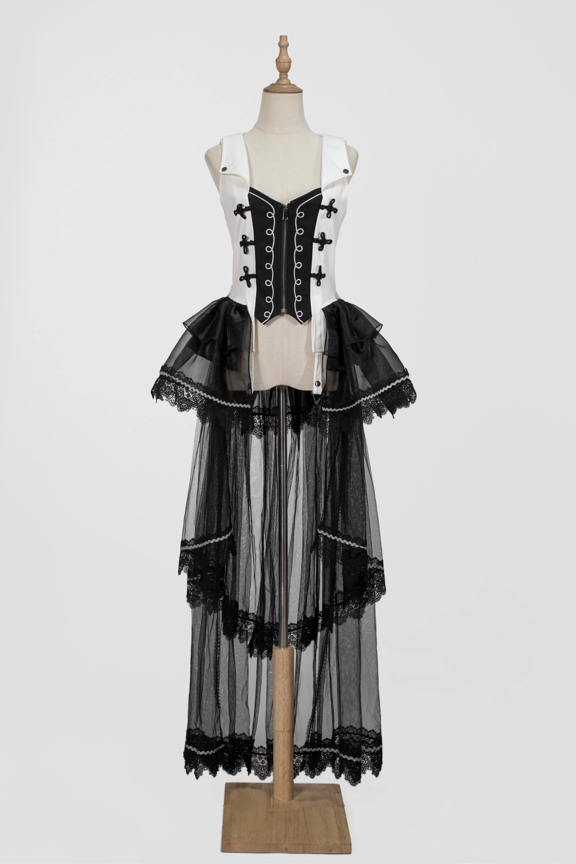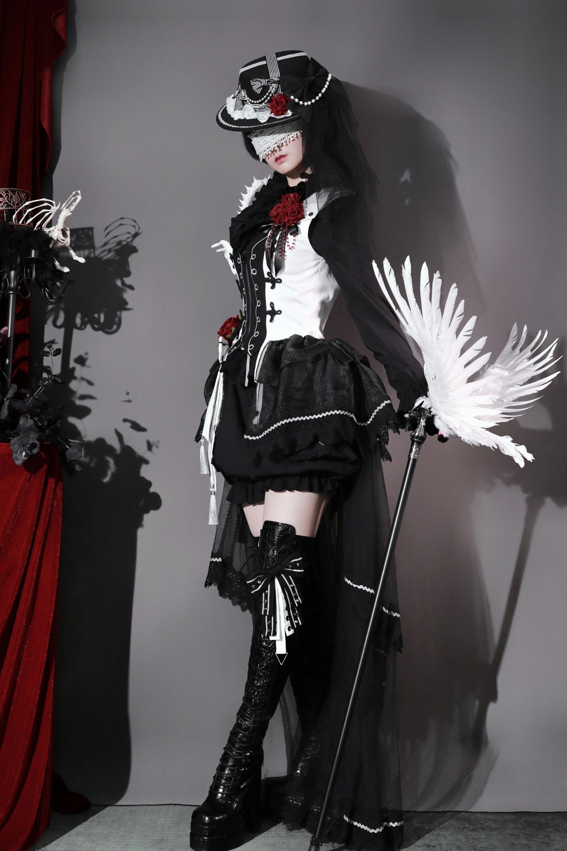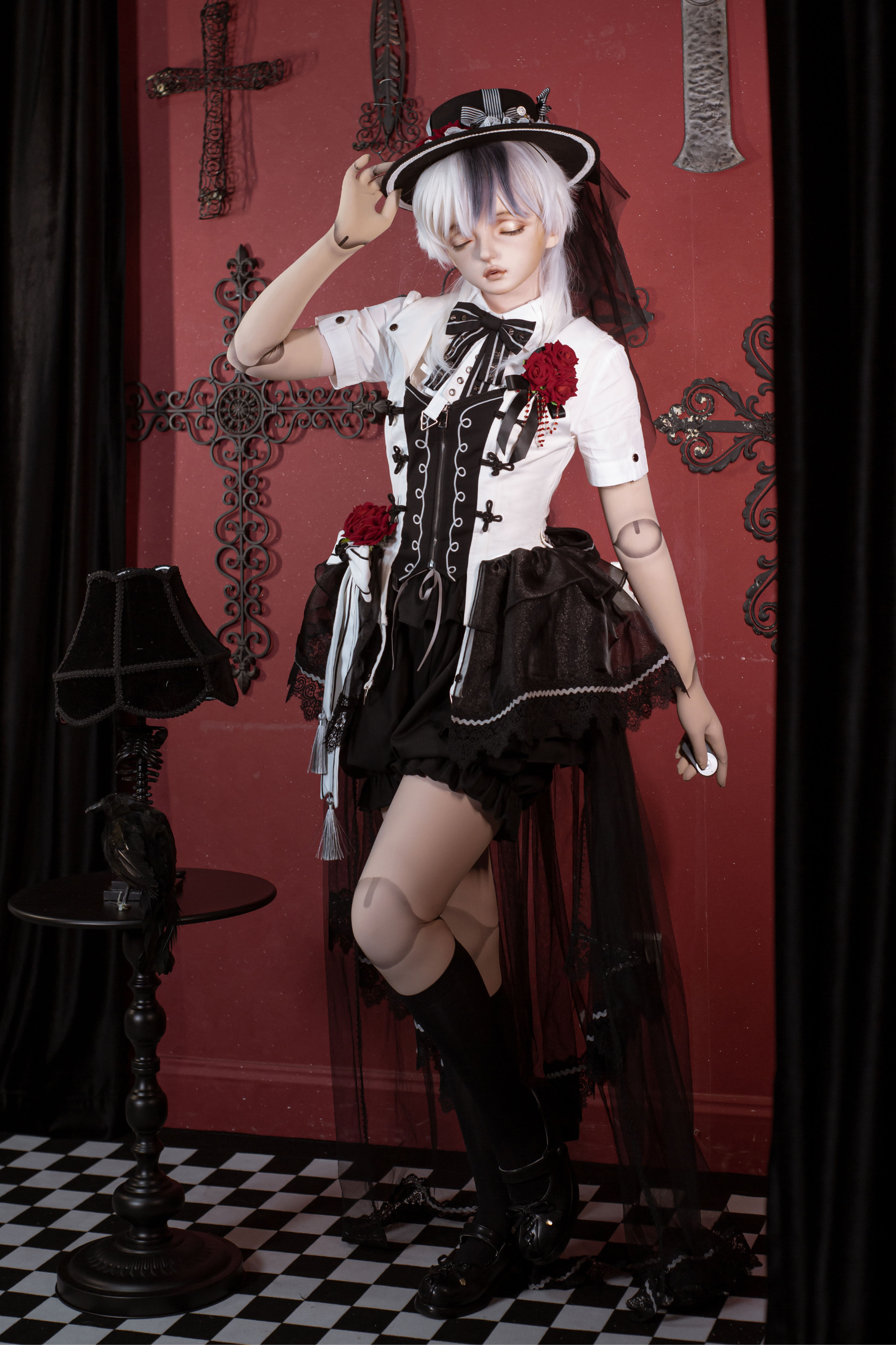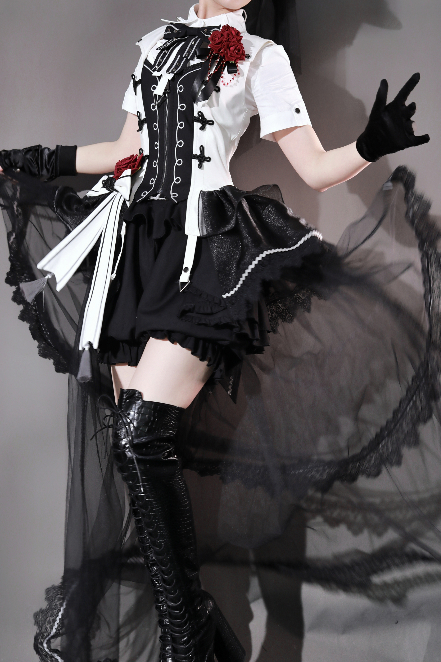 半袖シャツ.ベスト(トレーン付き).南瓜パンツ.シルクハット.ブローチ.コサージュ.ローズリボン1.リボン (黒)