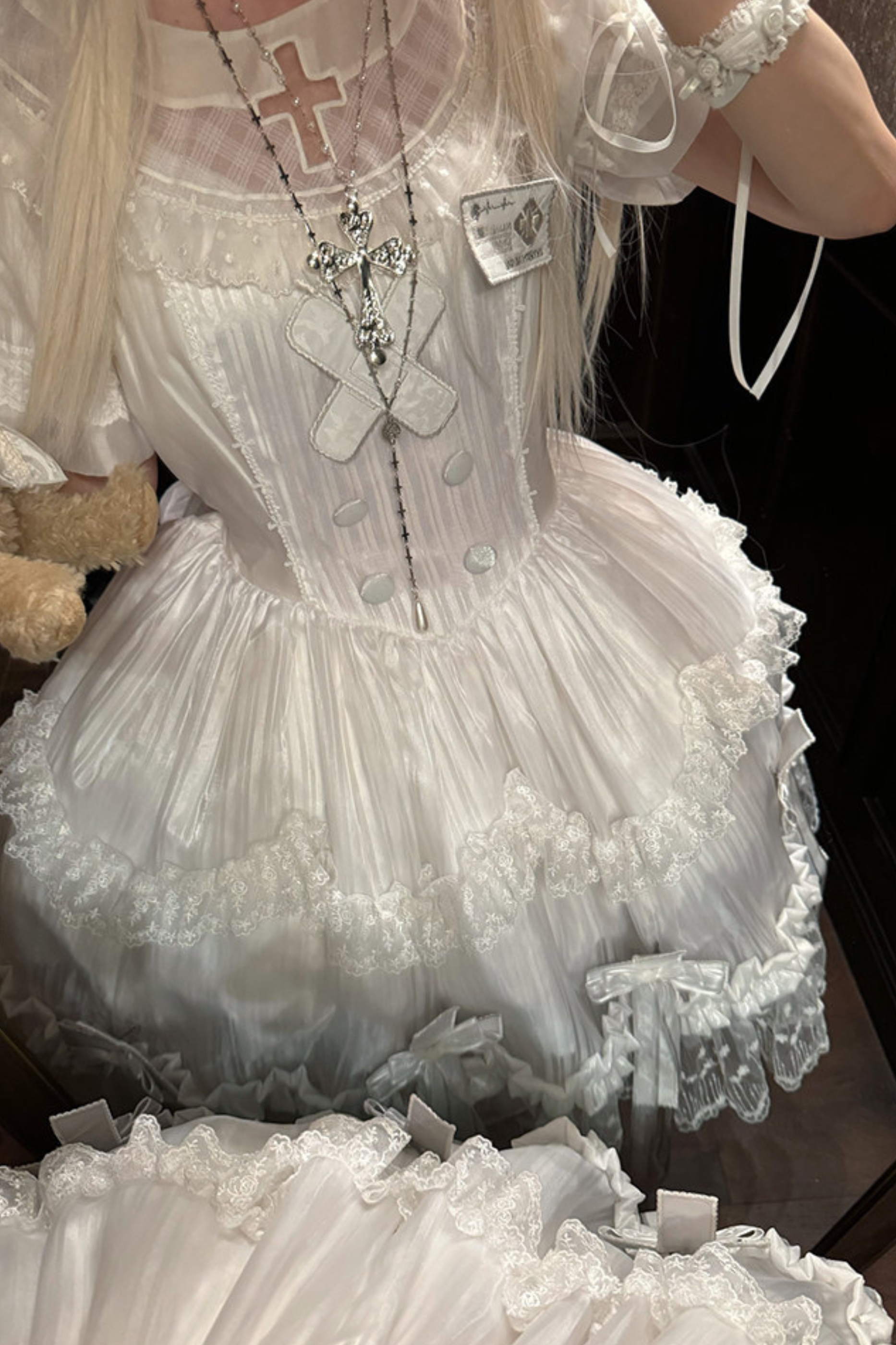| サイズ | バスト | ウエスト | 肩幅 | スカート丈 | 袖丈 | 袖口 |