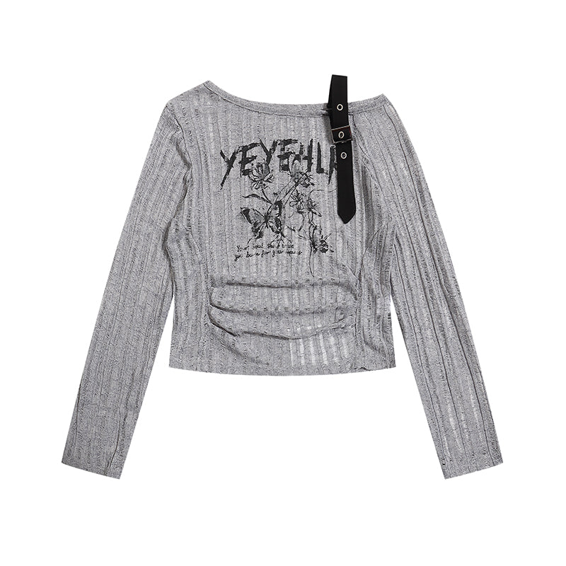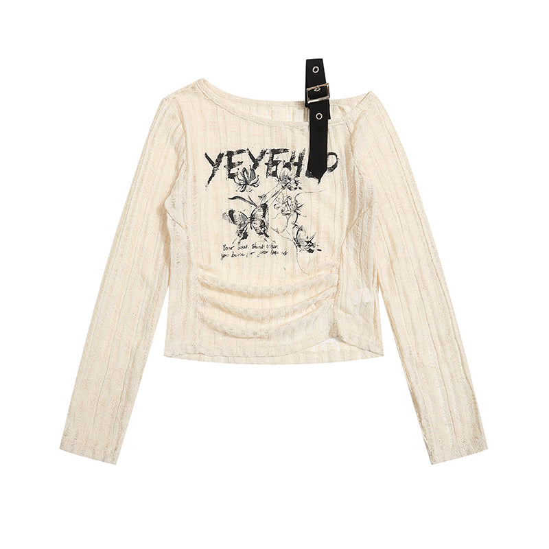 ワンショルダーボウニットトップ