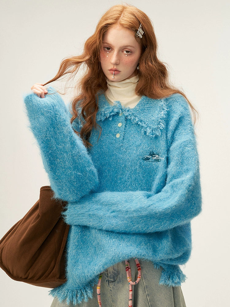 ❤︎ レトロタッセルミックスラインポロボタントップス❤︎