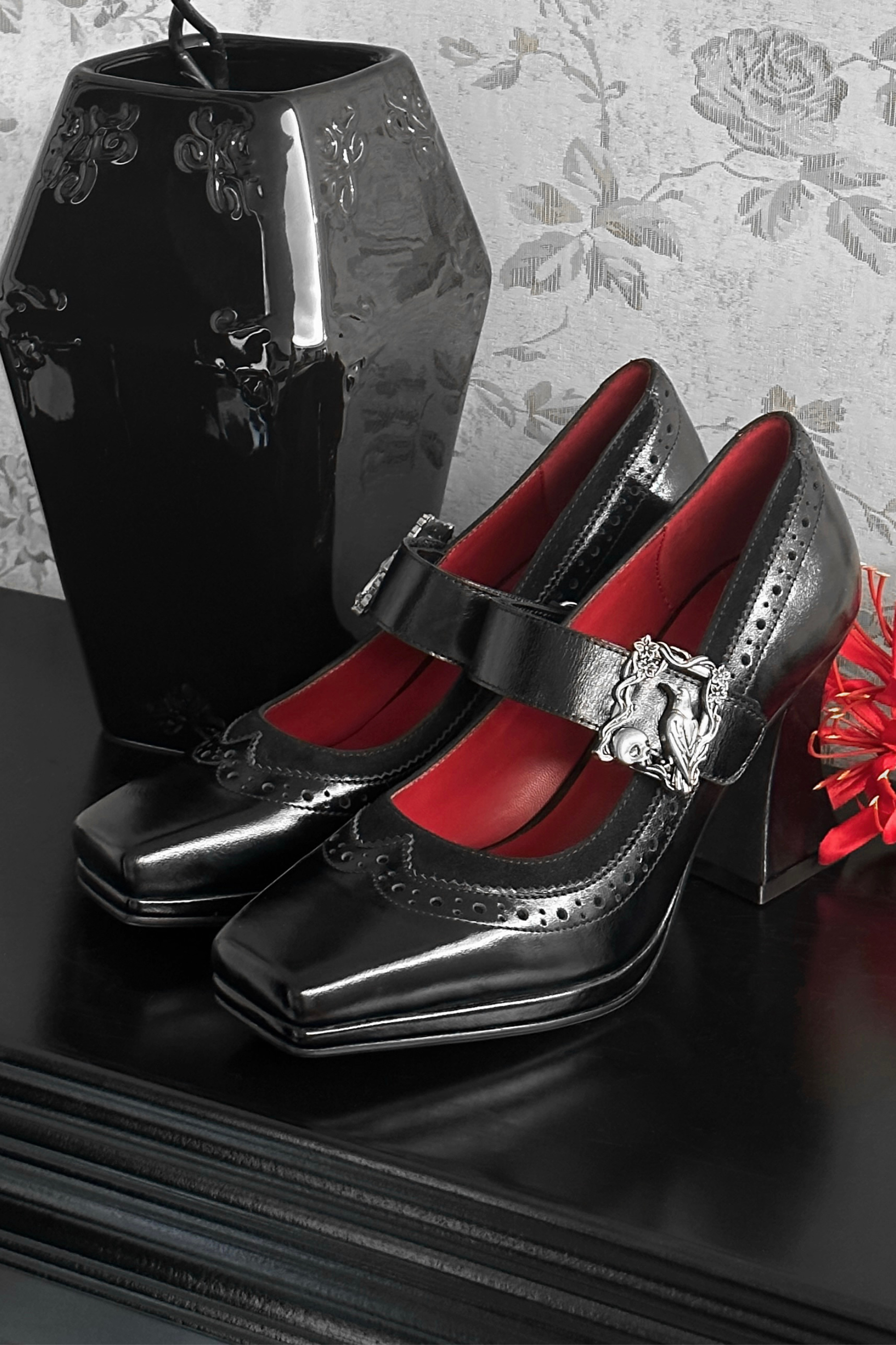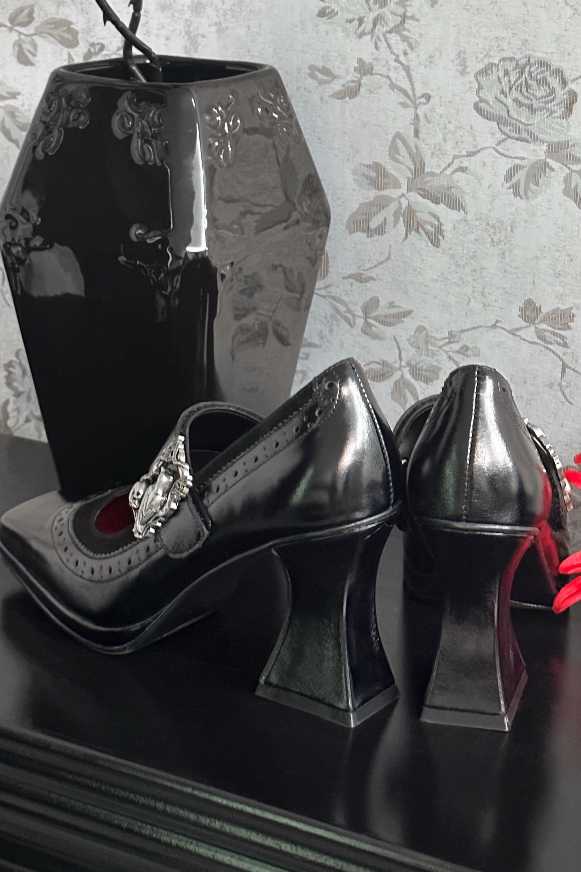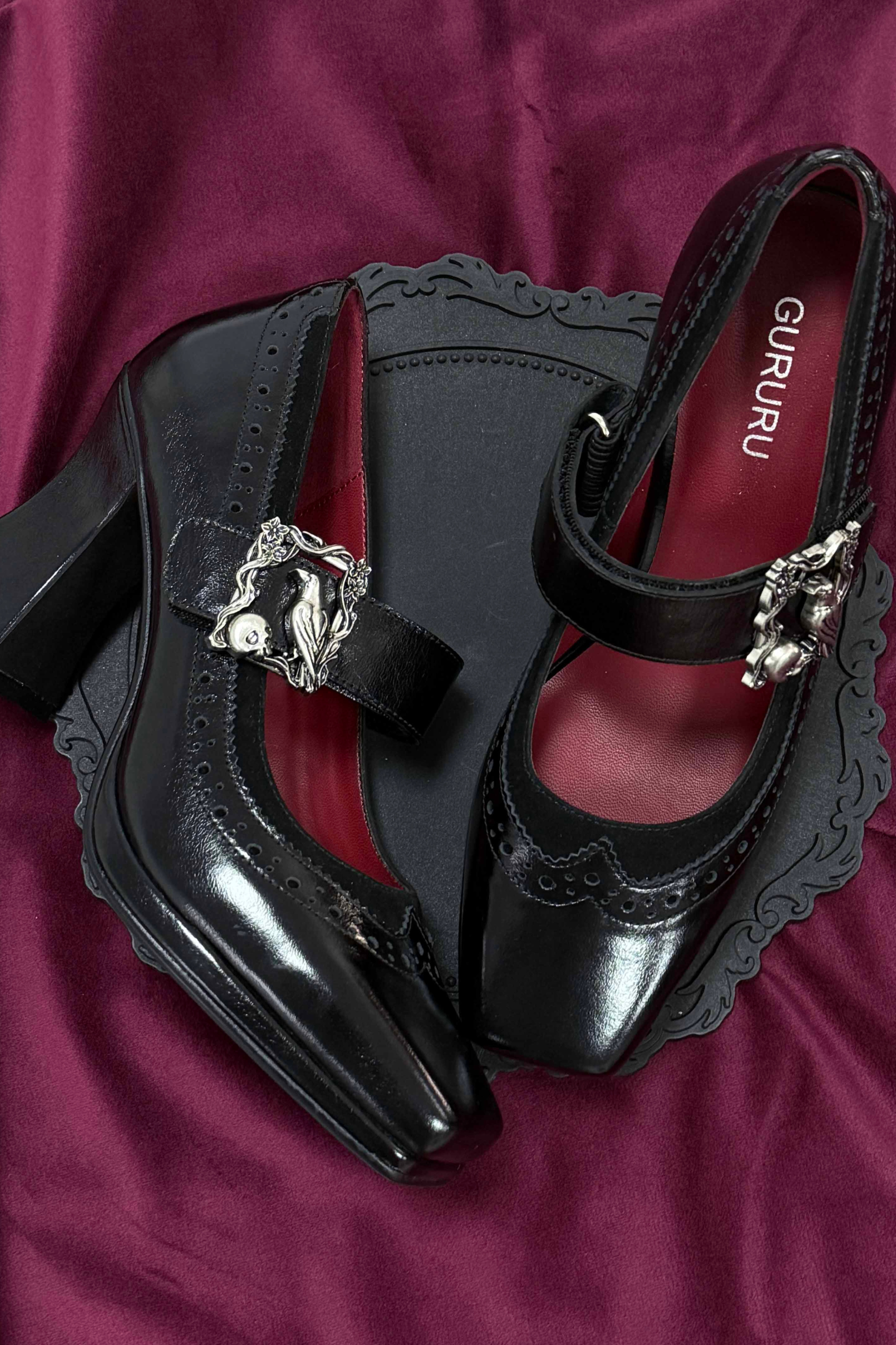 ❤ナイトレイヴンゴシックダークレザーパンプス❤