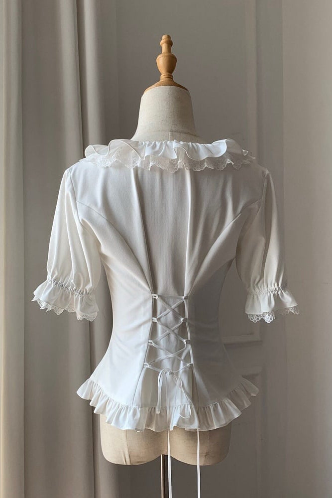 ❤︎【4月14日予約締切】ホワイトフリルパフスリーブロリータシャツ❤︎ ⚠️人気商品のためお届けに3-4ヶ月ほどかかってしまう場合がございます