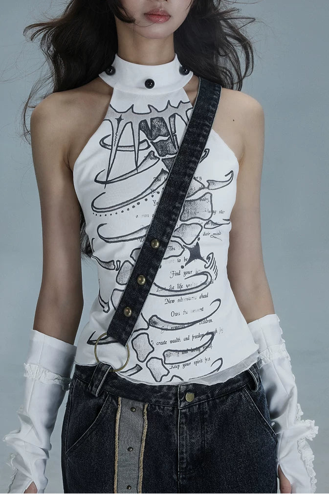 Y2Kノースリーブハイネックトップス