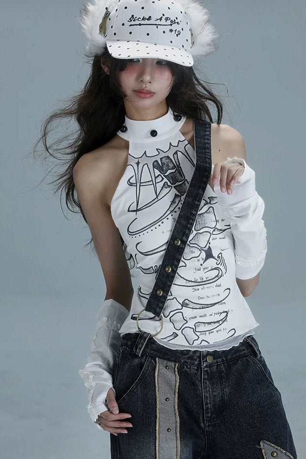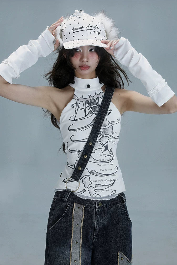 ❤Y2Kノースリーブハイネックトップス❤