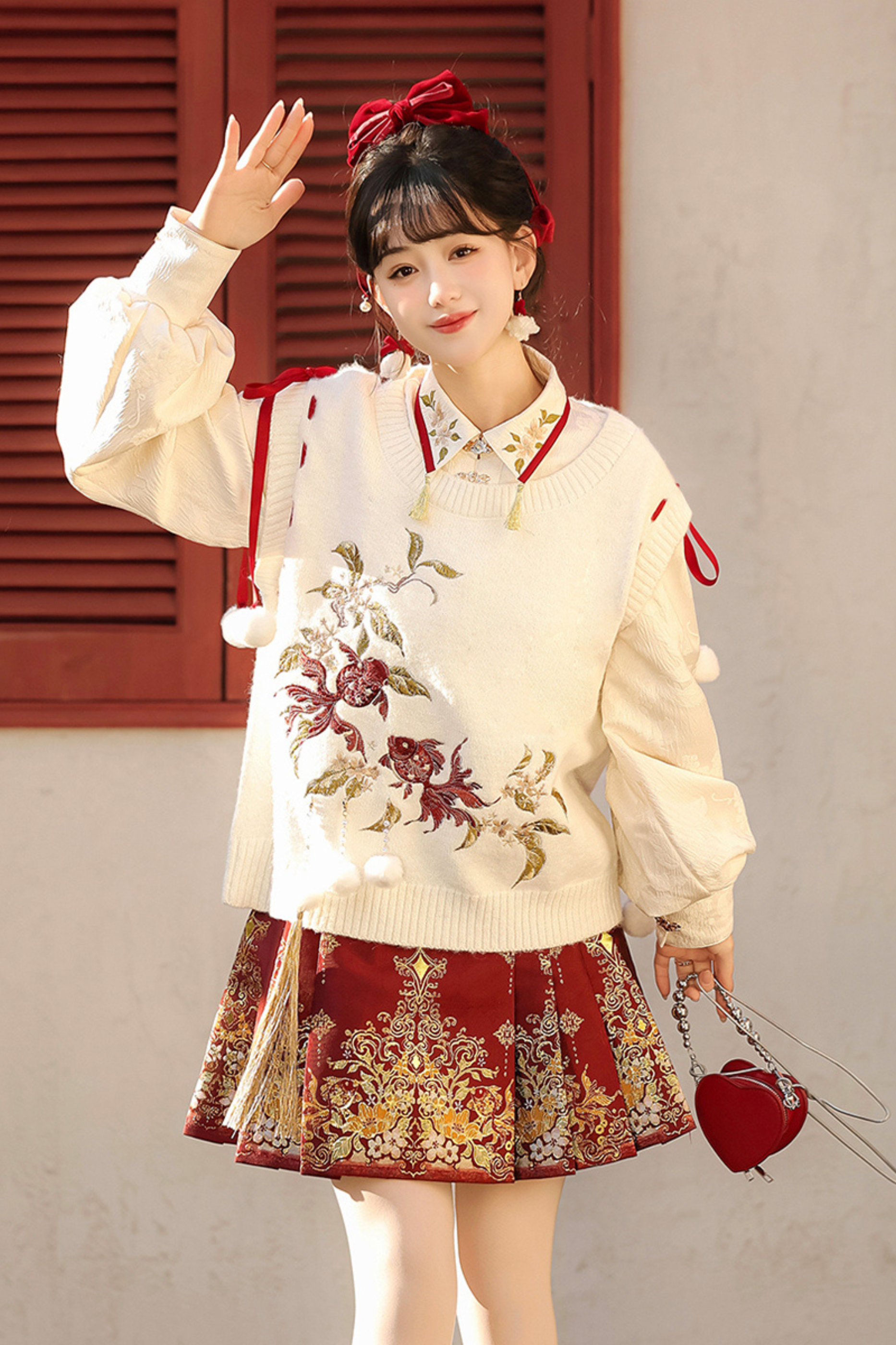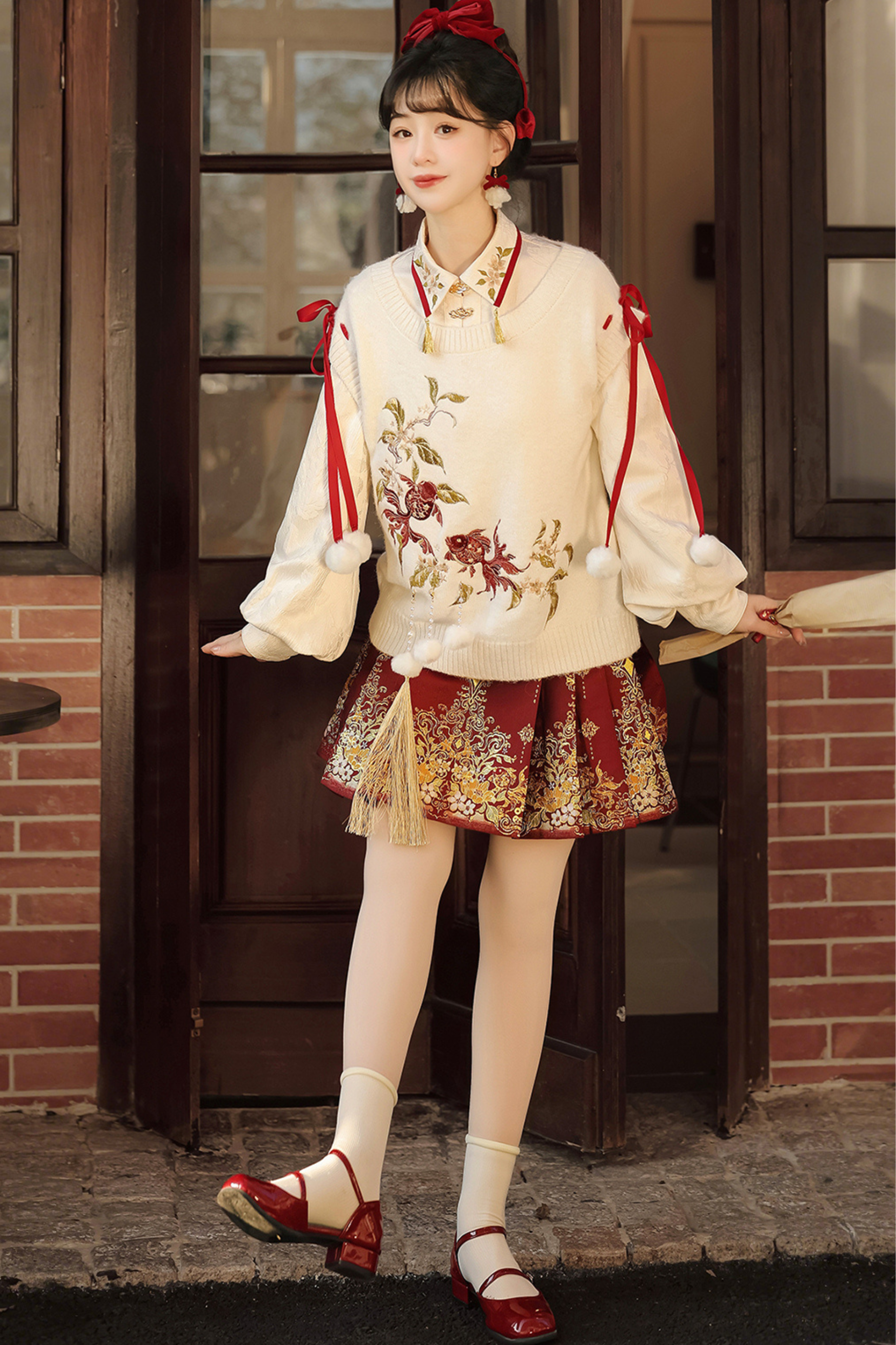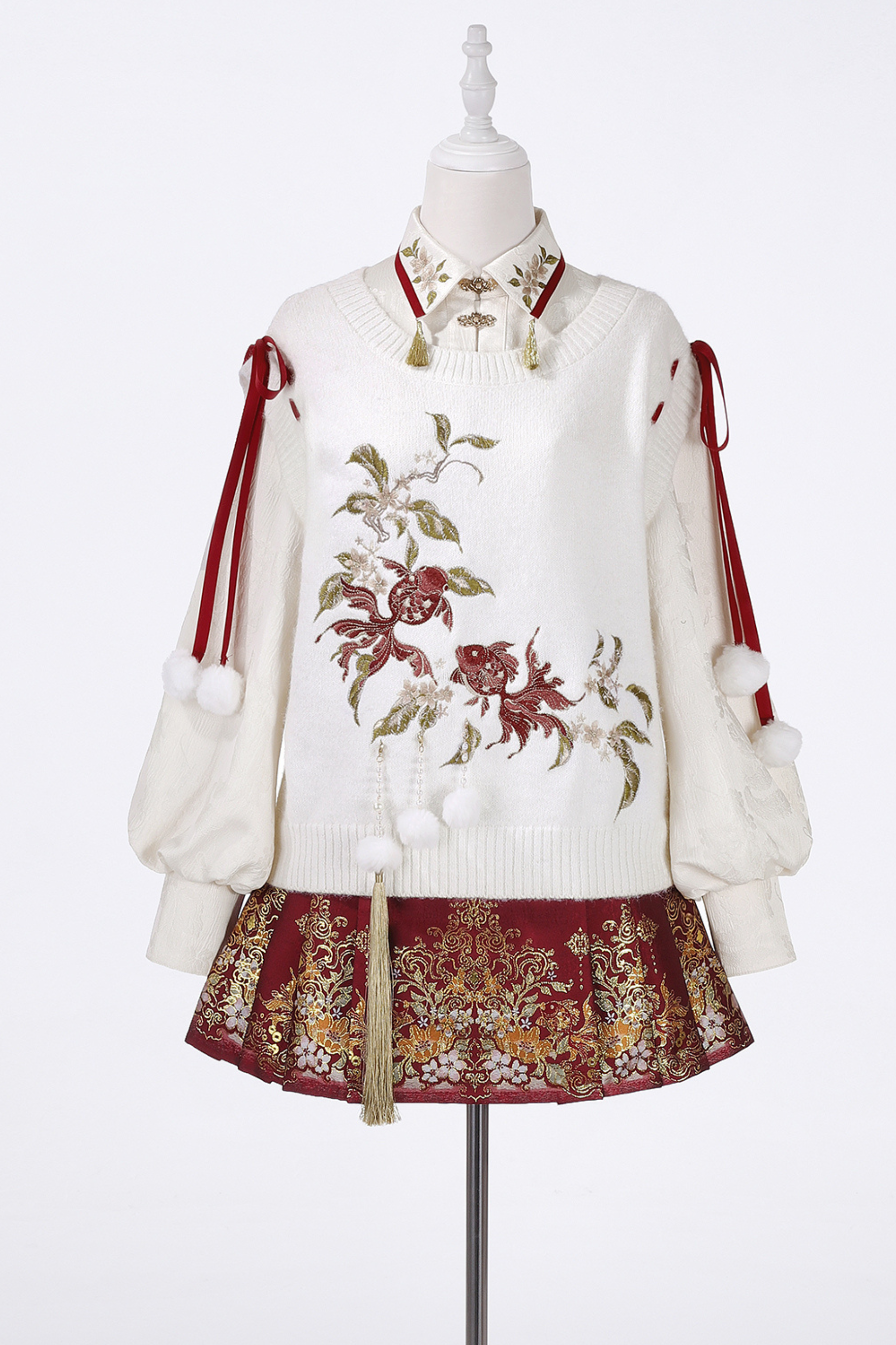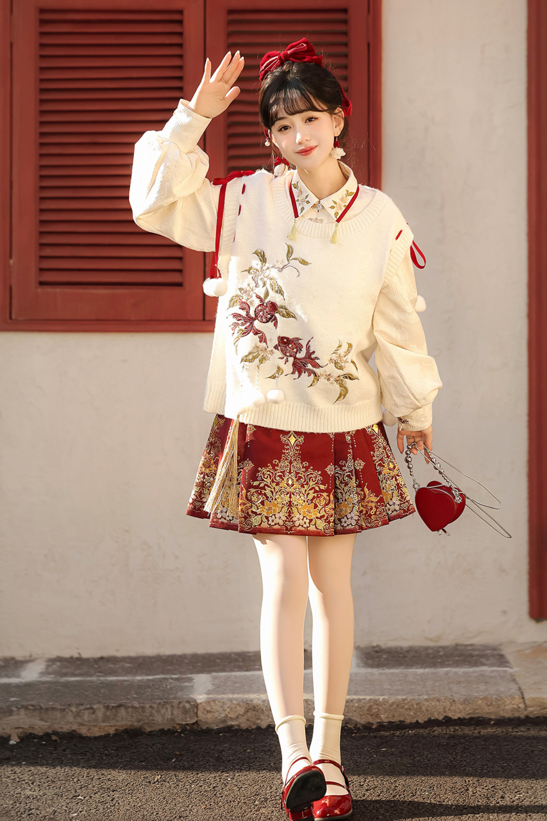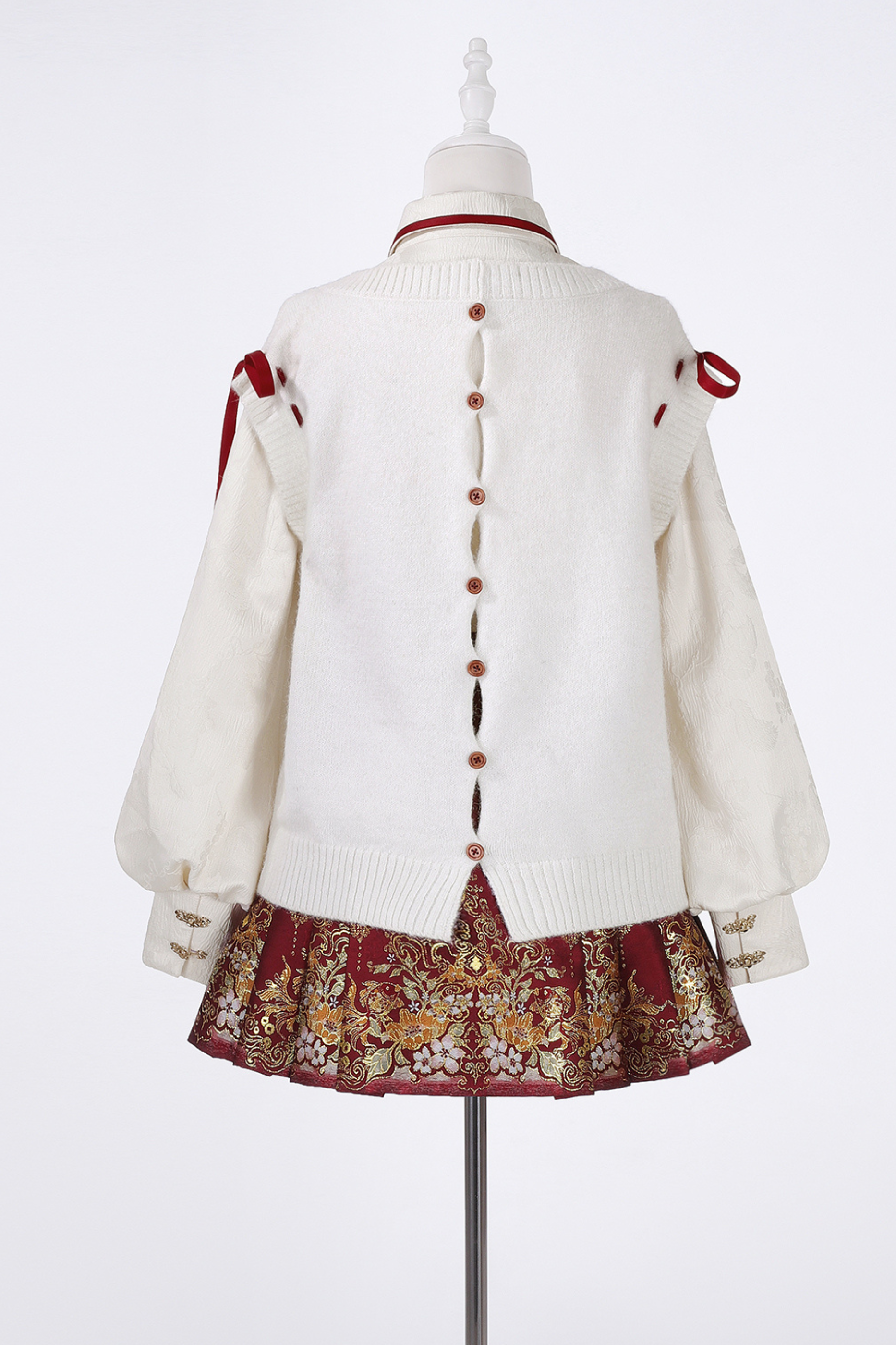 ❤チャイナスノーニットベスト+シャツ+スカート❤