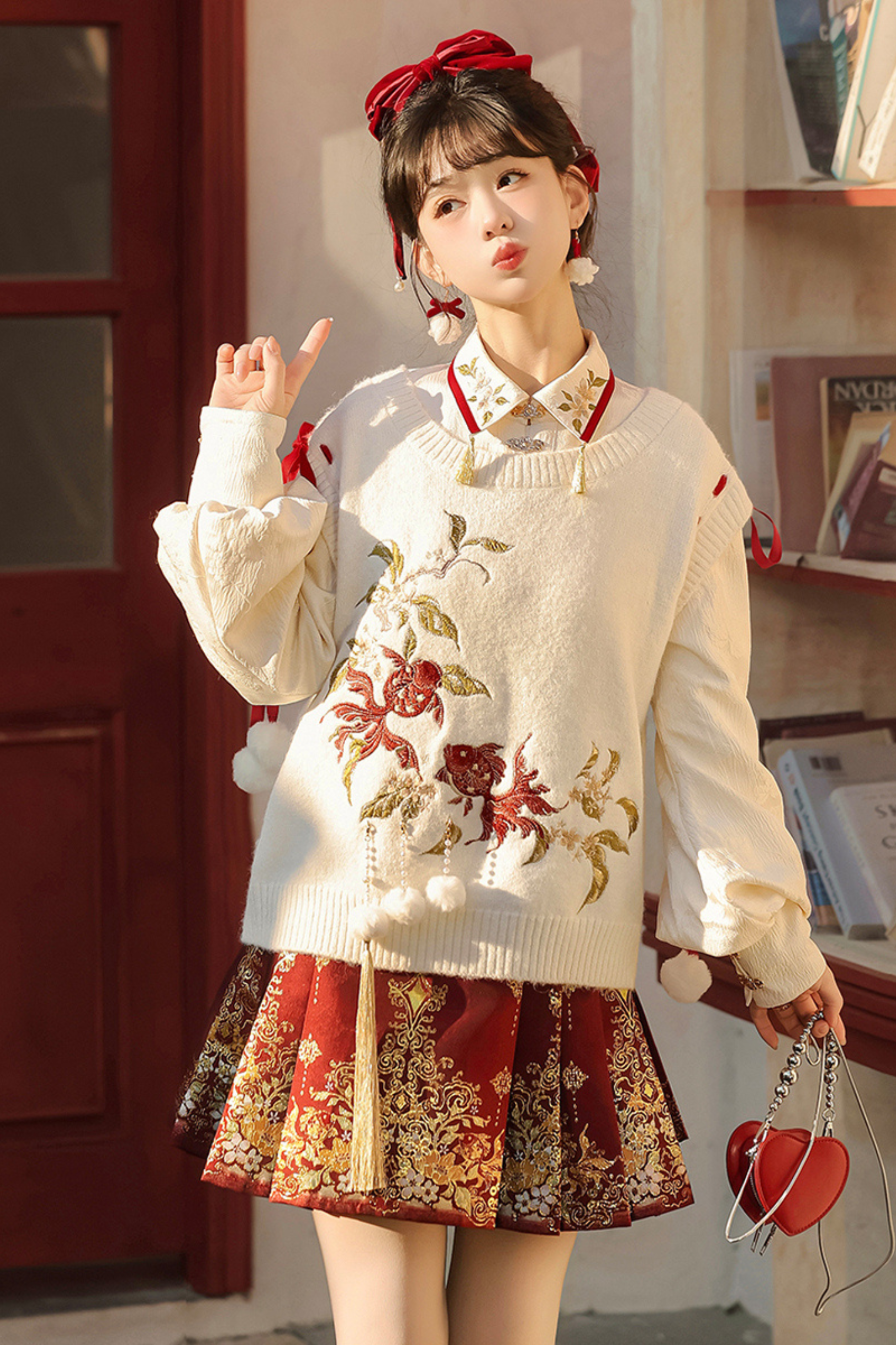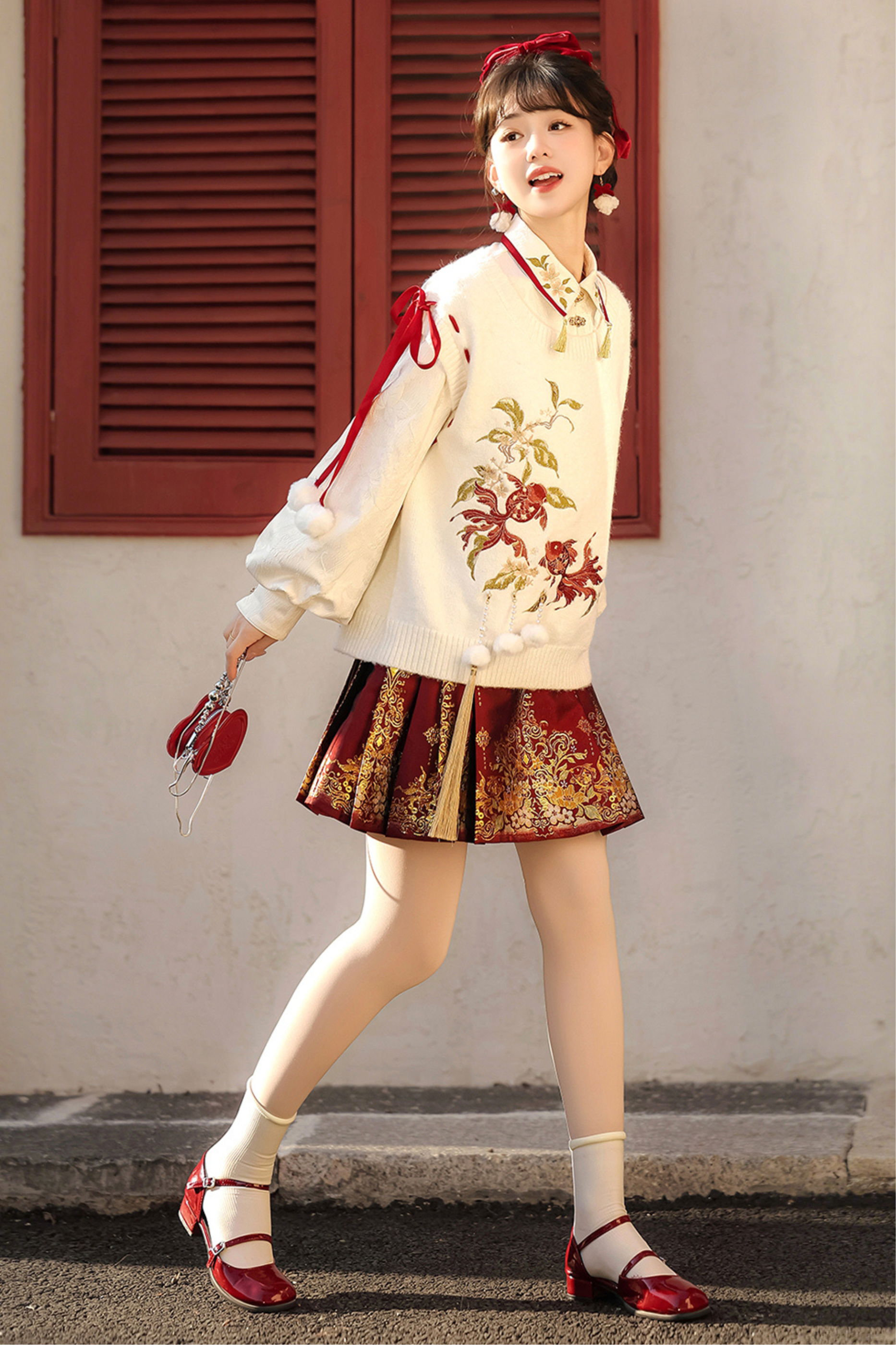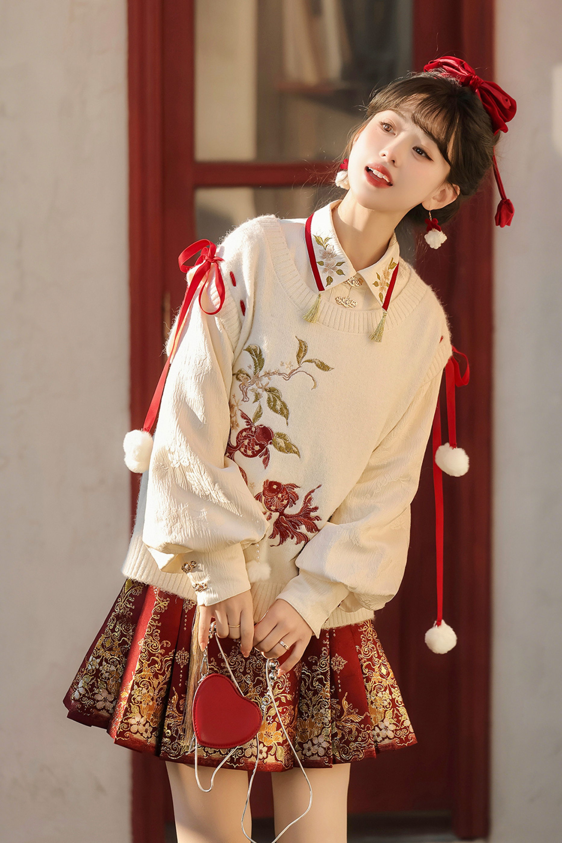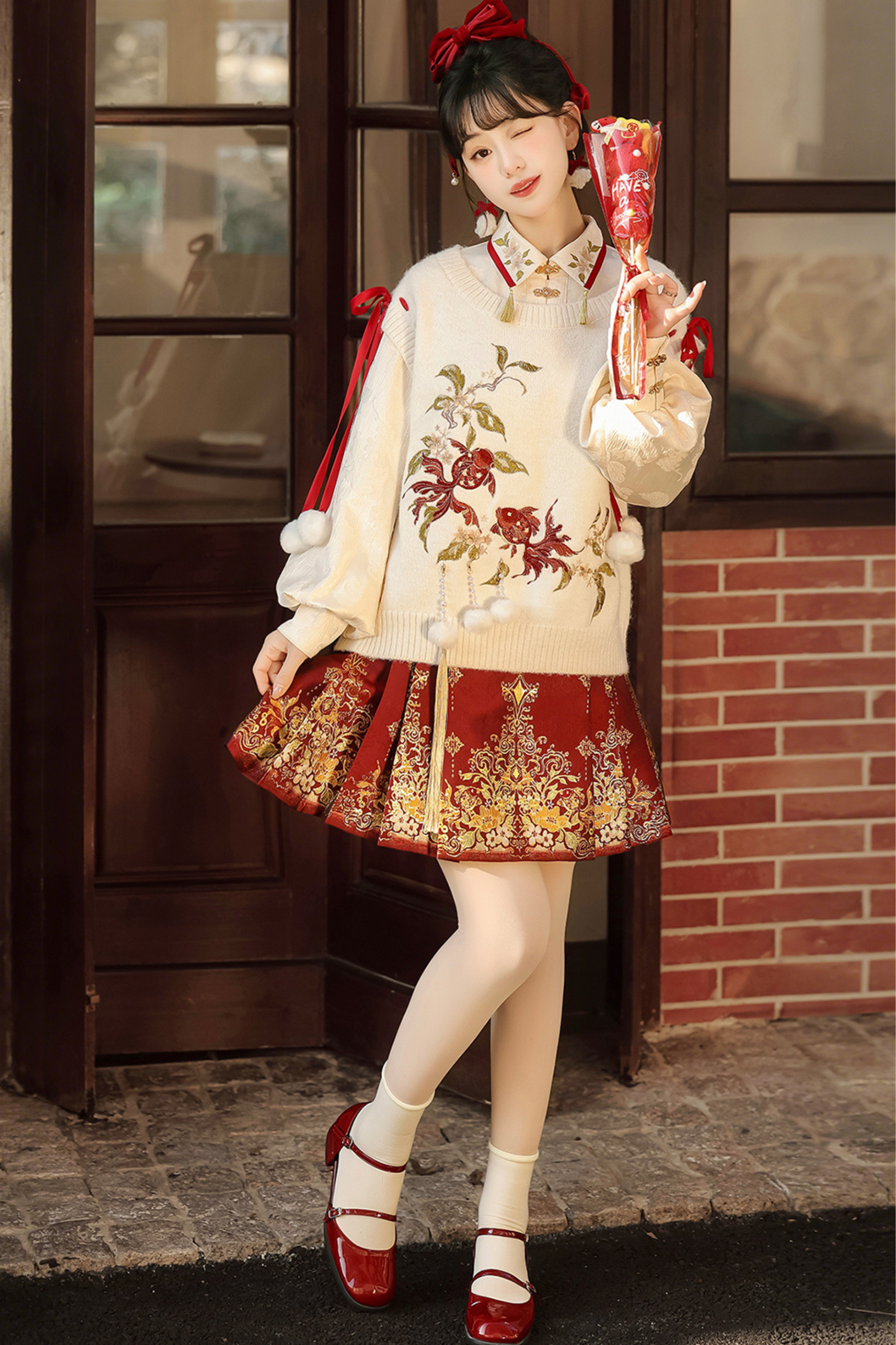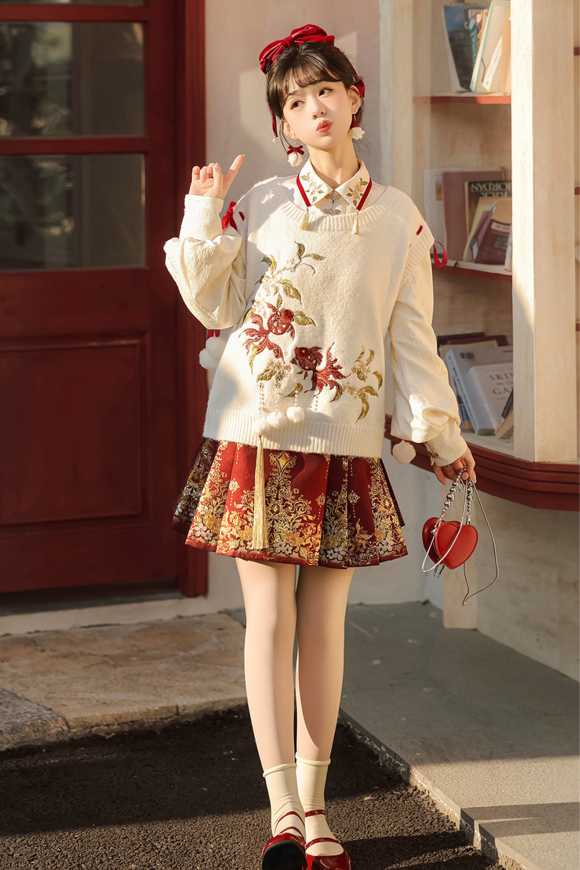 ❤チャイナスノーニットベスト+シャツ+スカート❤