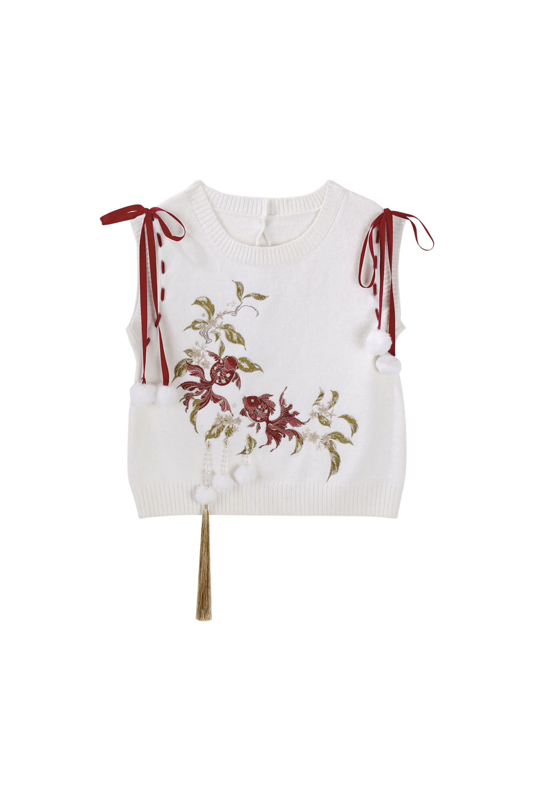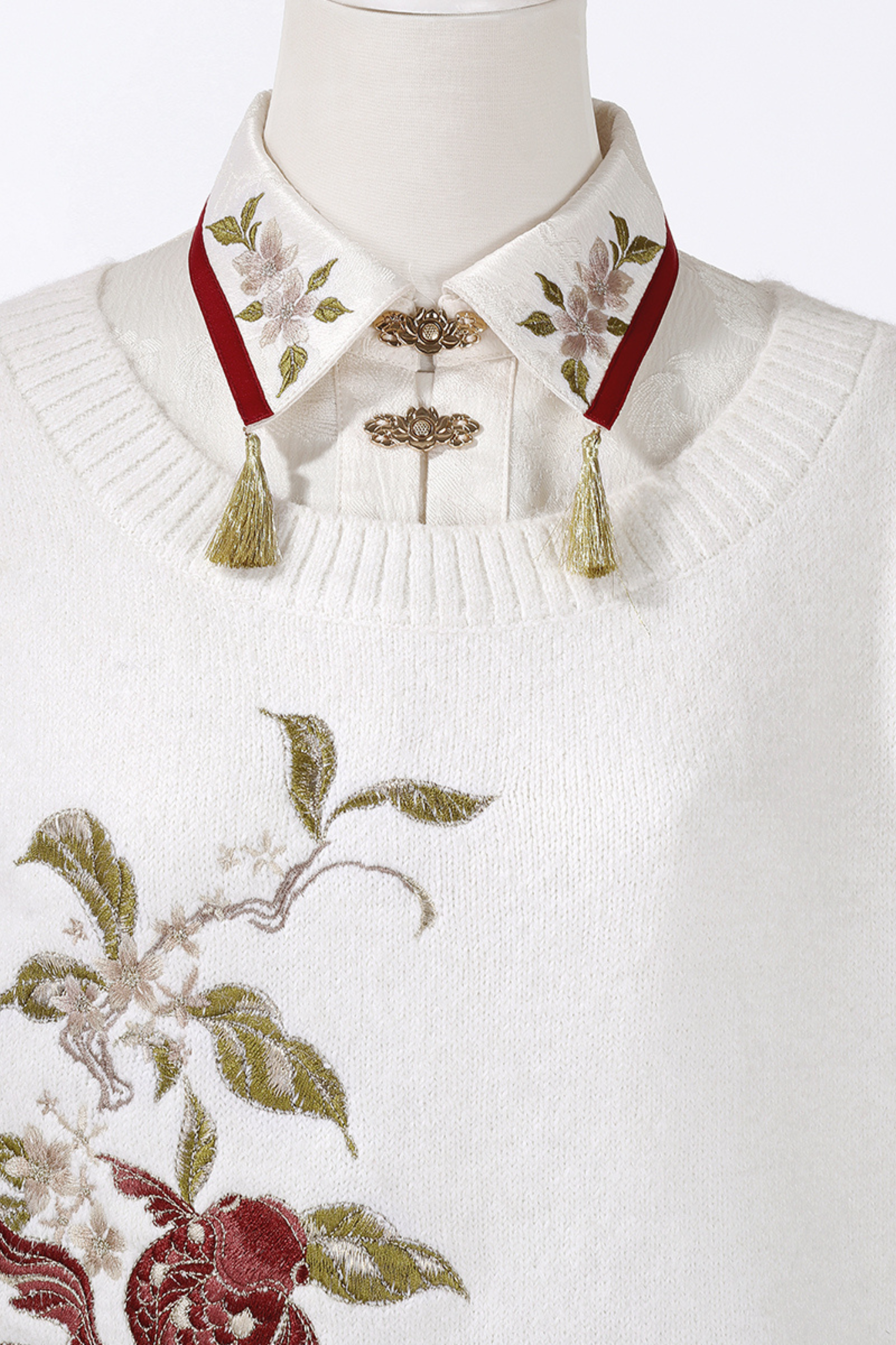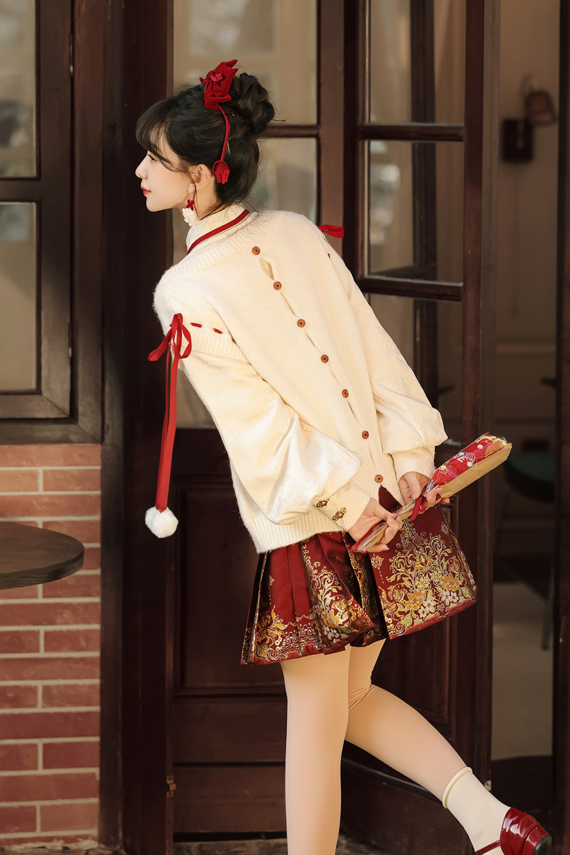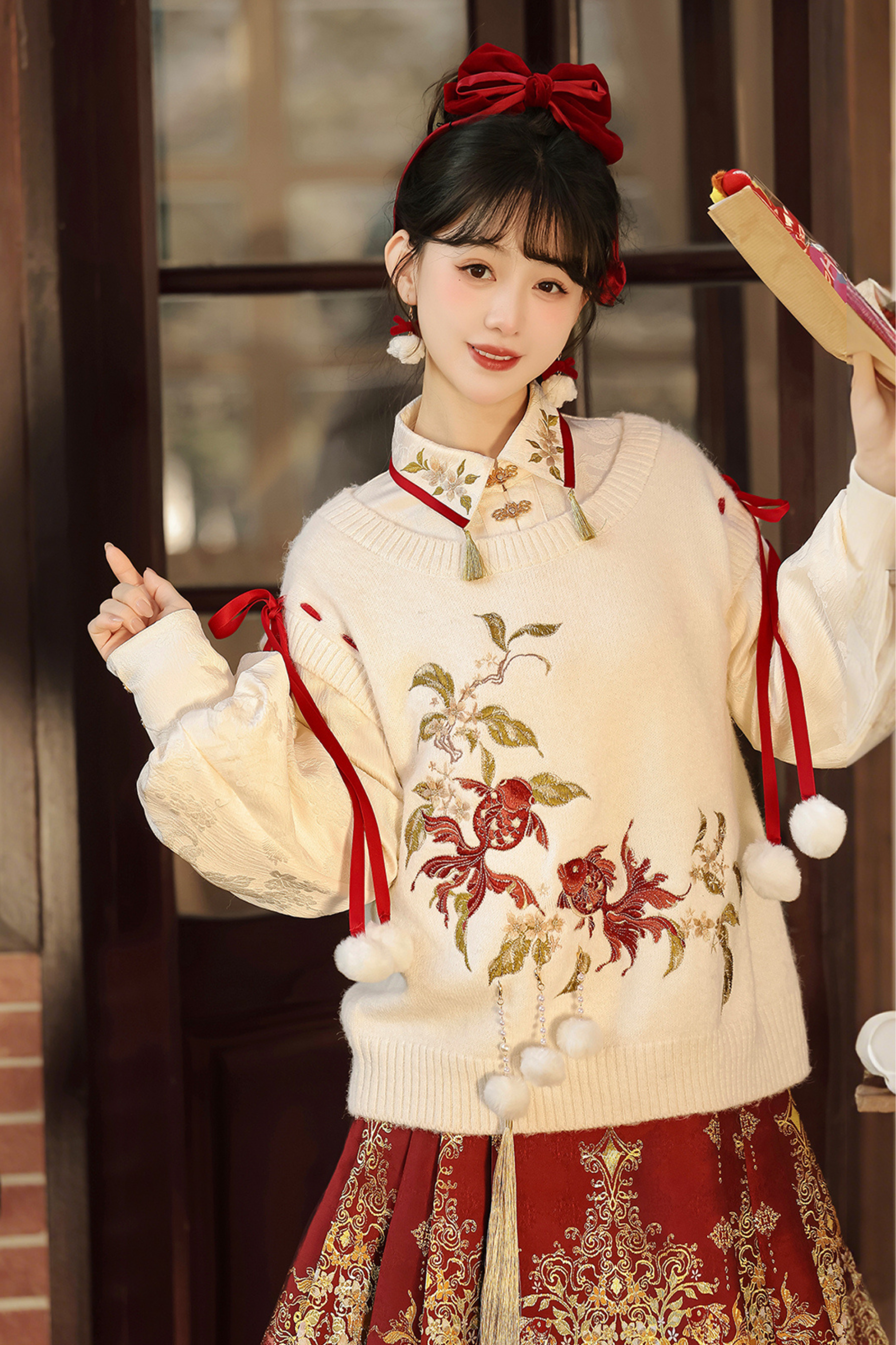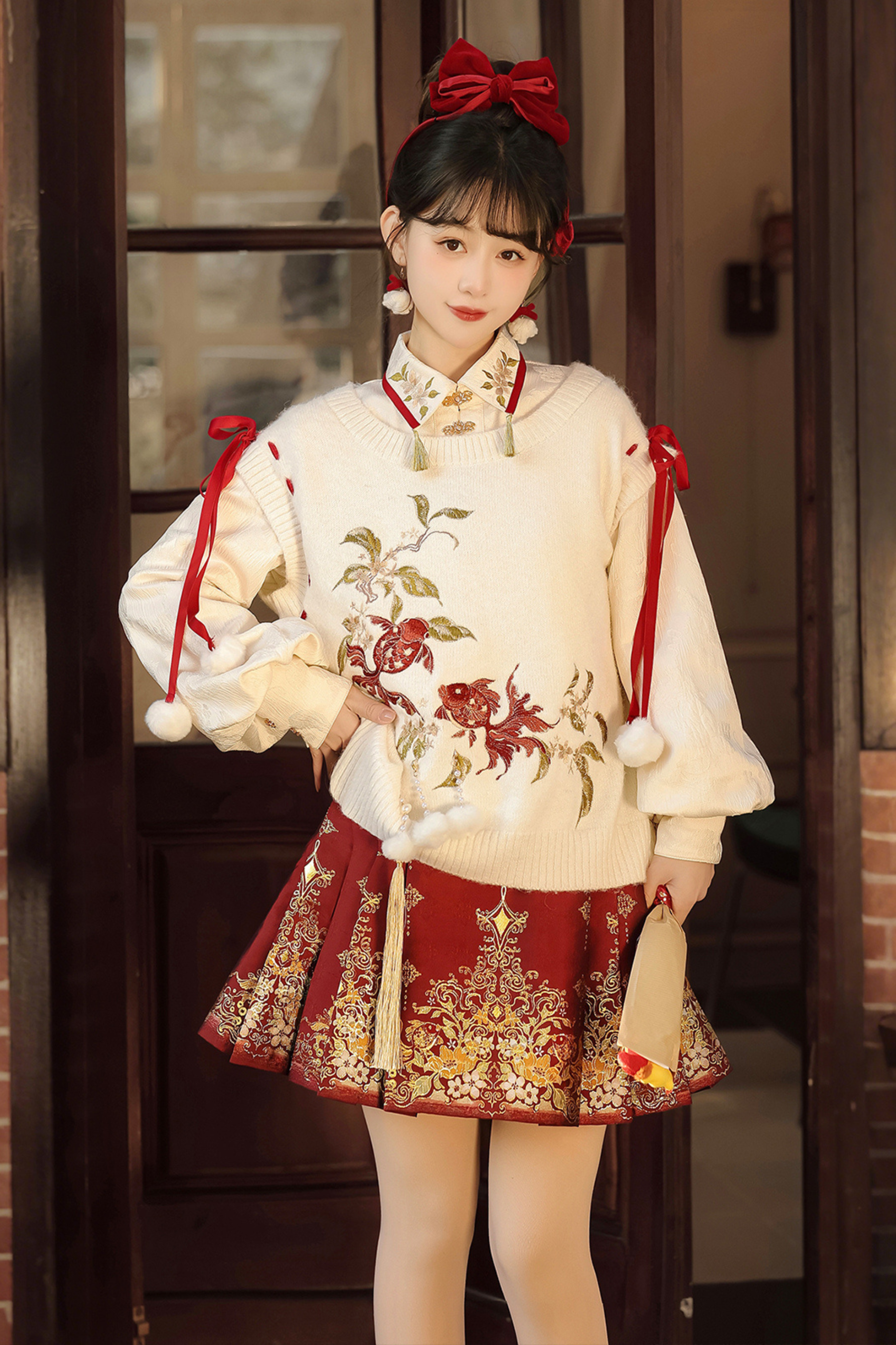 ❤チャイナスノーニットベスト+シャツ+スカート❤