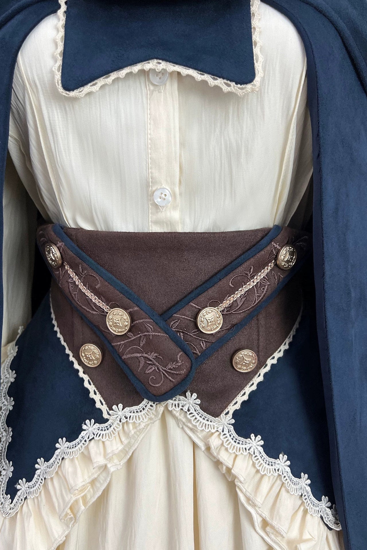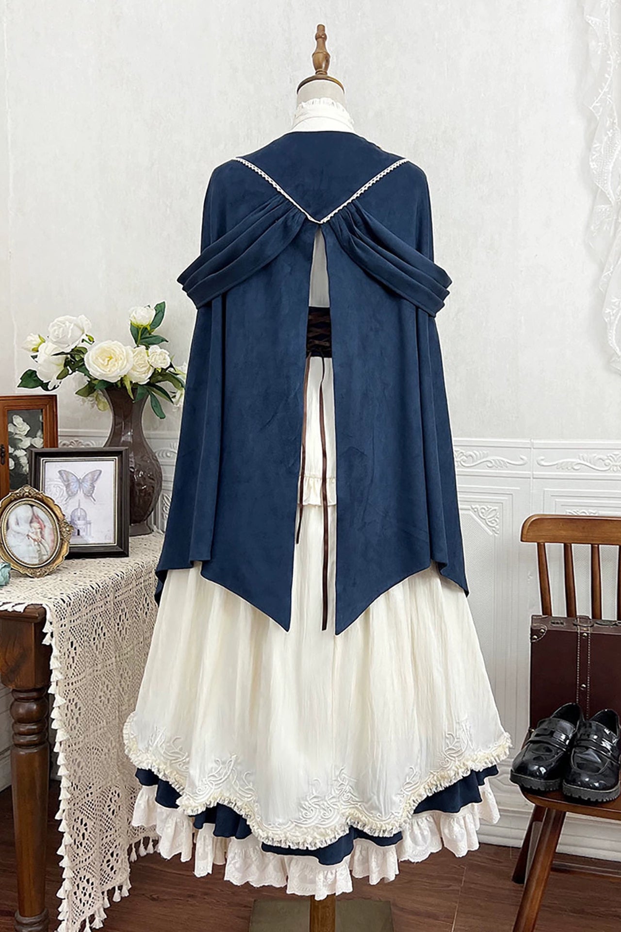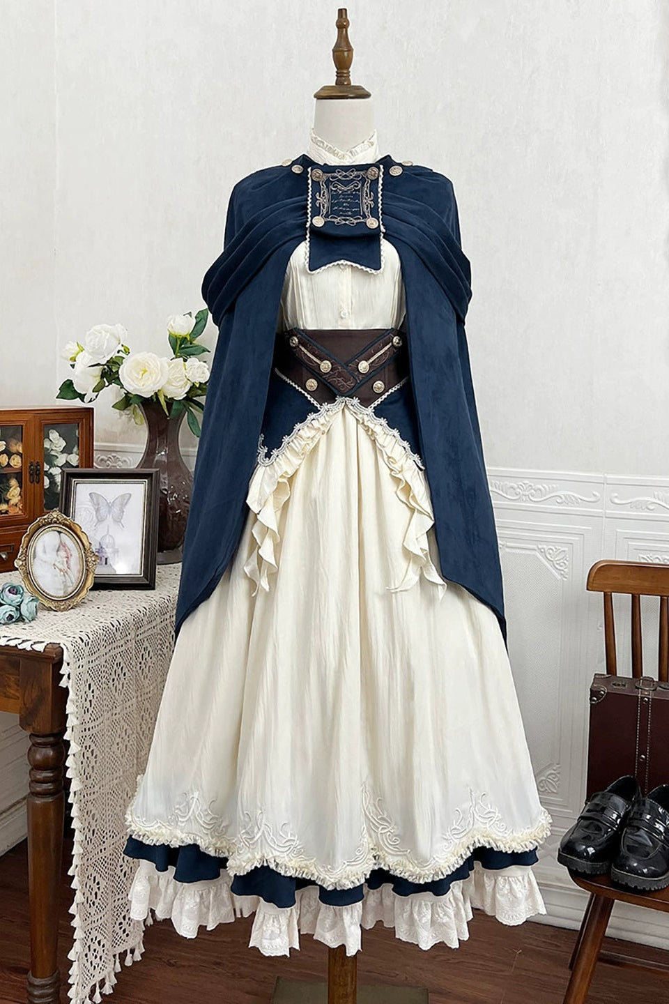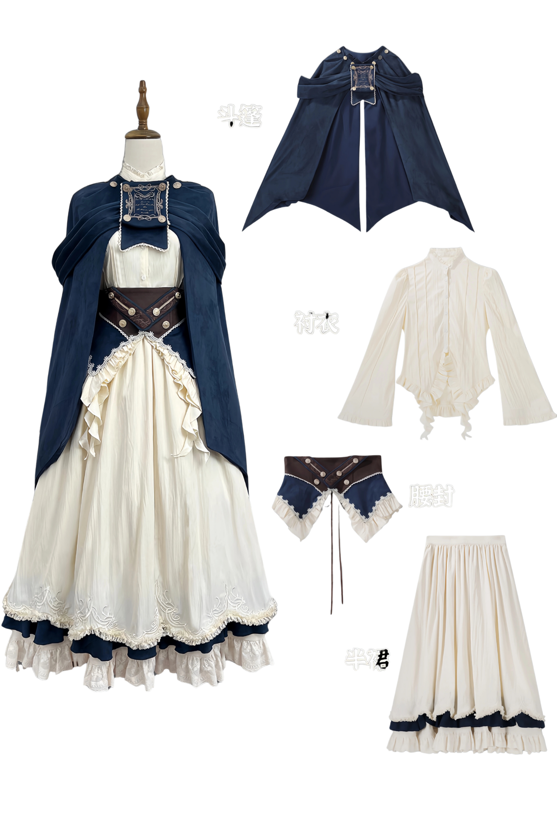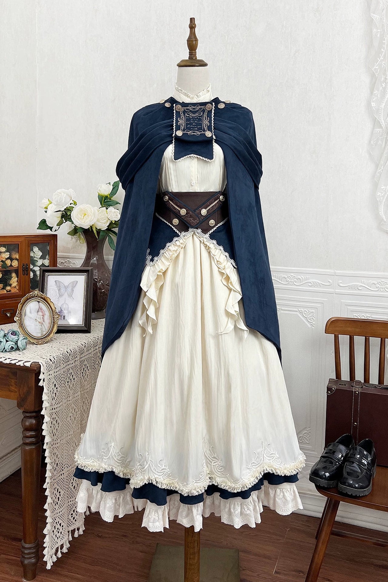エレガントガールヴィンテージミッドセンチュリーシャツ+スカート+ベルト+ケープ