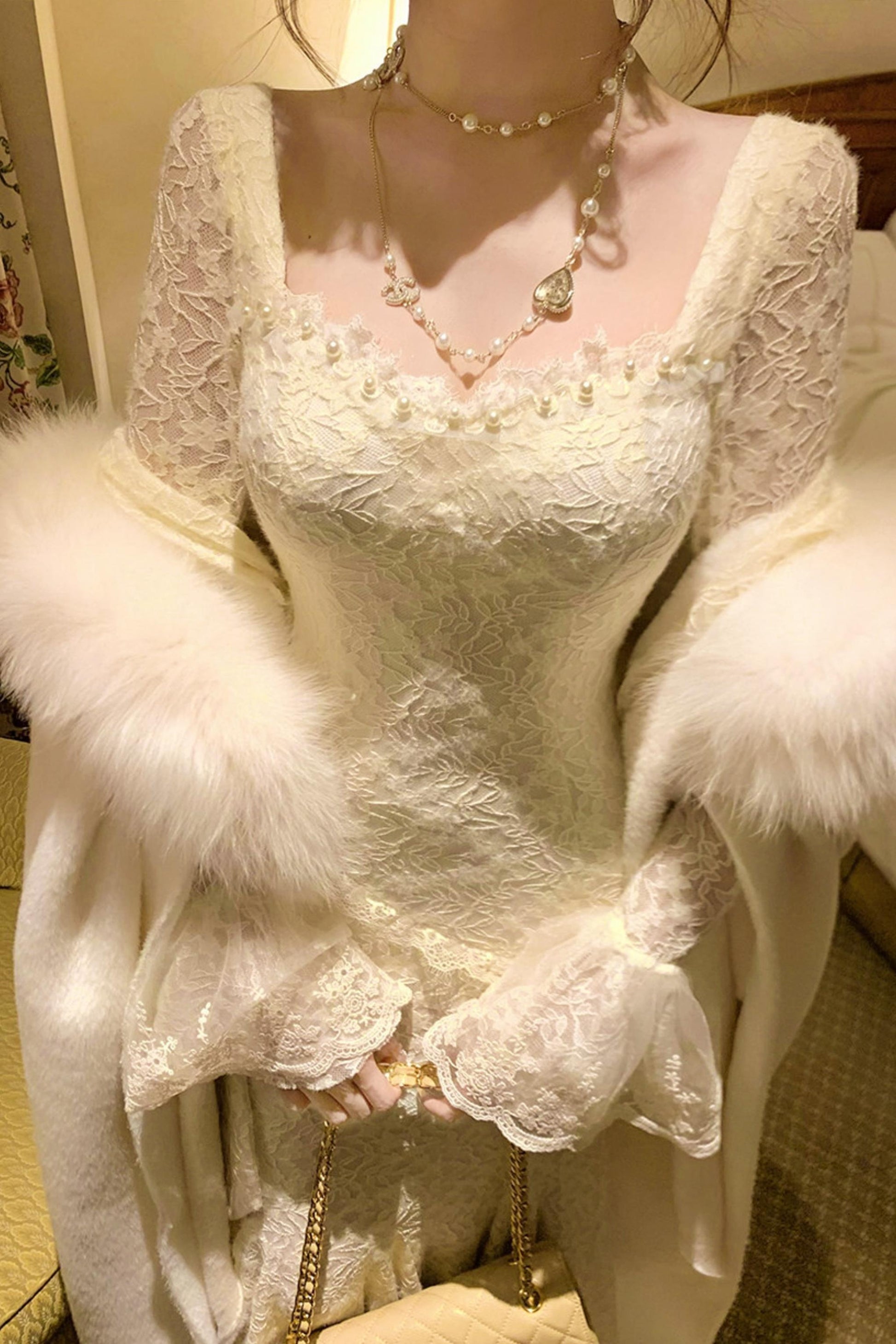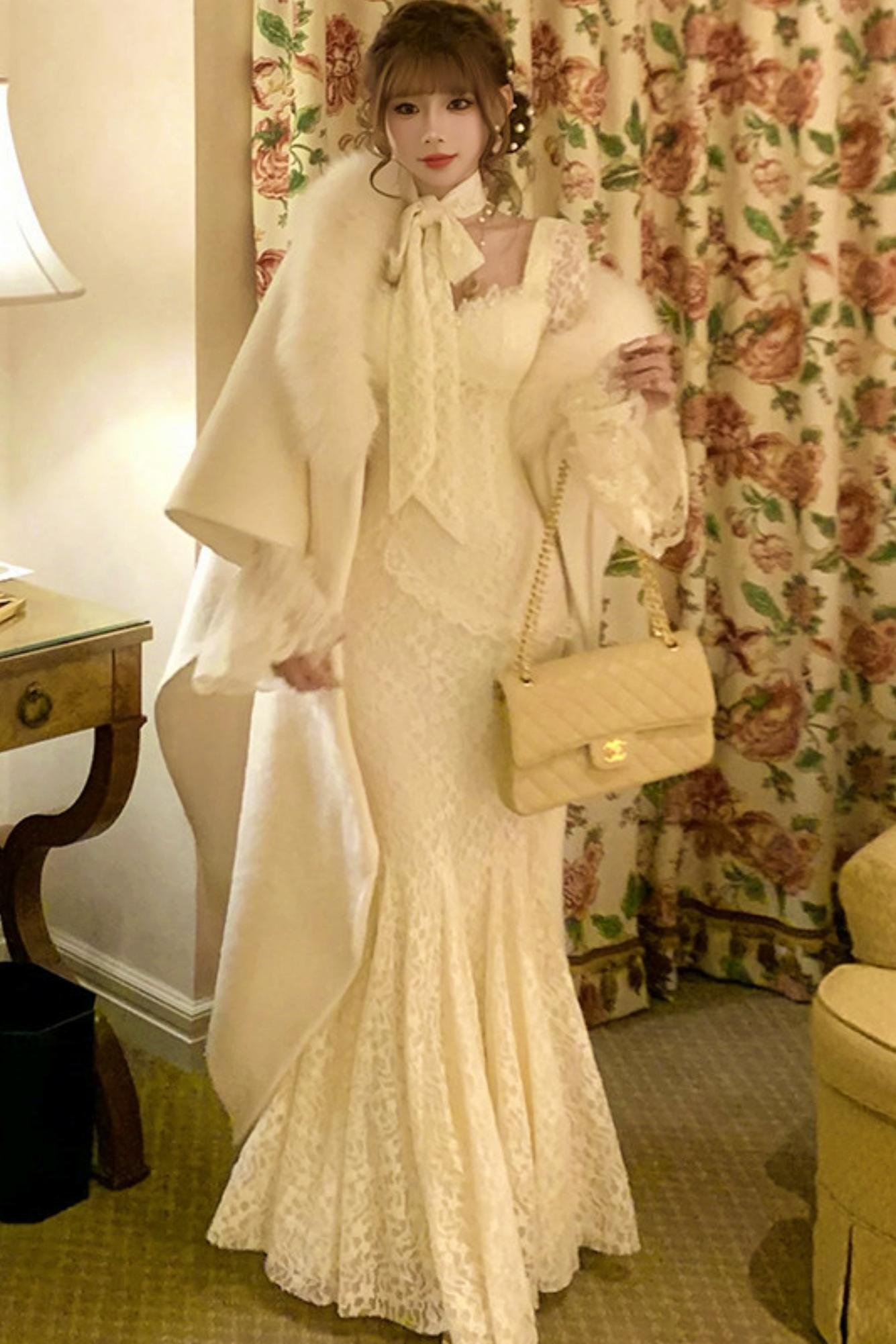 フレンチスタイルレースマーメイドドレス