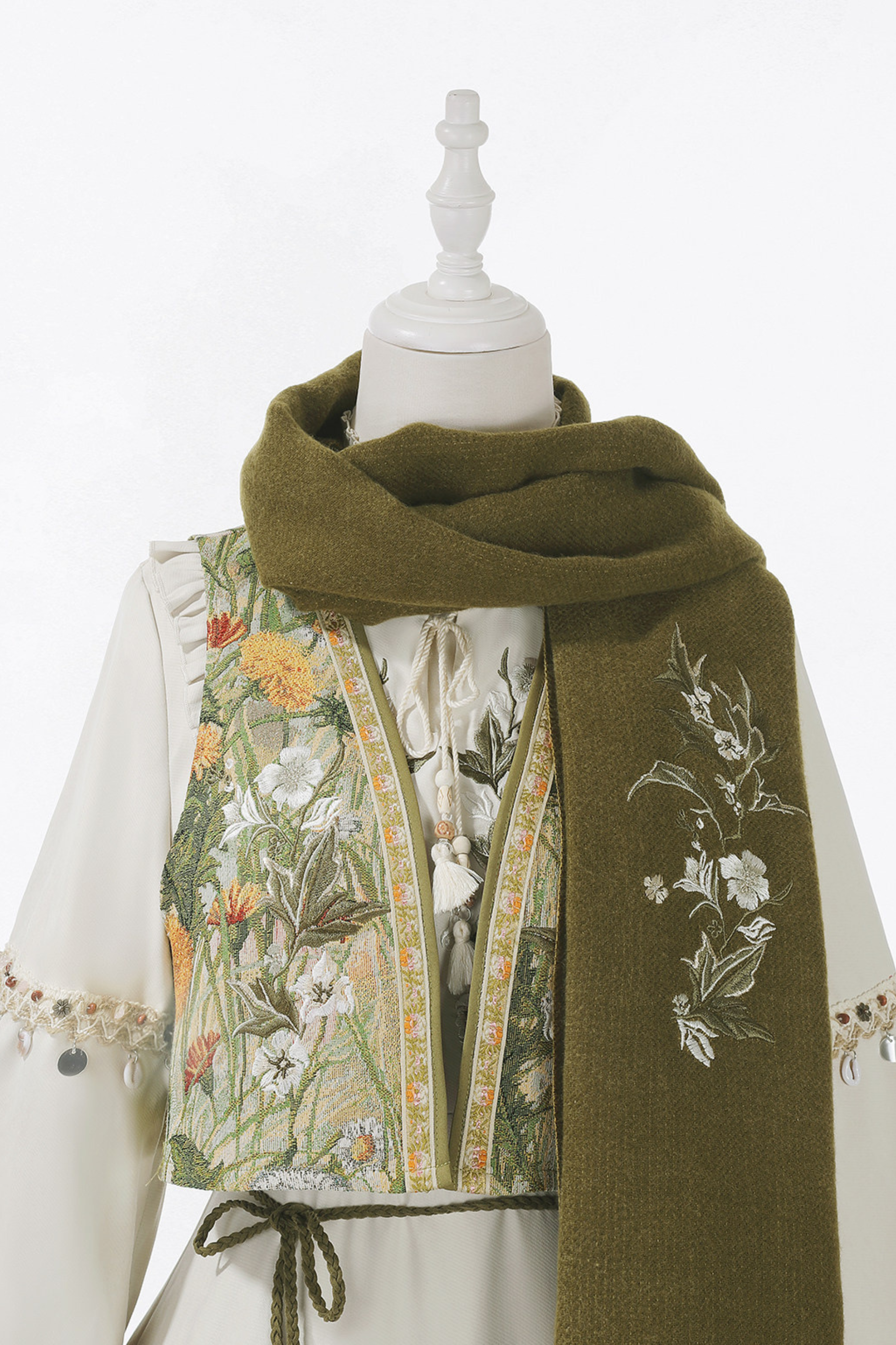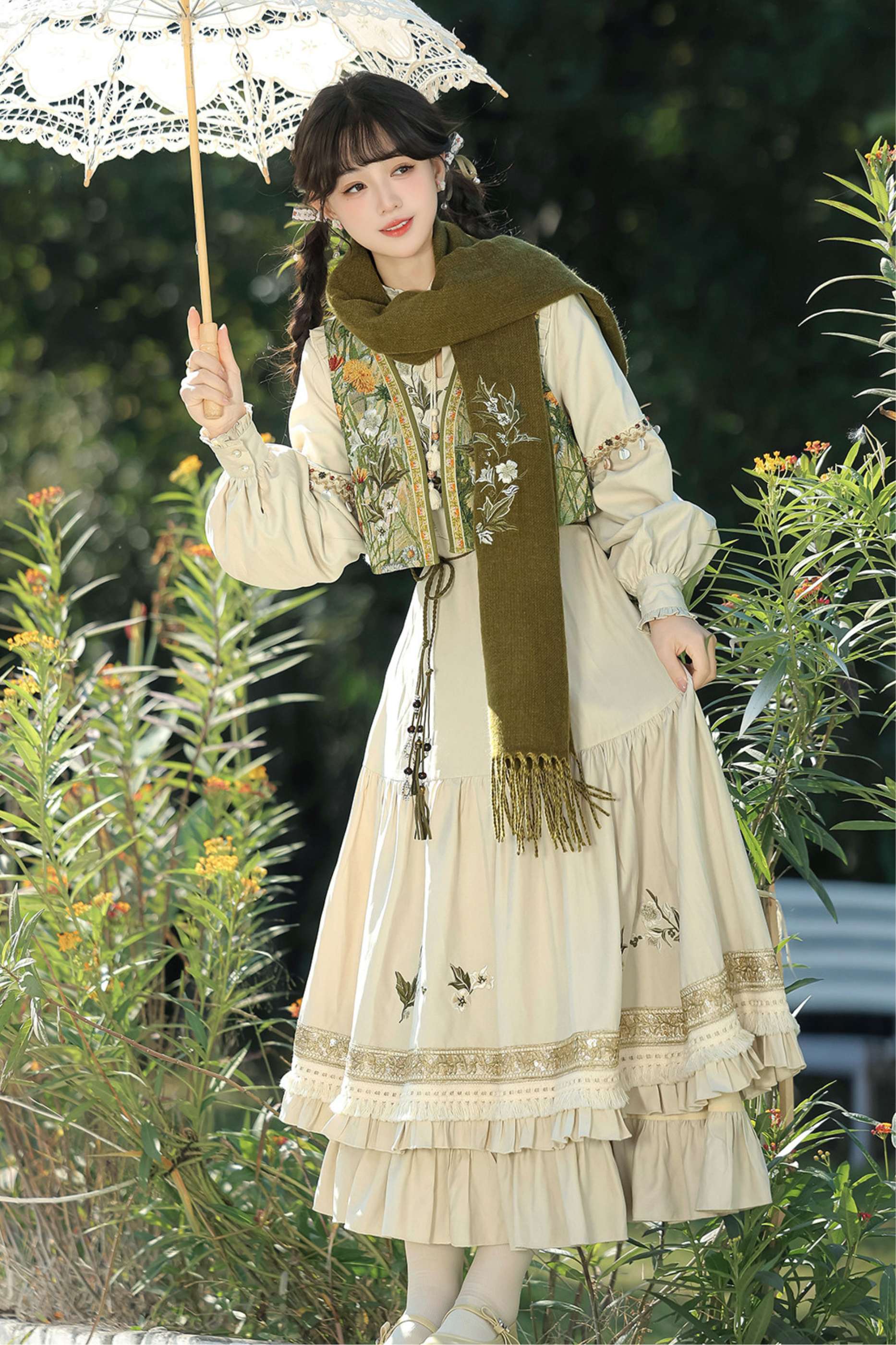 パストラルロリータロングスリーブドレス+ベスト+スカーフ