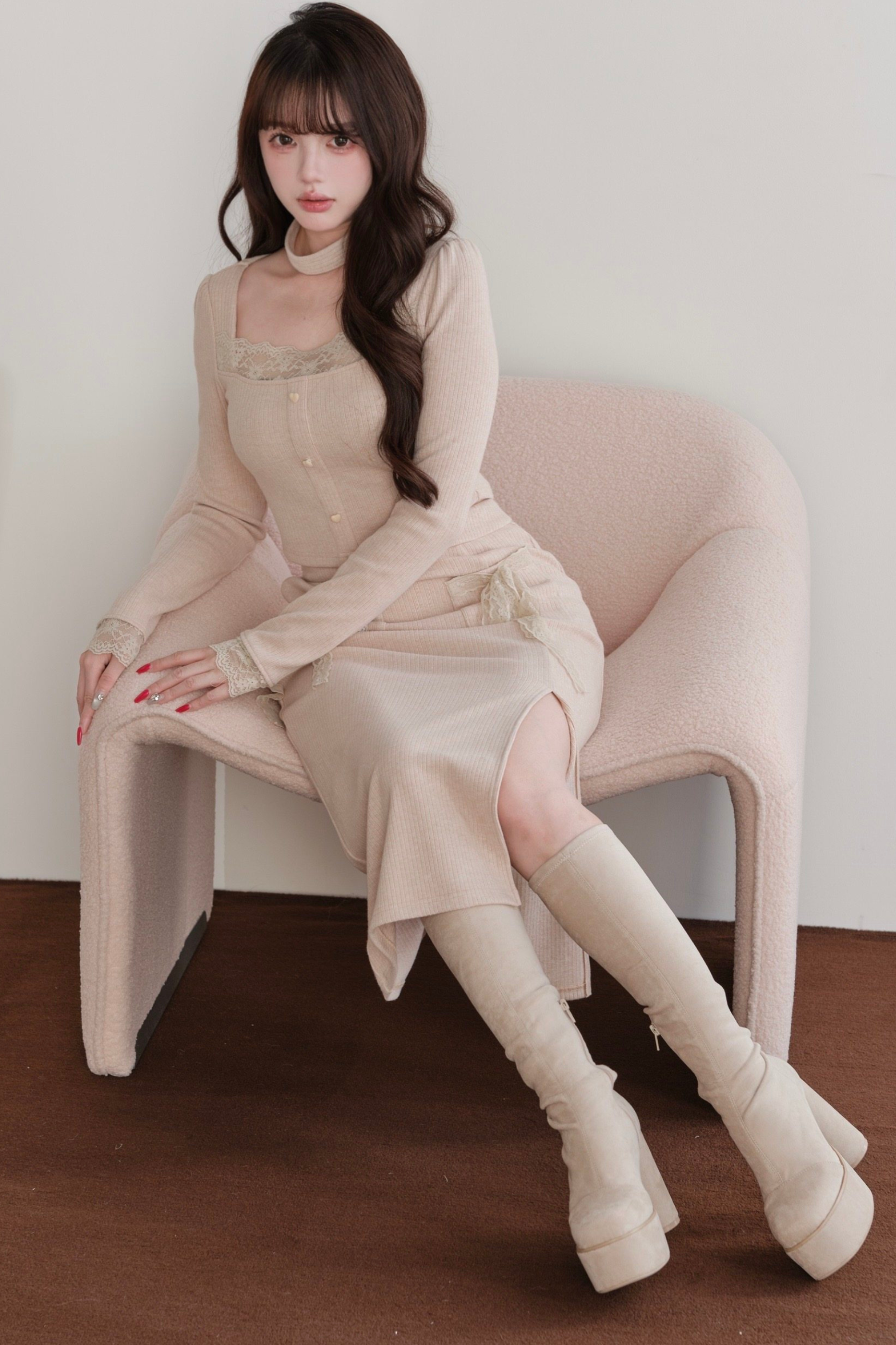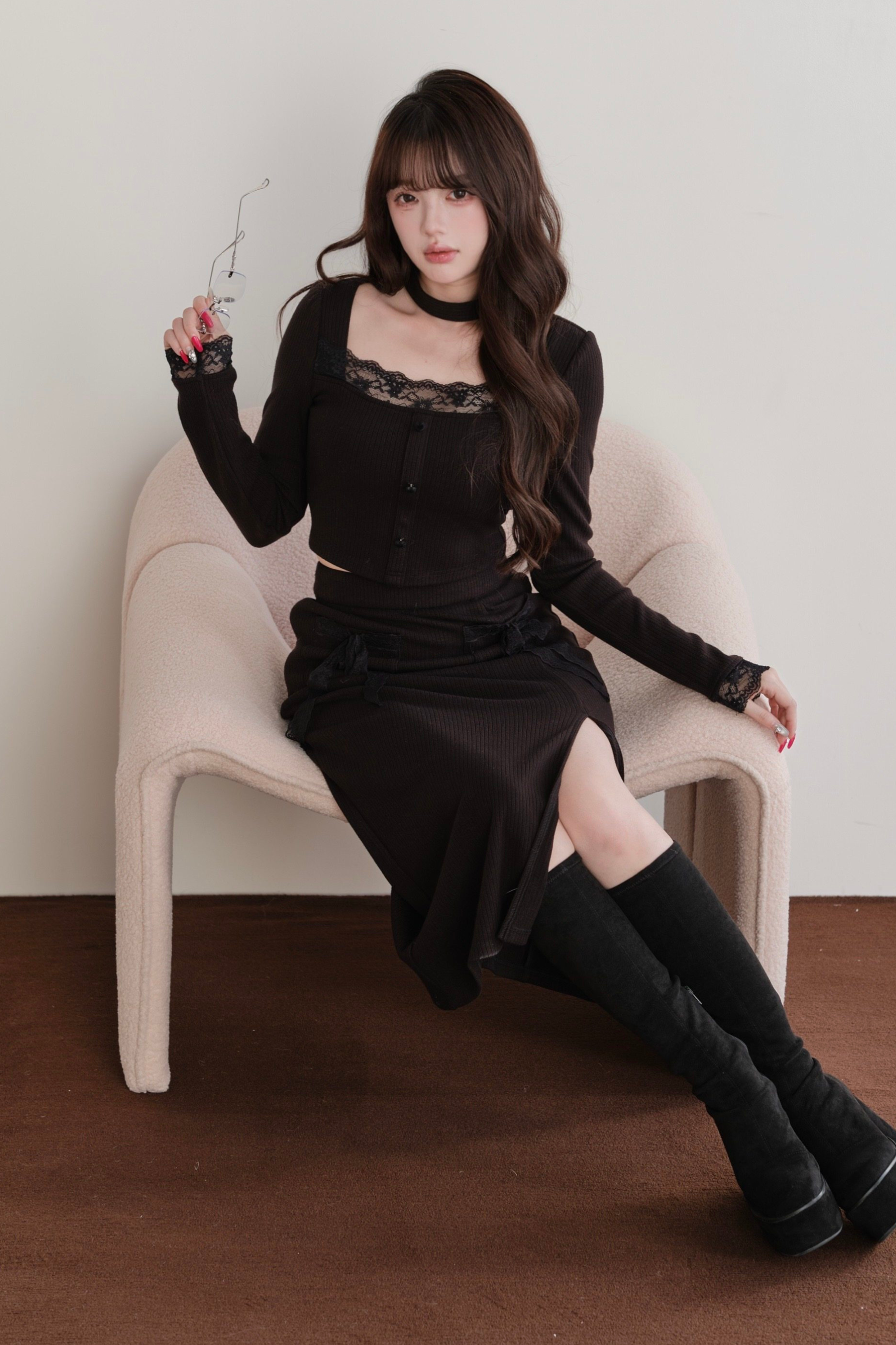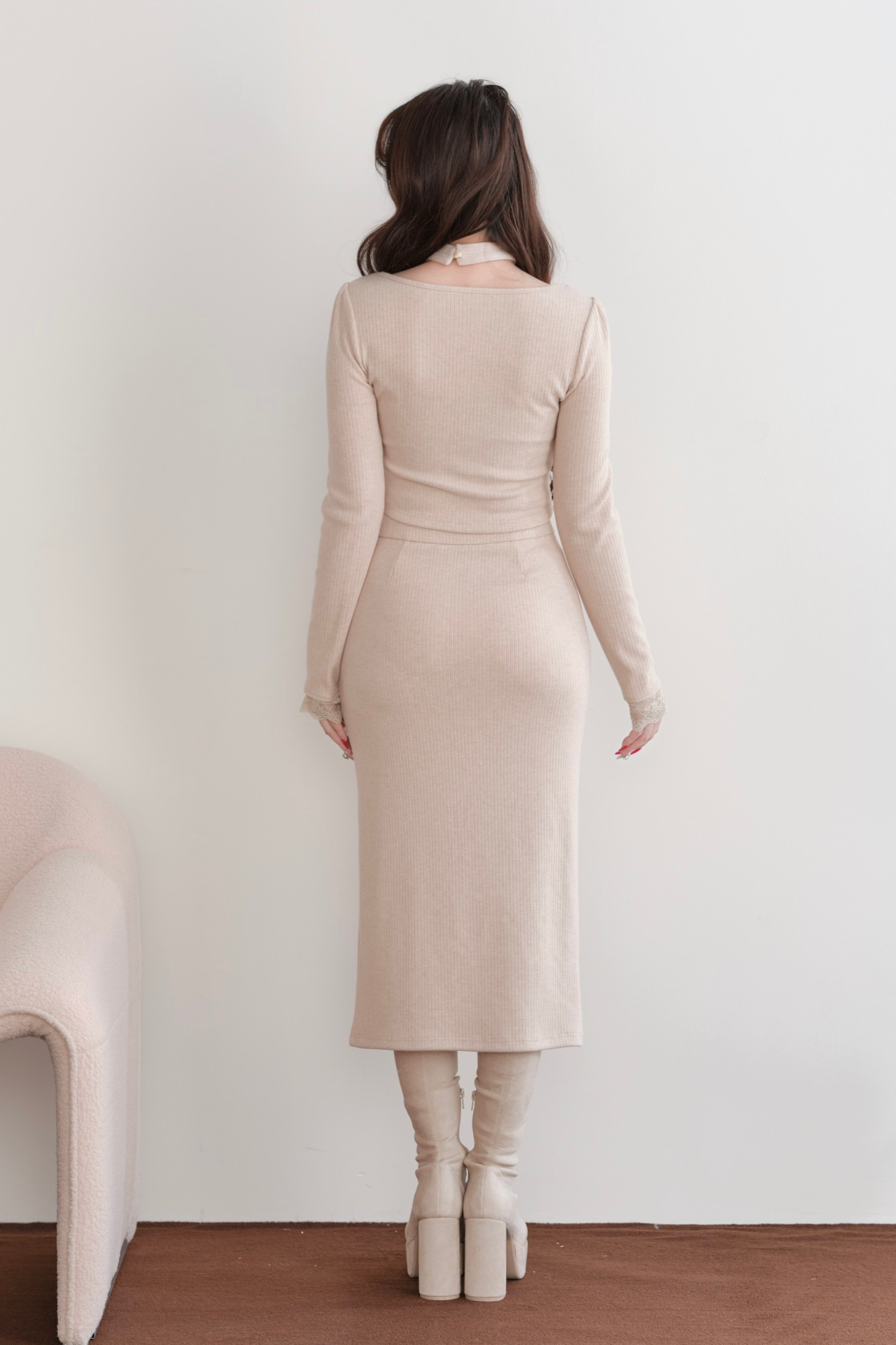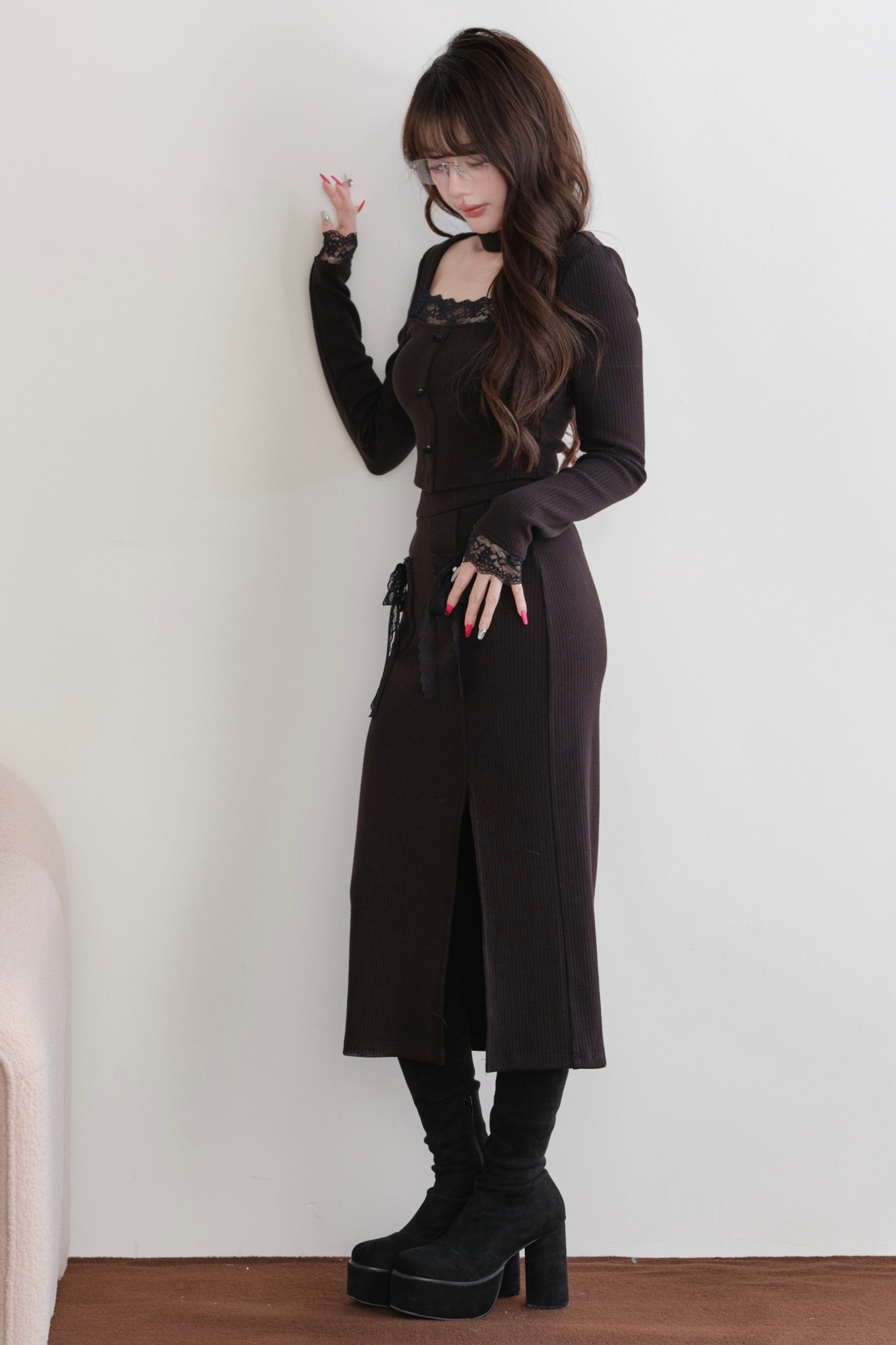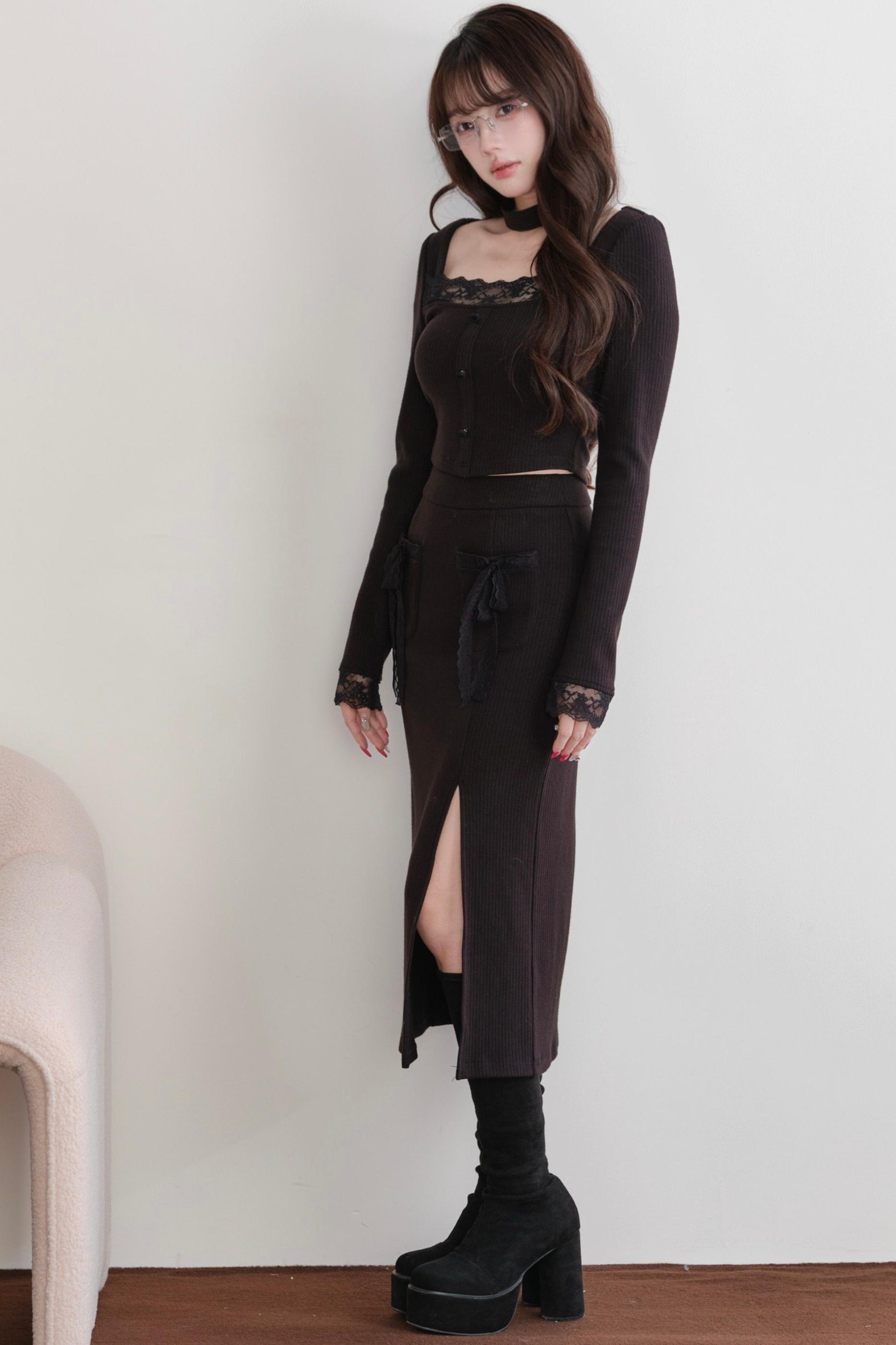 レディタイトトップス+スリットリボンスカート