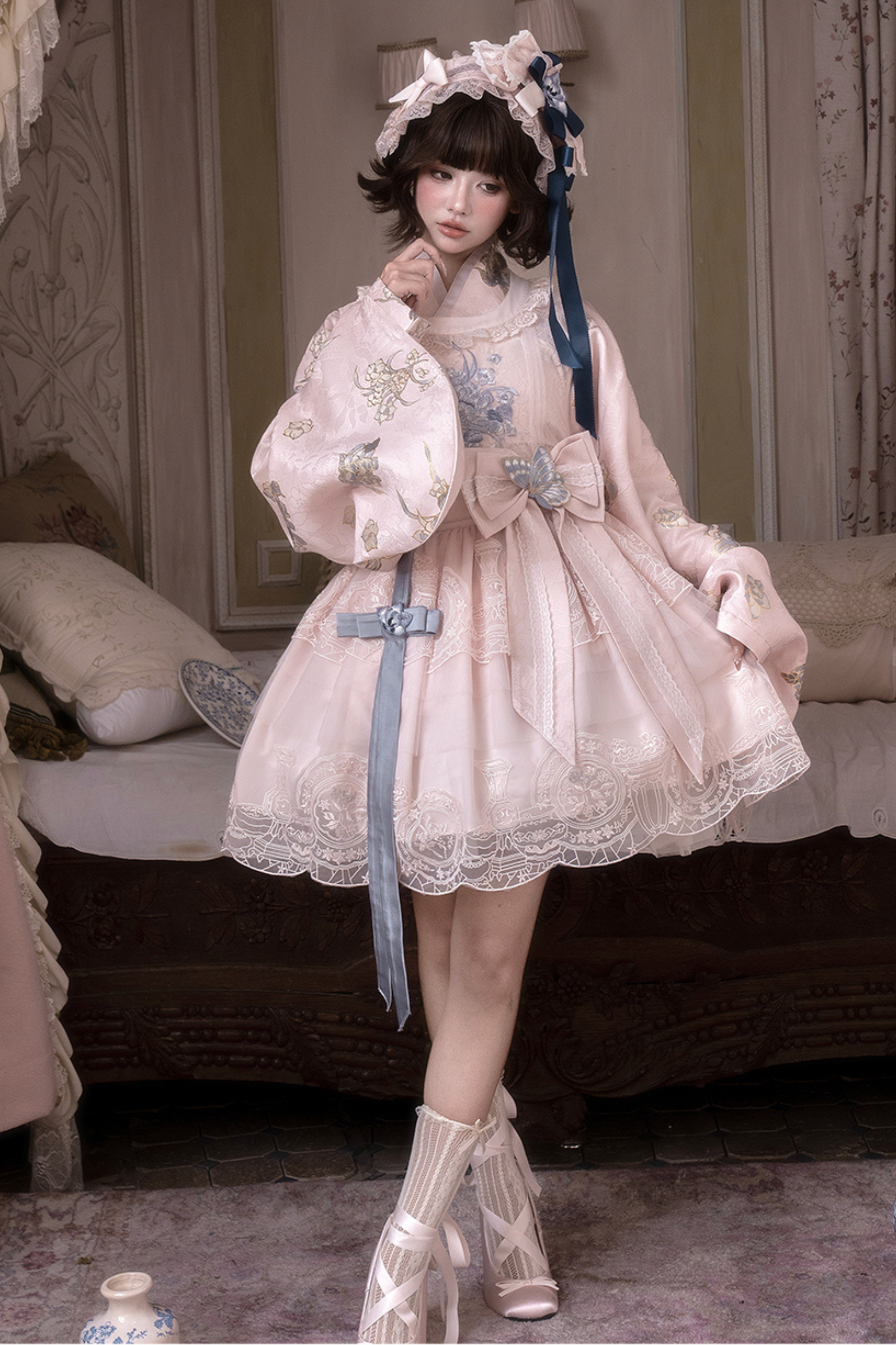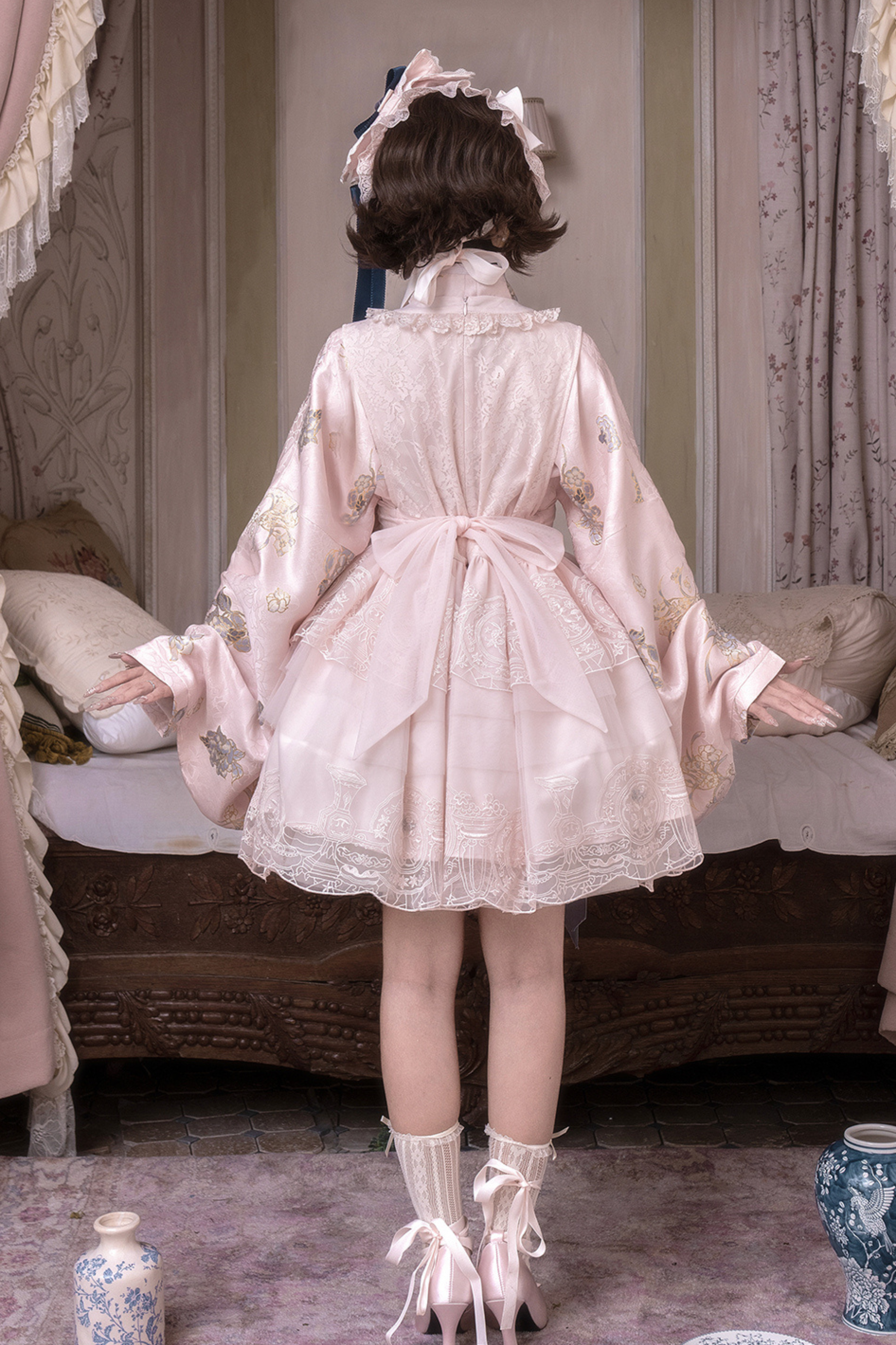 アップクロスカラージャケット+ショートジャケット+ドレス+ヘアバンド+リボン