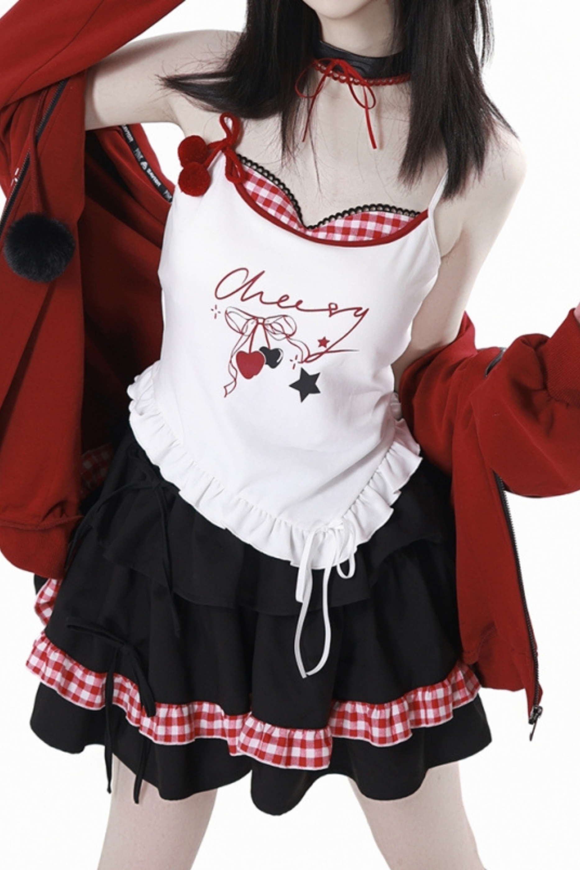 ❤チェリーウィンドフードパーカー+キャミソール+スカート❤