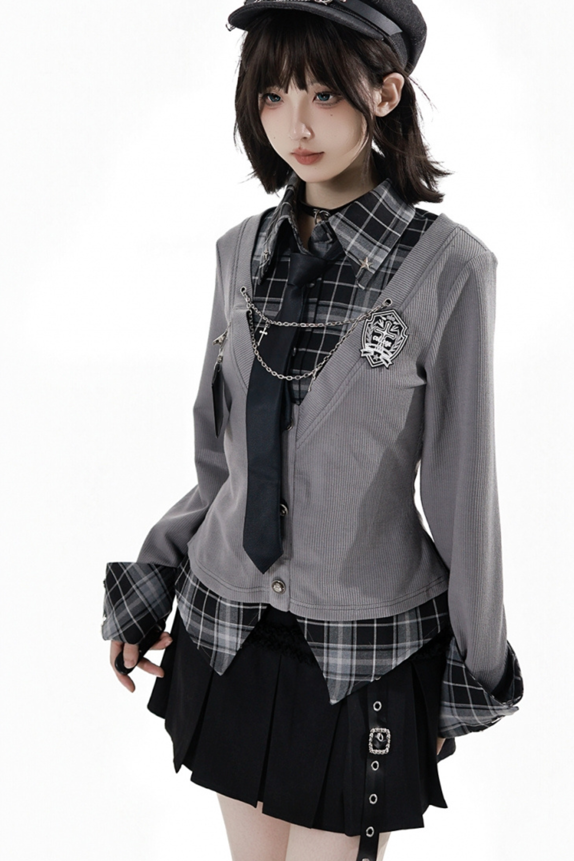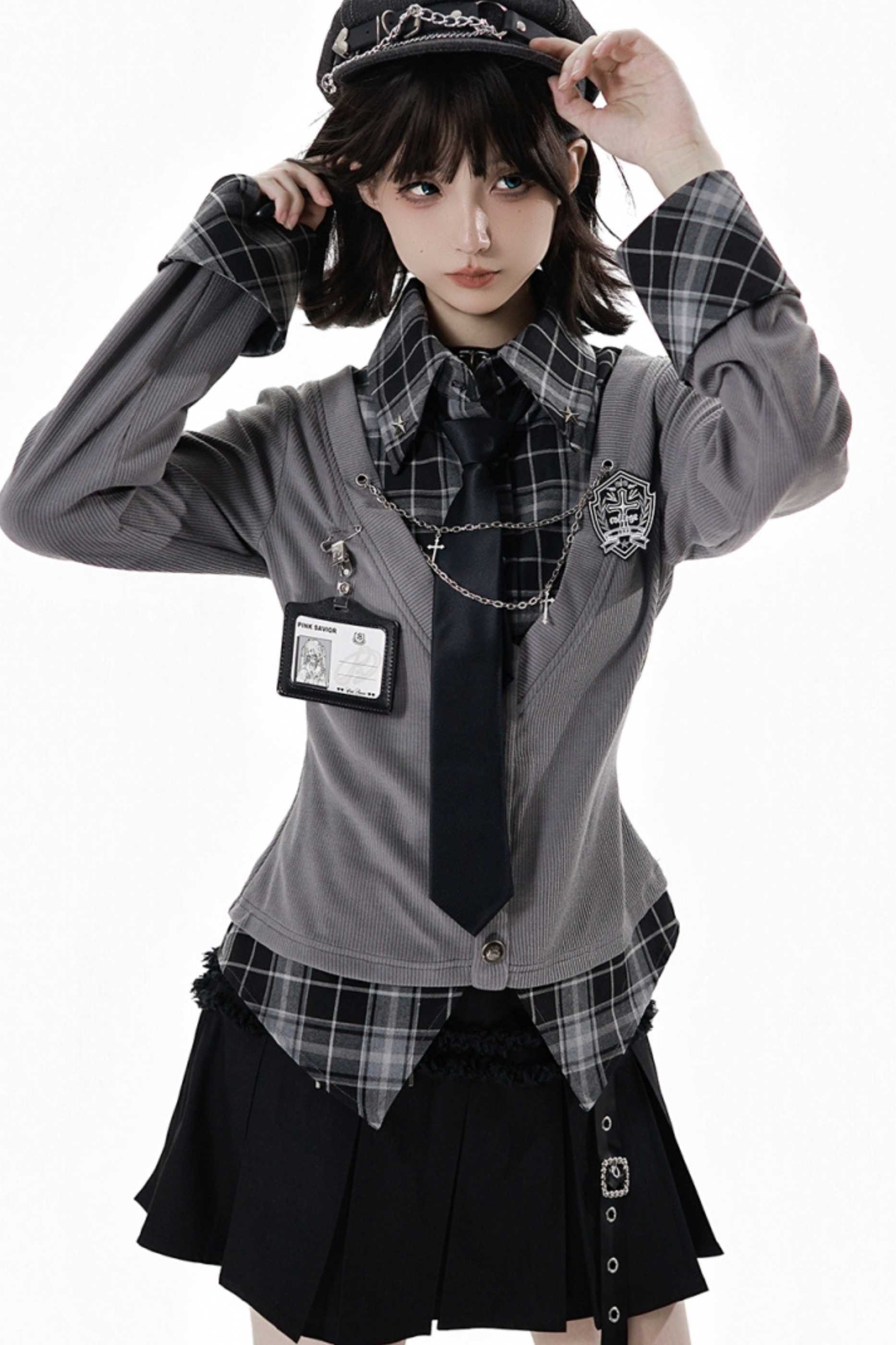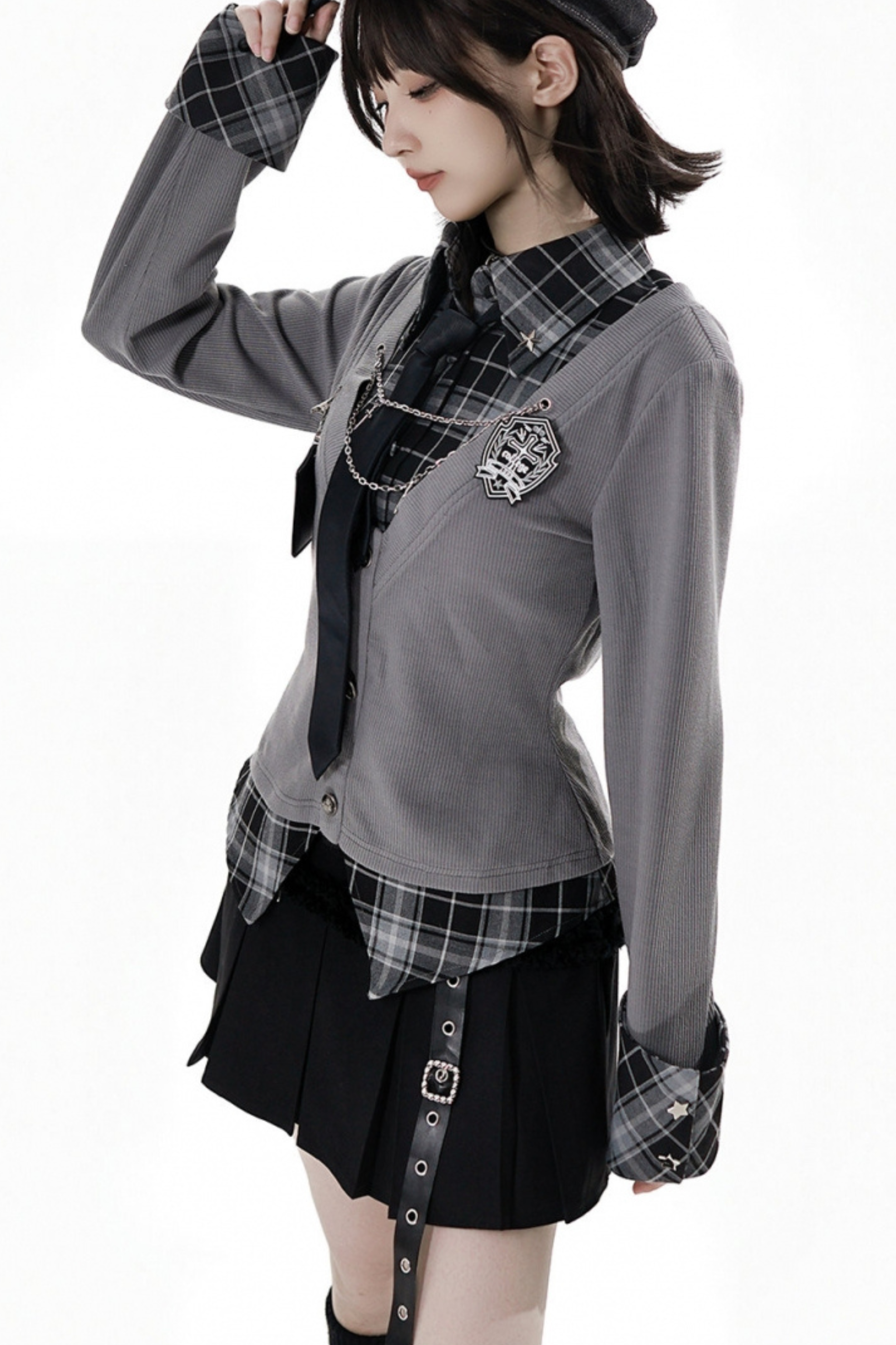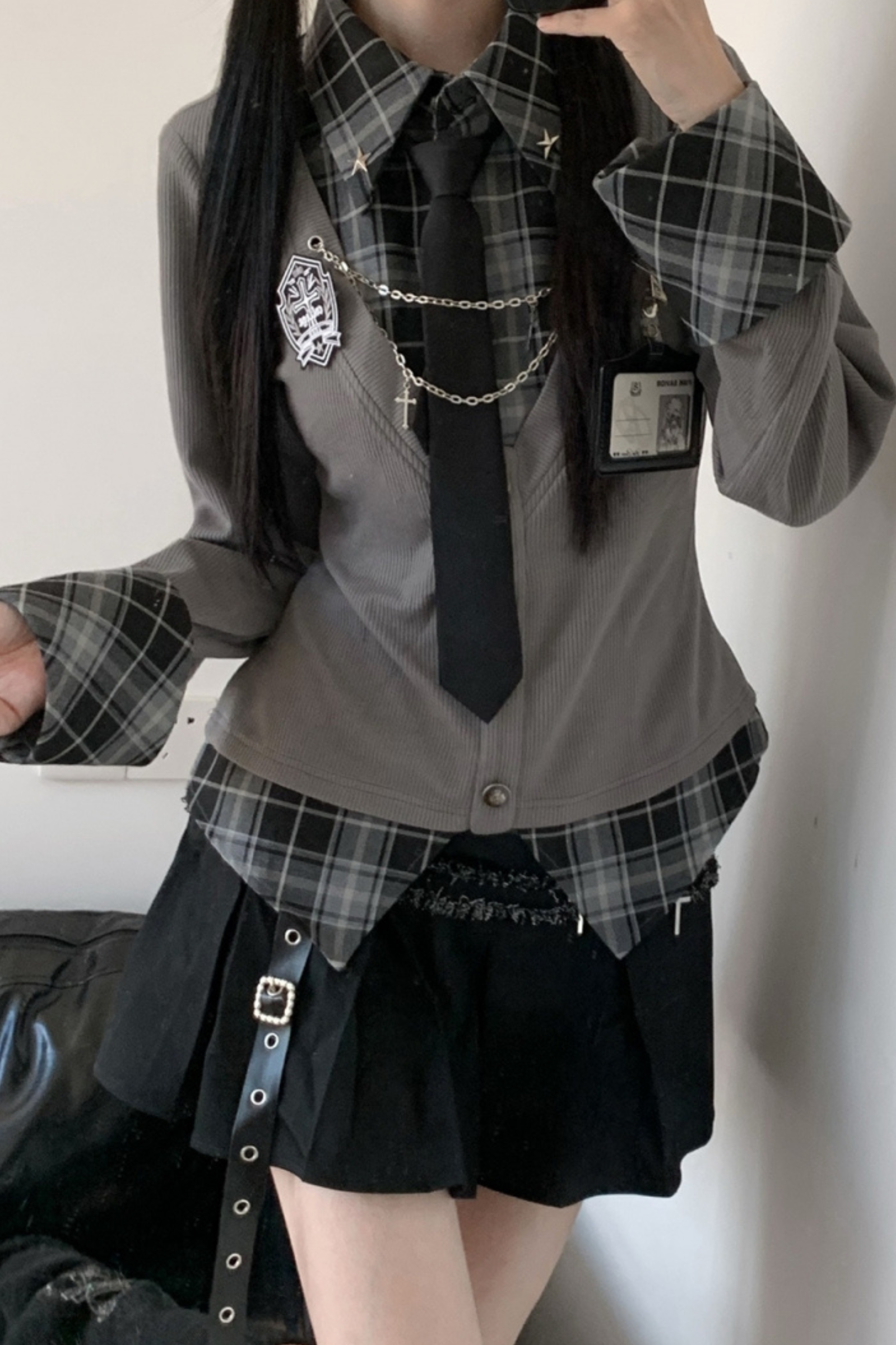 ❤カレッジロールアップシャツ+スカート+ネクタイ❤