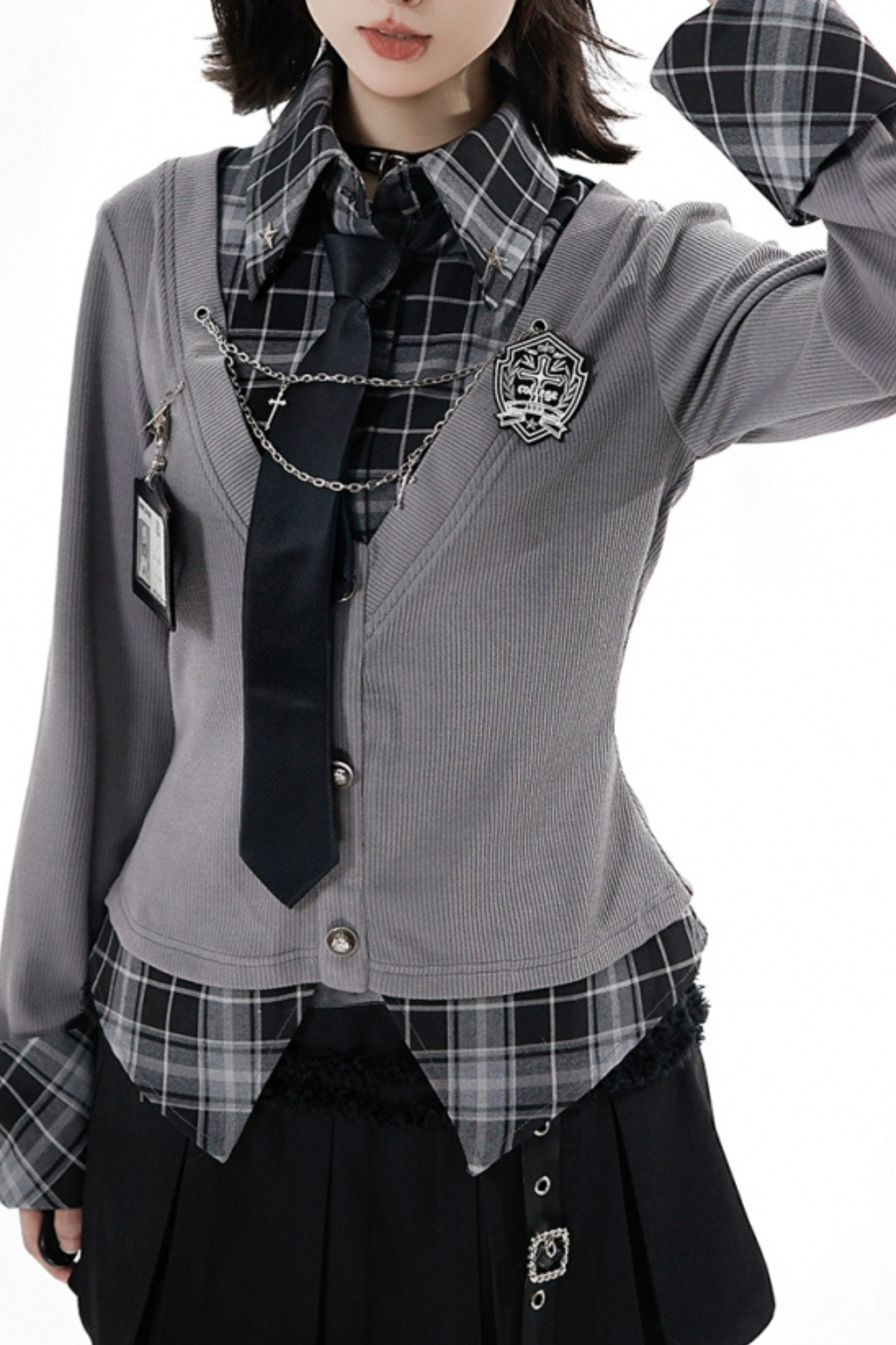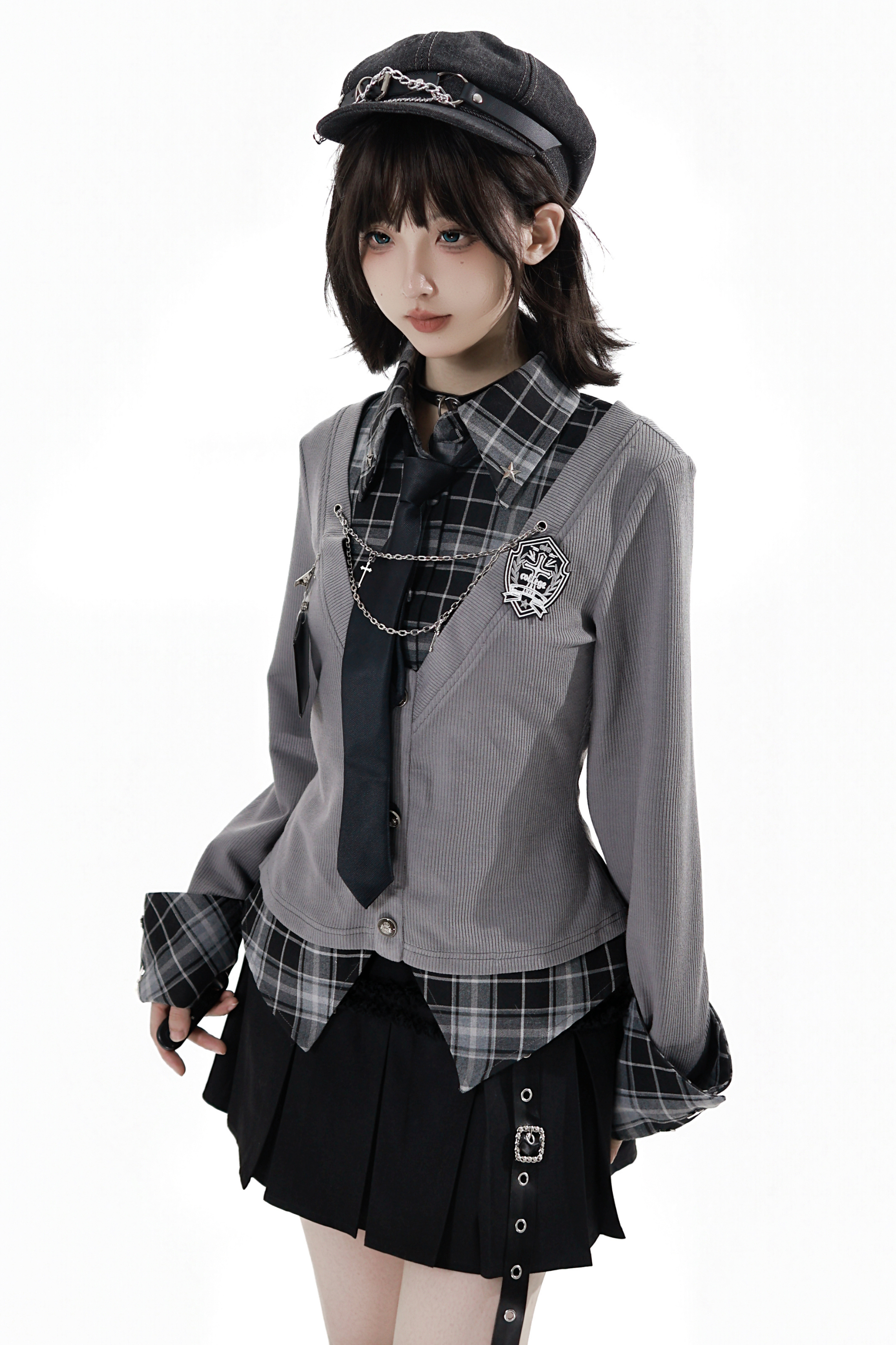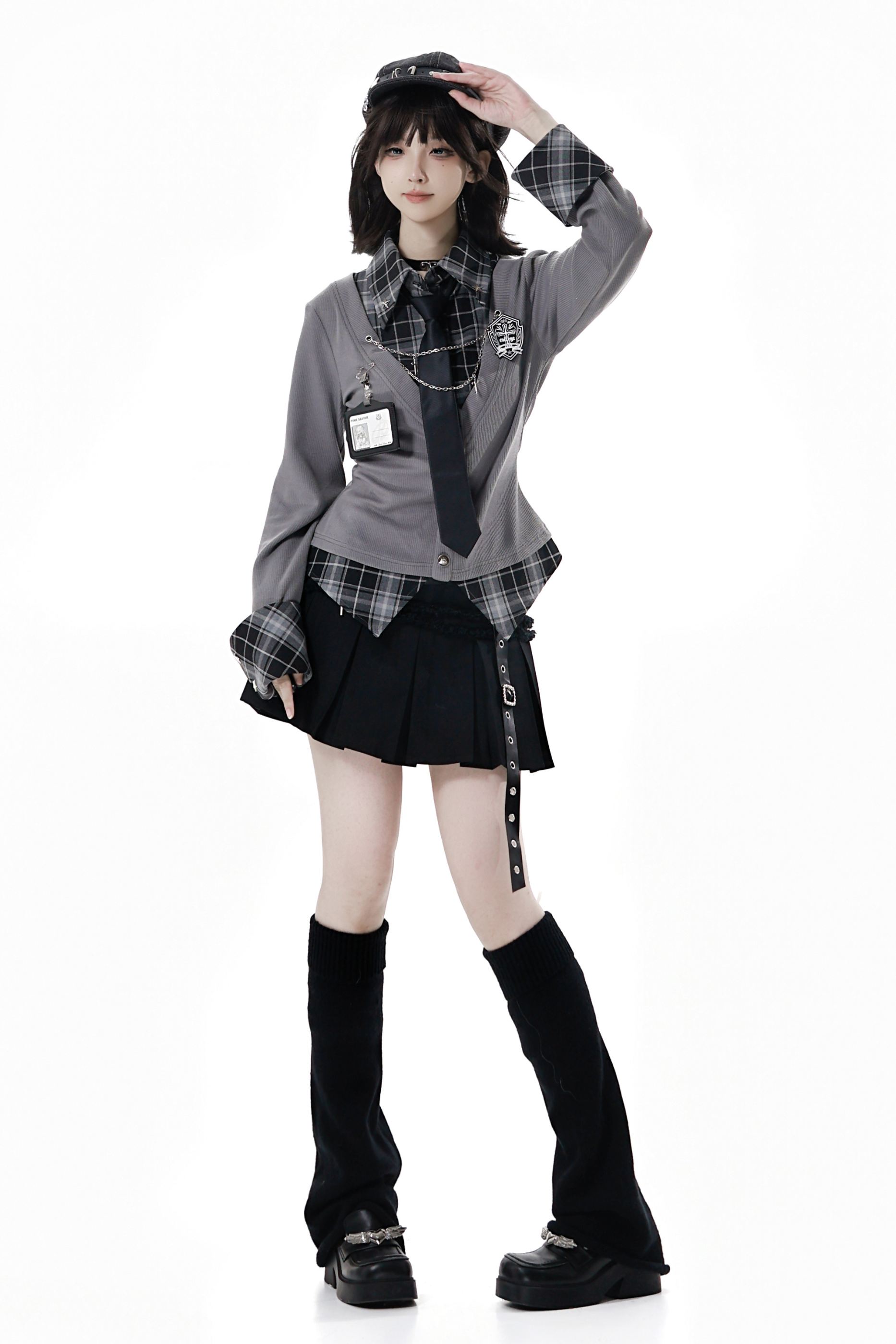 ❤カレッジロールアップシャツ+スカート+ネクタイ❤