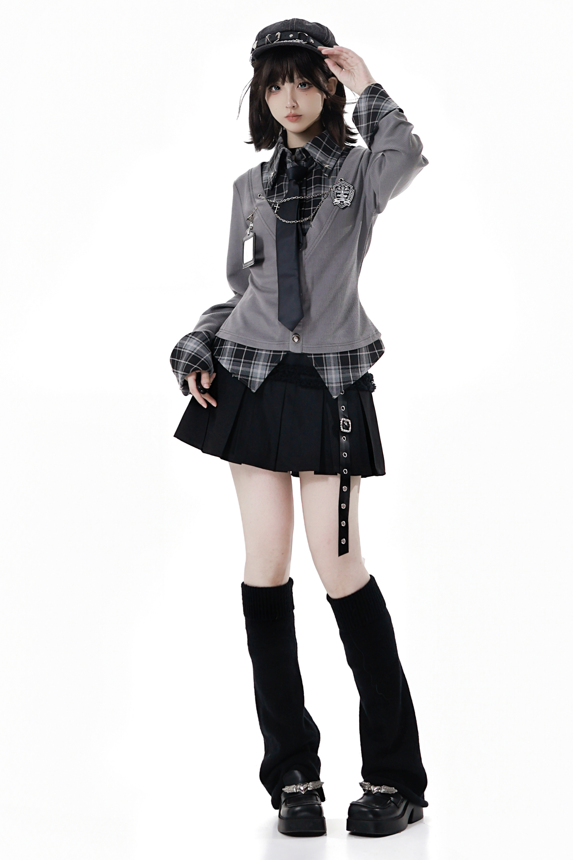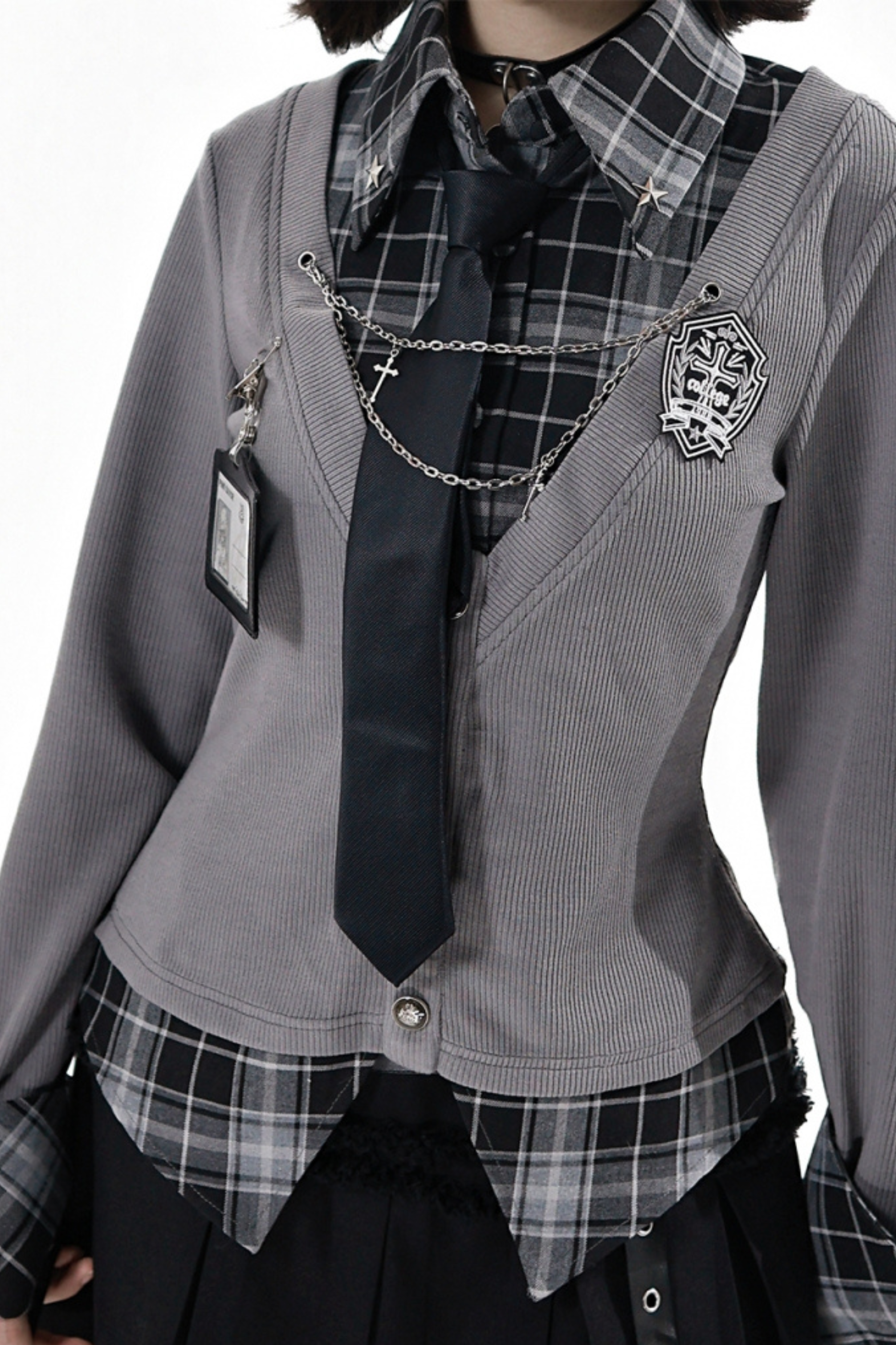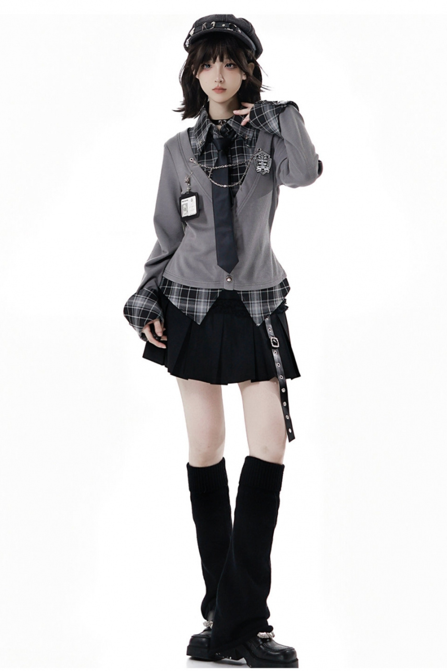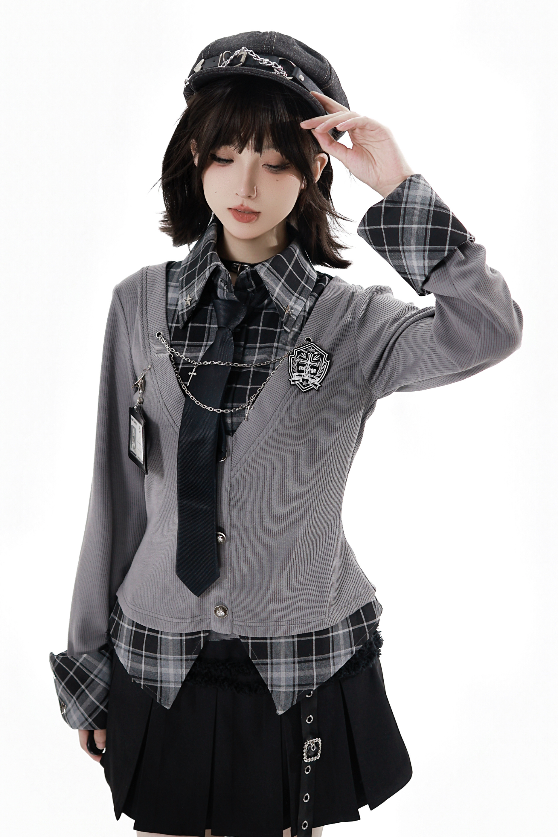 ❤カレッジロールアップシャツ+スカート+ネクタイ❤