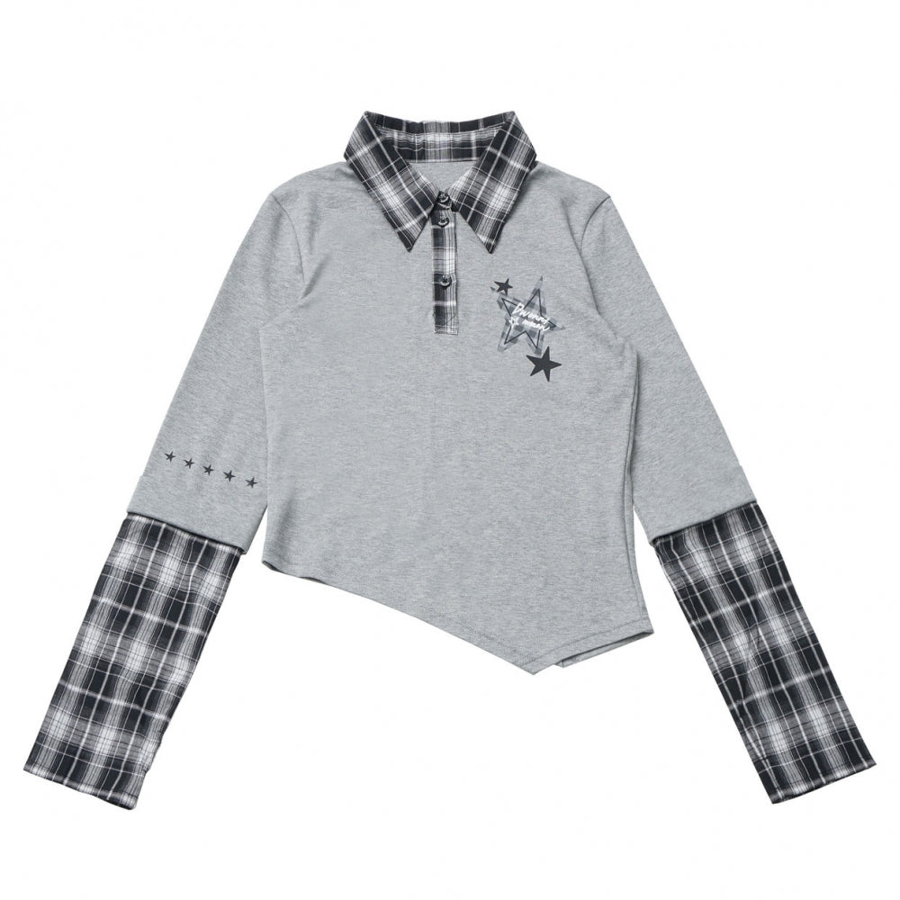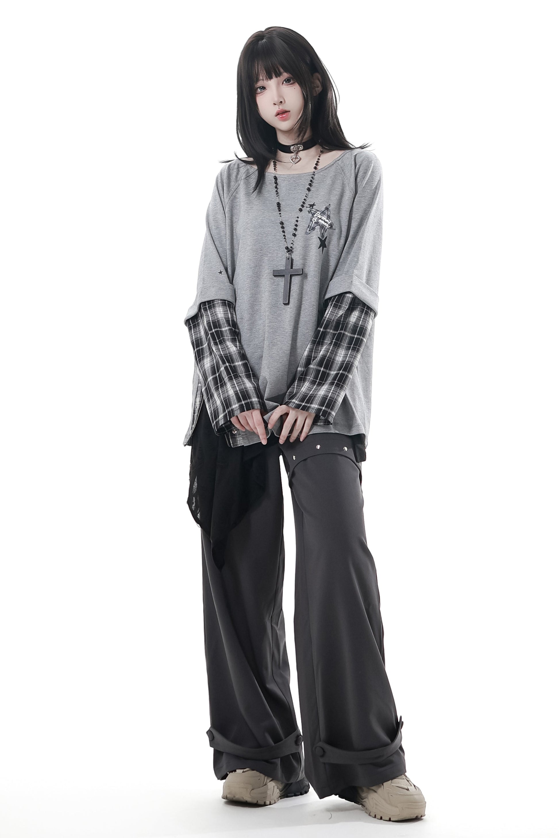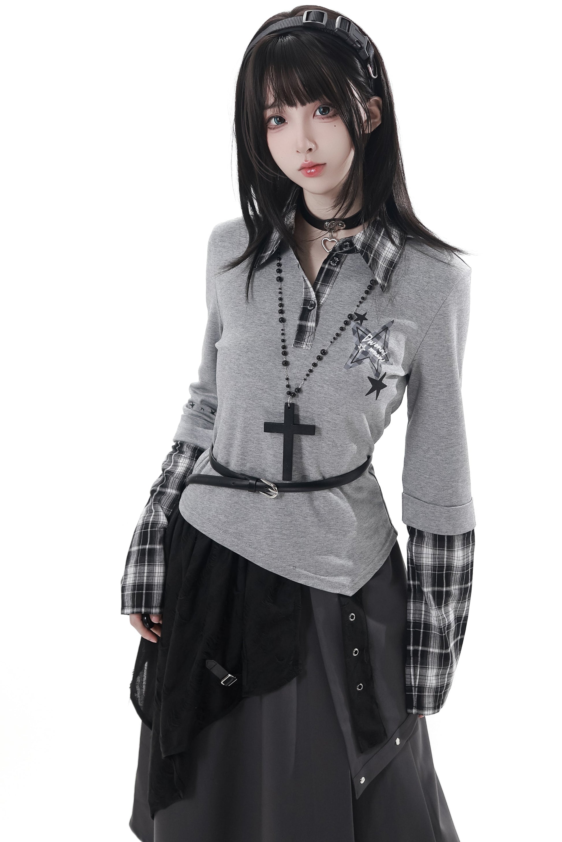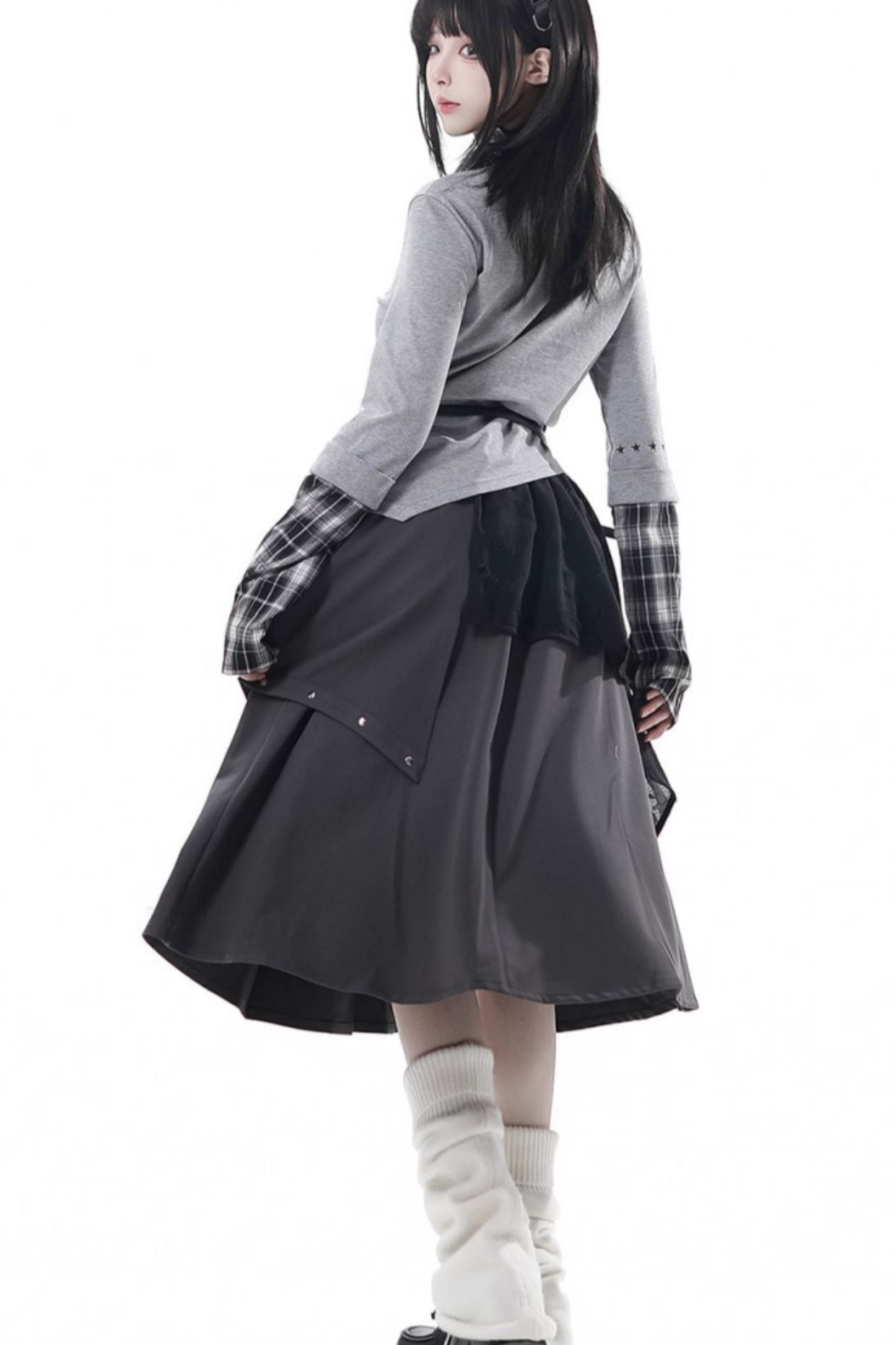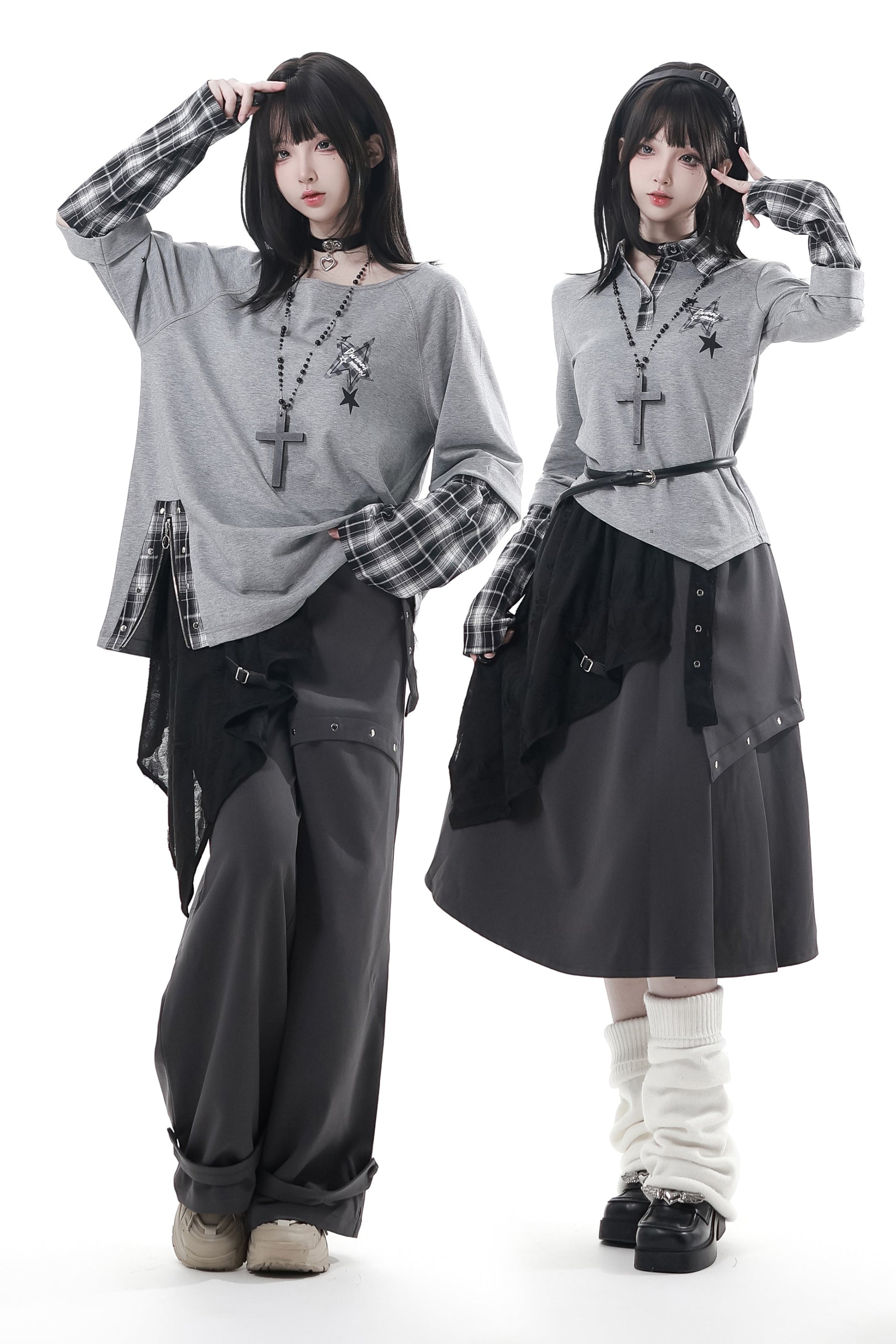 チェックデザイントップス+アシメトップス+パンツ+スカート+ベルト