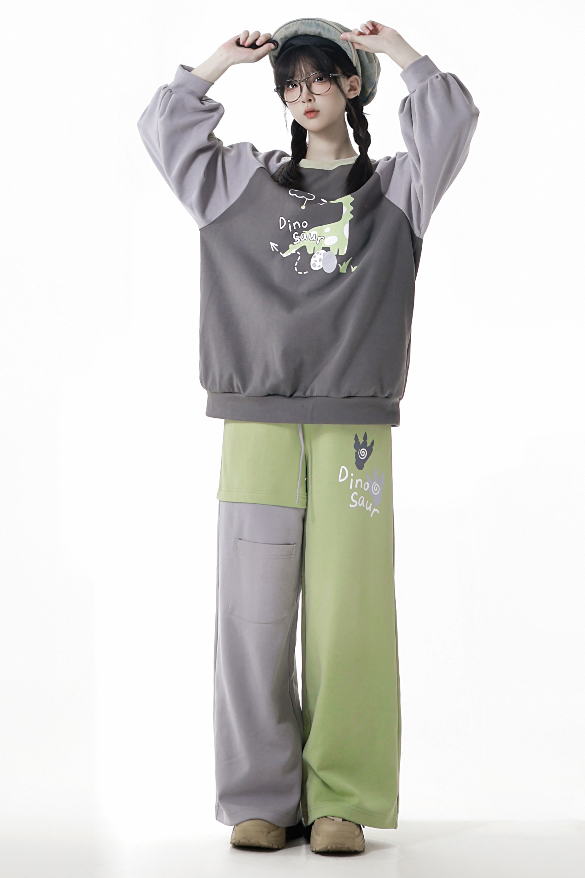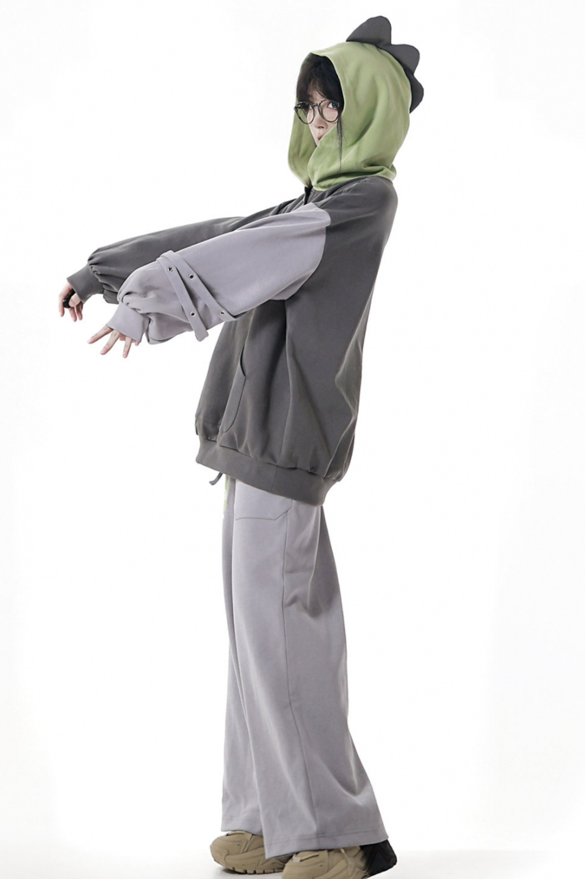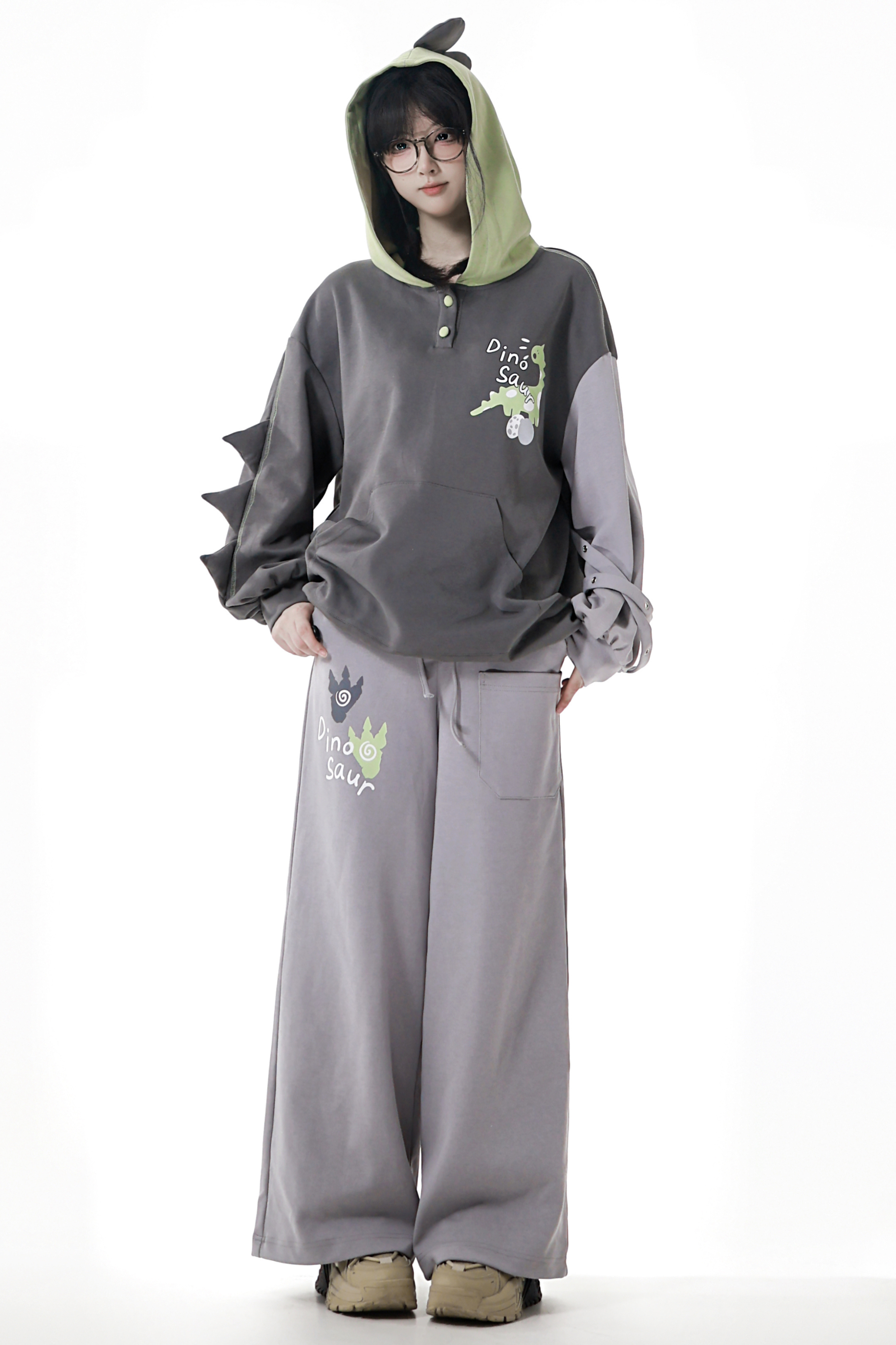 フォレストティーカジュアルフードスウェットス+スウェット+アシメパンツ+カジュアルパンツ